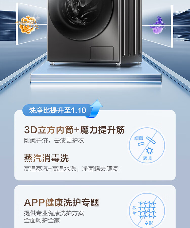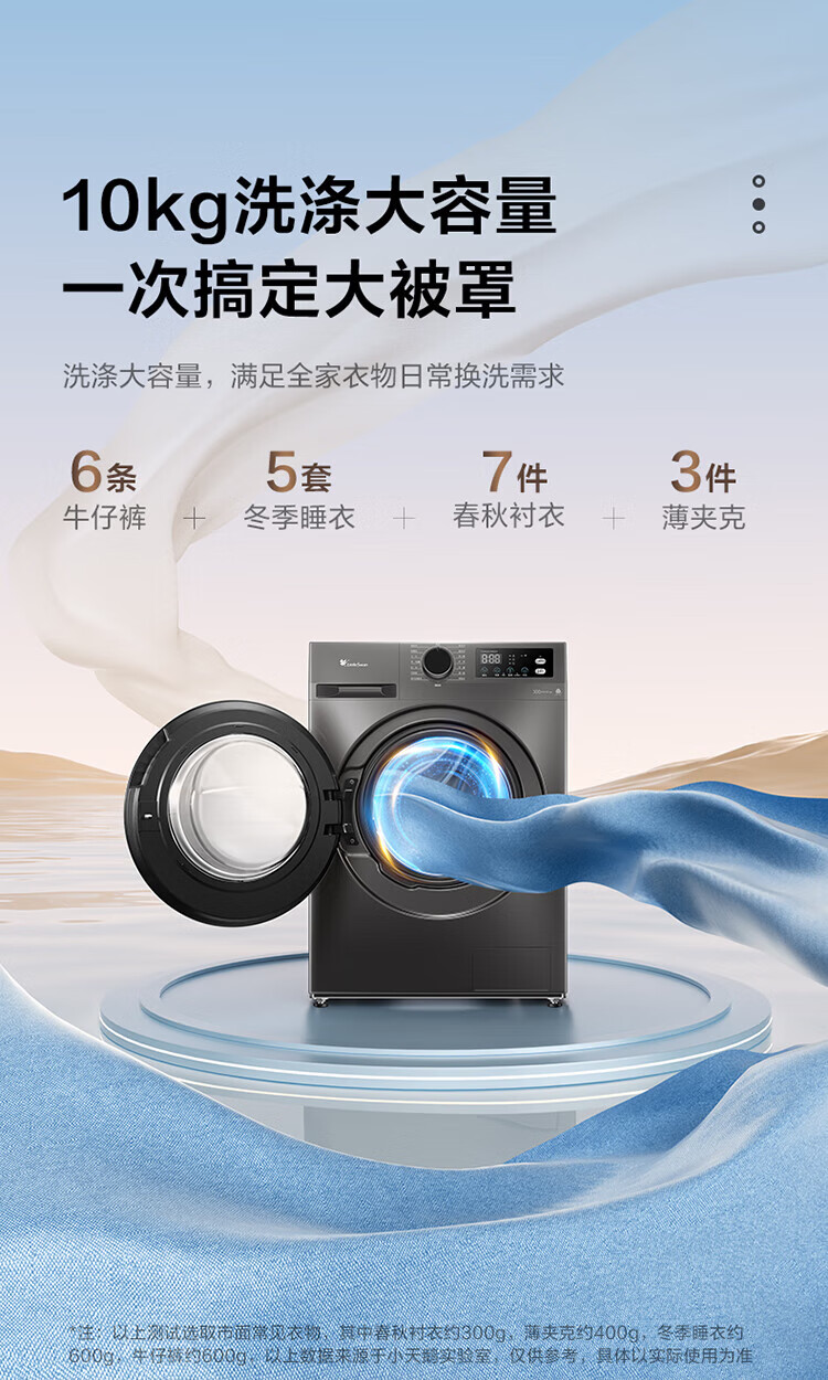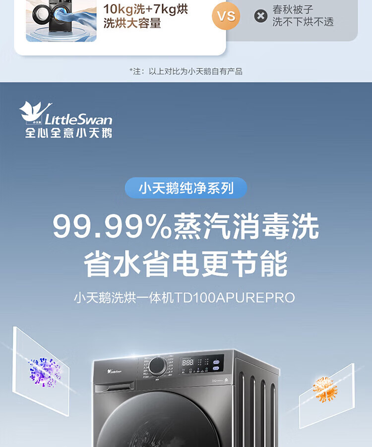 小天鹅(LittleSwan)超薄10公斤变频 大容量 1.1超高洗净比一级能效 全自动滚筒洗衣机 内衣洗 以旧换新 家电国家补贴 蒸汽消毒洗+1.1高洗净+APUREPRO滚筒单洗