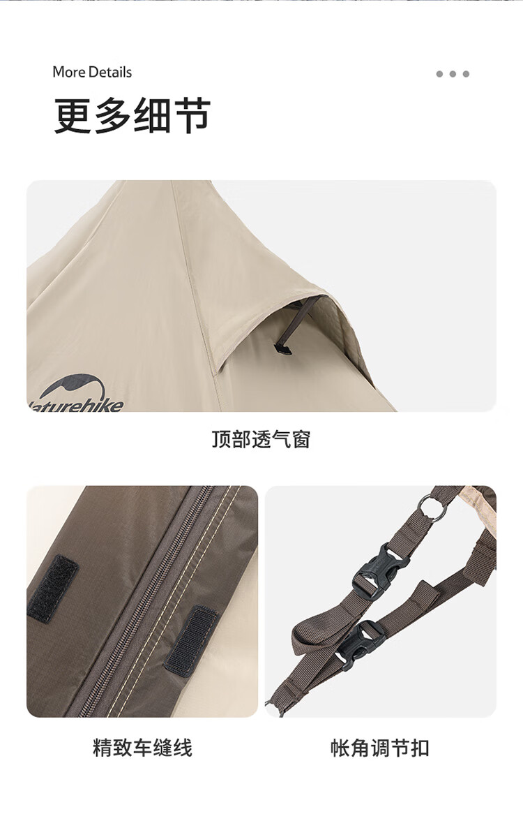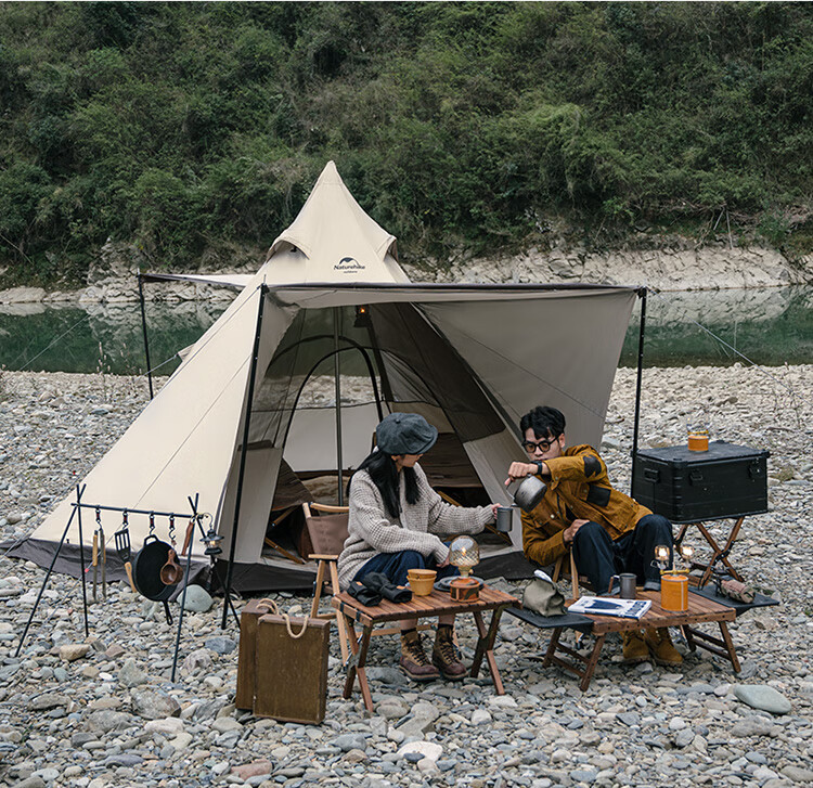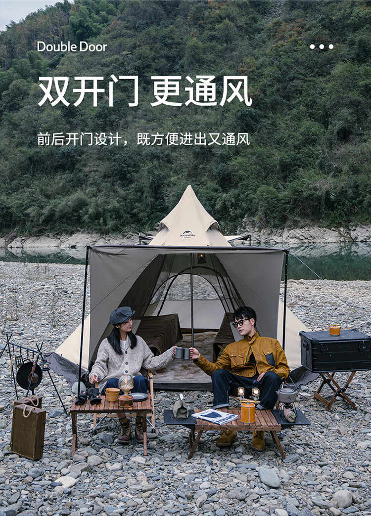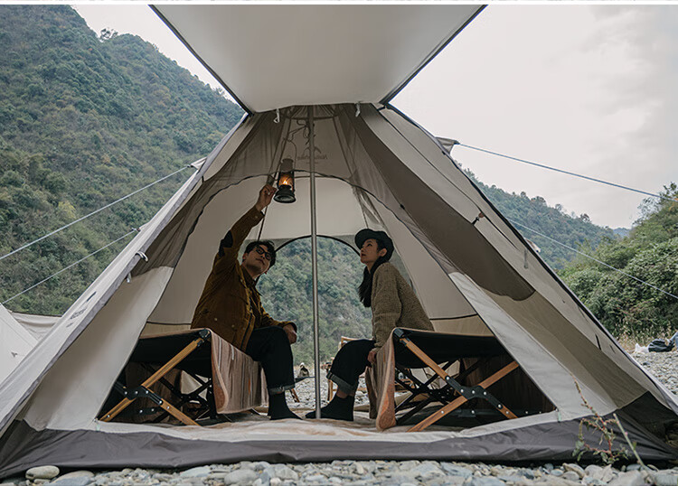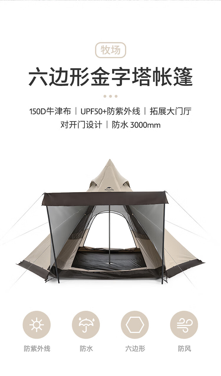 Naturehike挪客牧场六边形金字塔帐篷户外加厚防雨野外露营野营印第安帐 流沙金