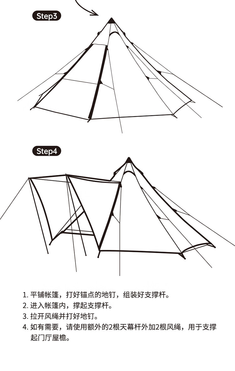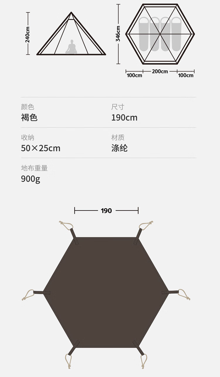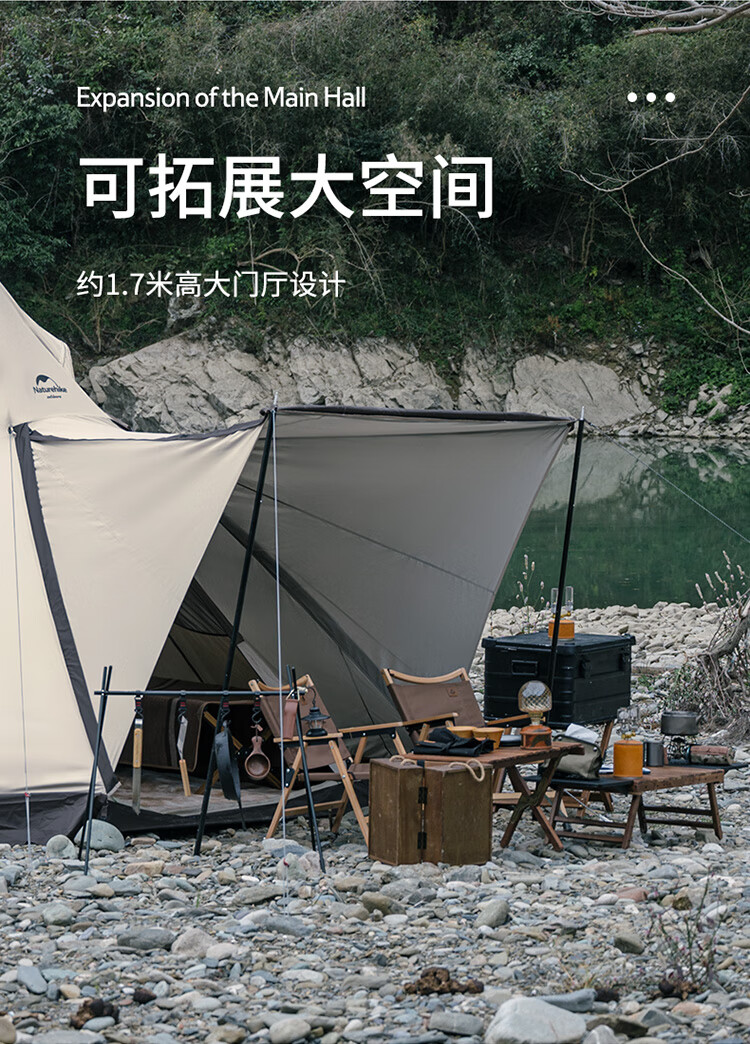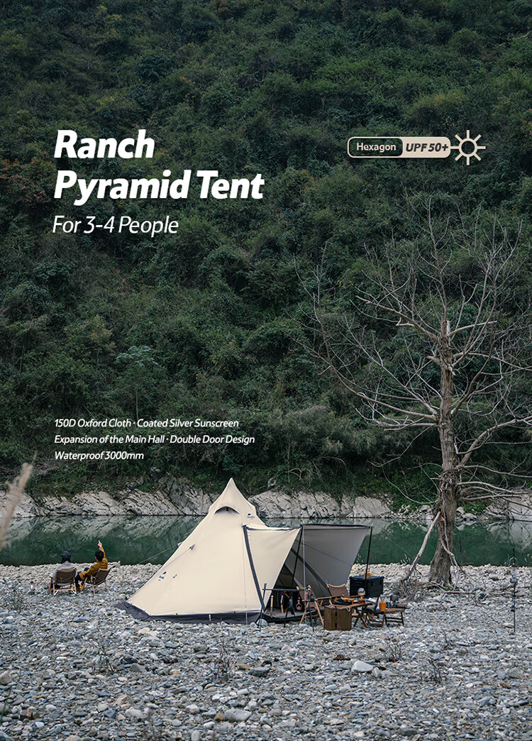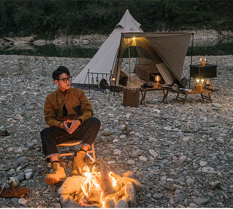 Naturehike挪客牧场六边形金字塔帐篷户外加厚防雨野外露营野营印第安帐 流沙金