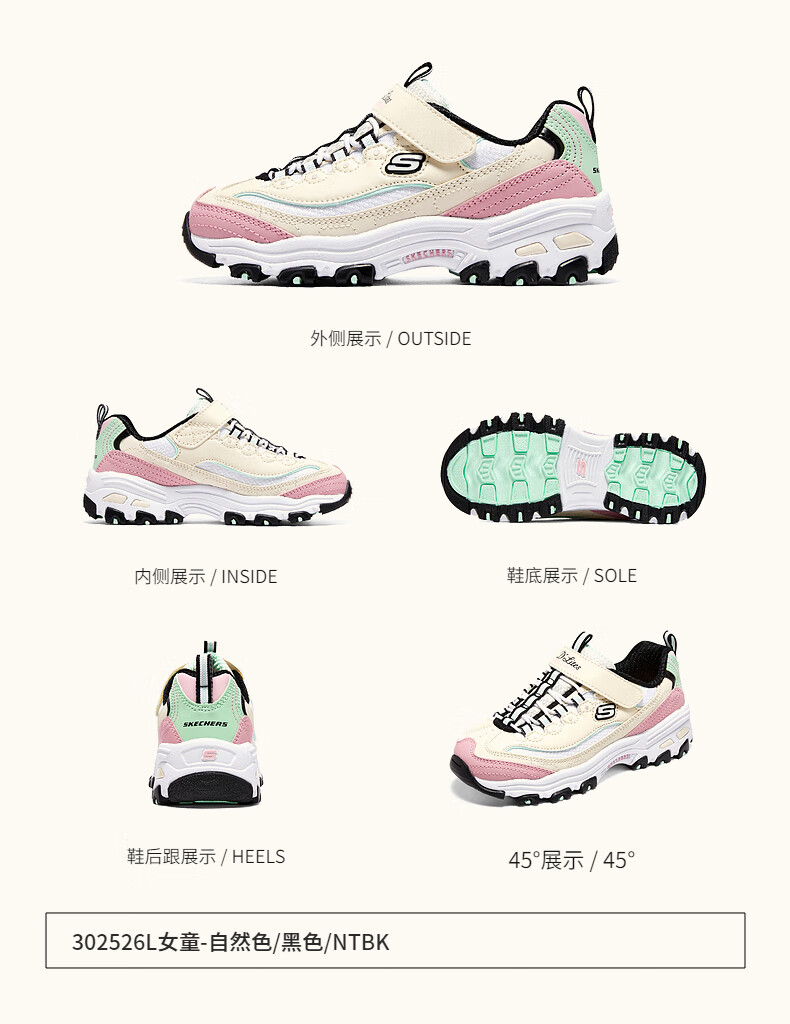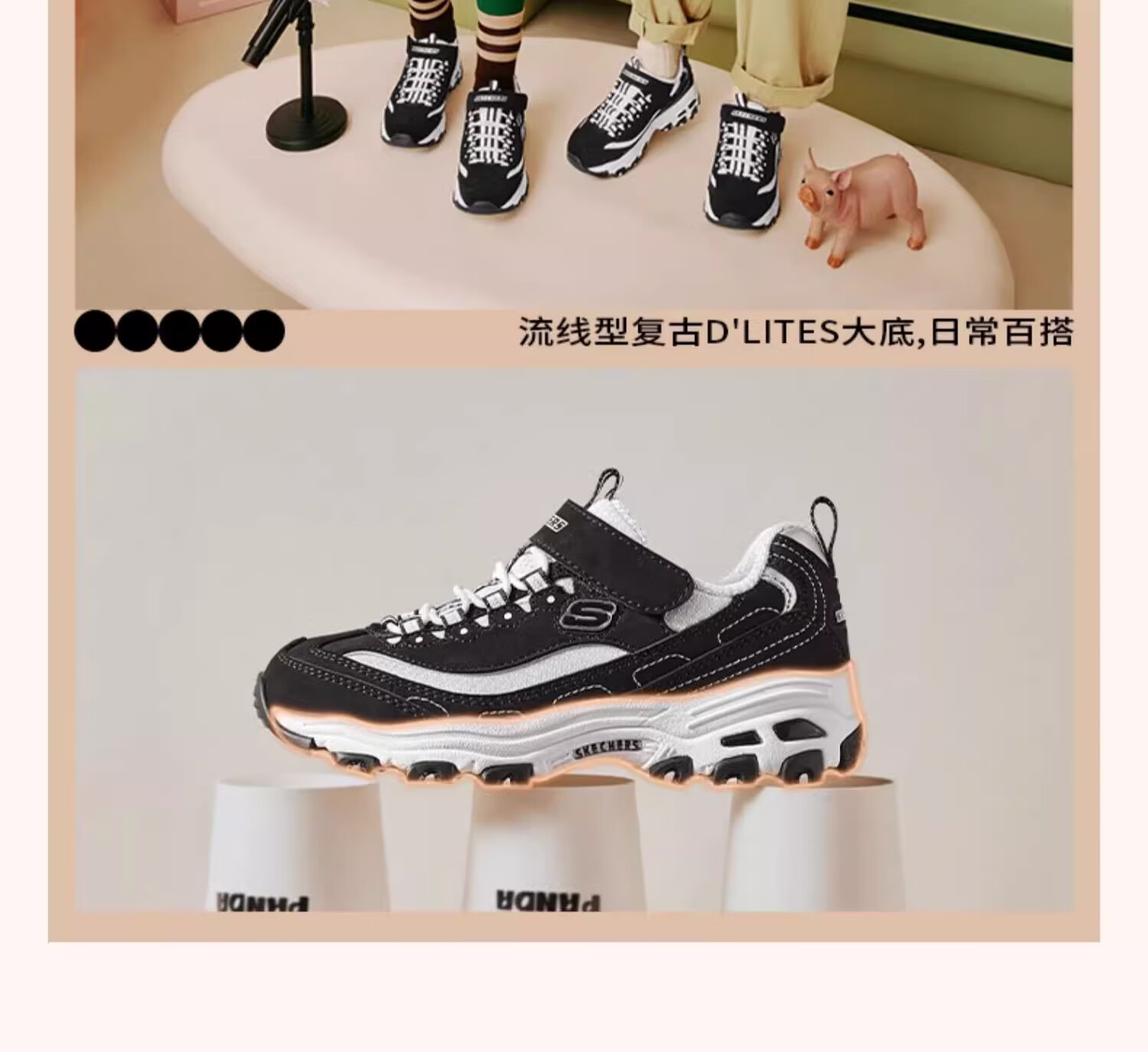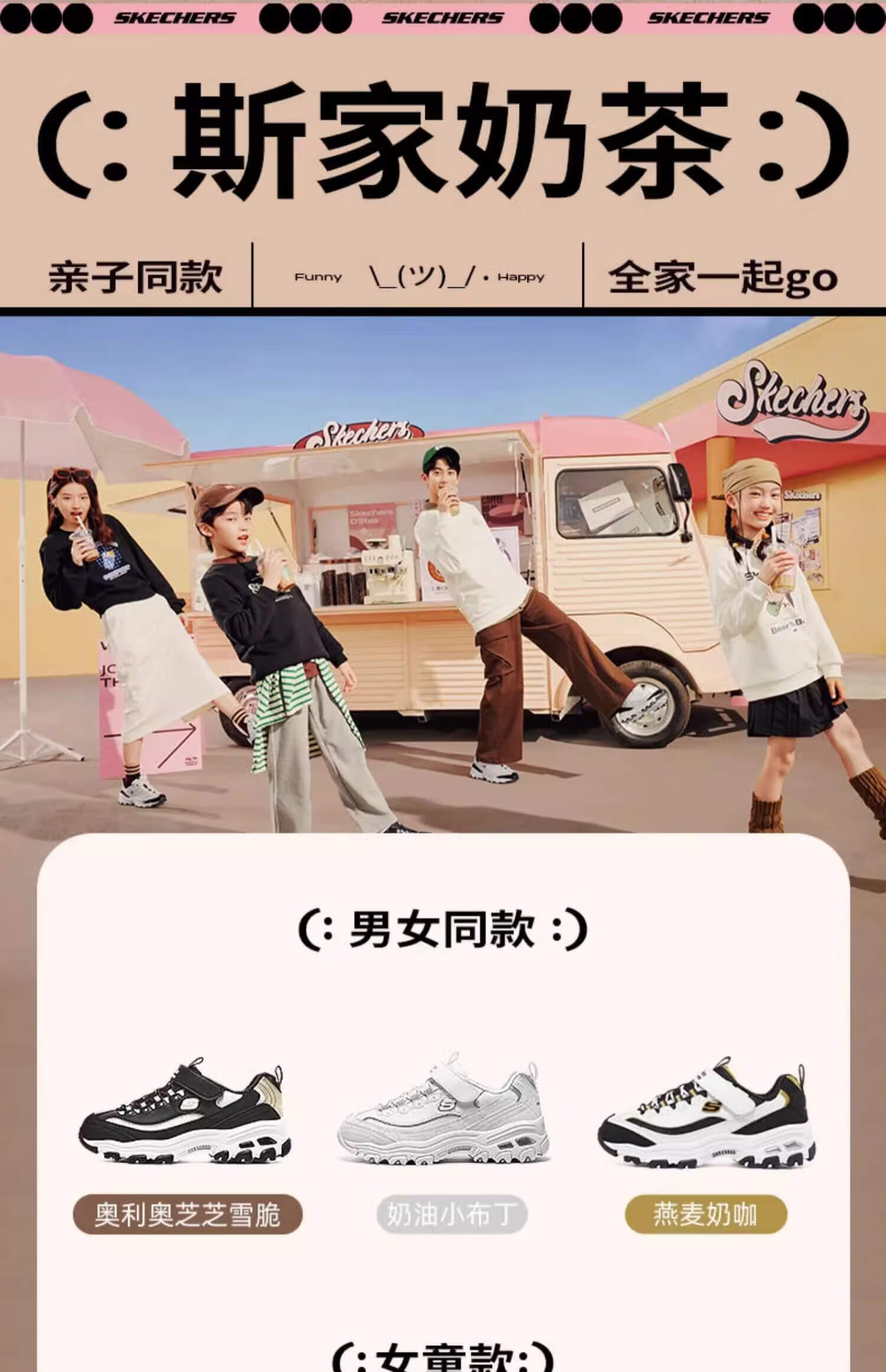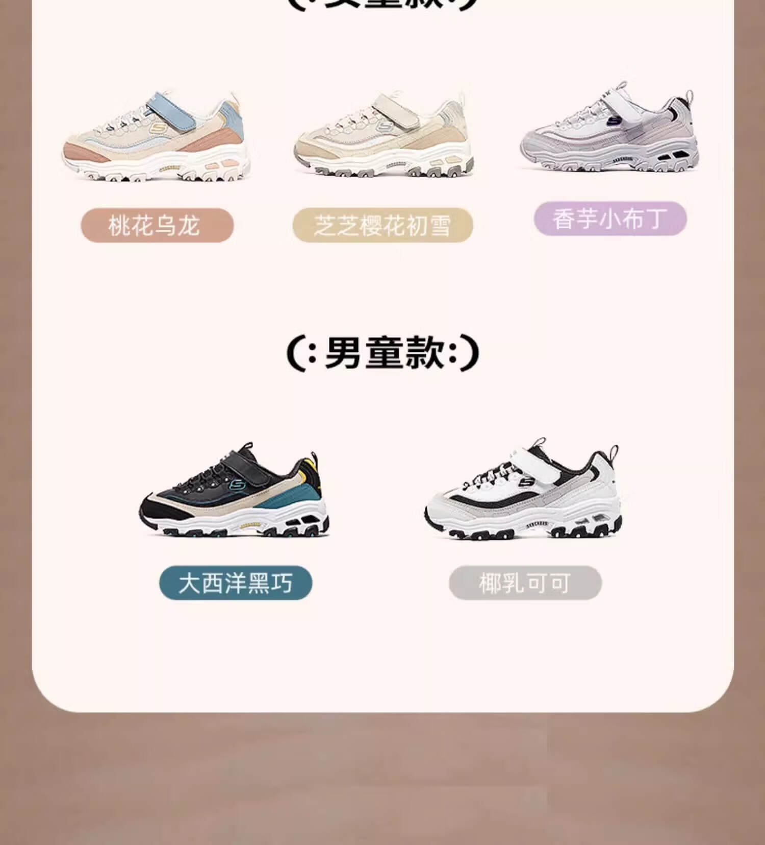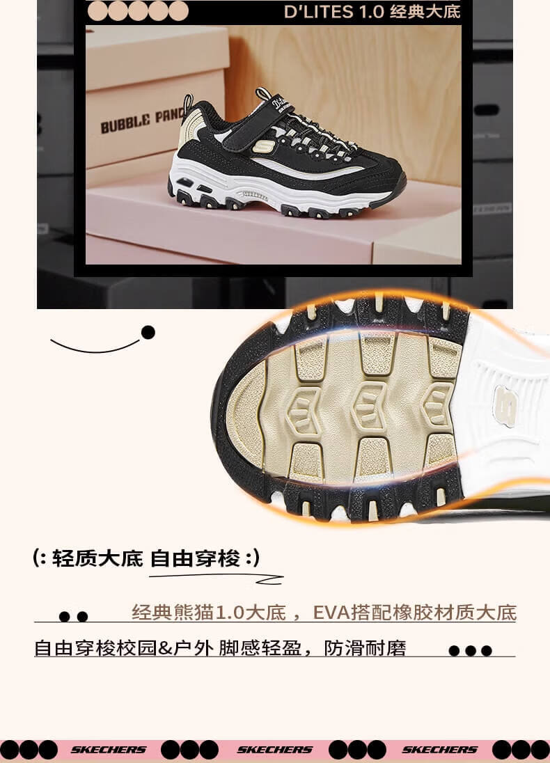 Skechers斯凯奇自营儿童奶茶熊童鞋秋冬女童运动鞋大童跑鞋熊猫鞋302526L
