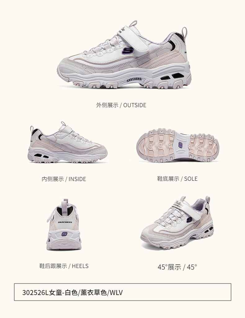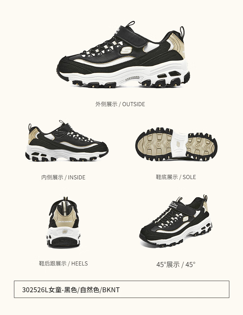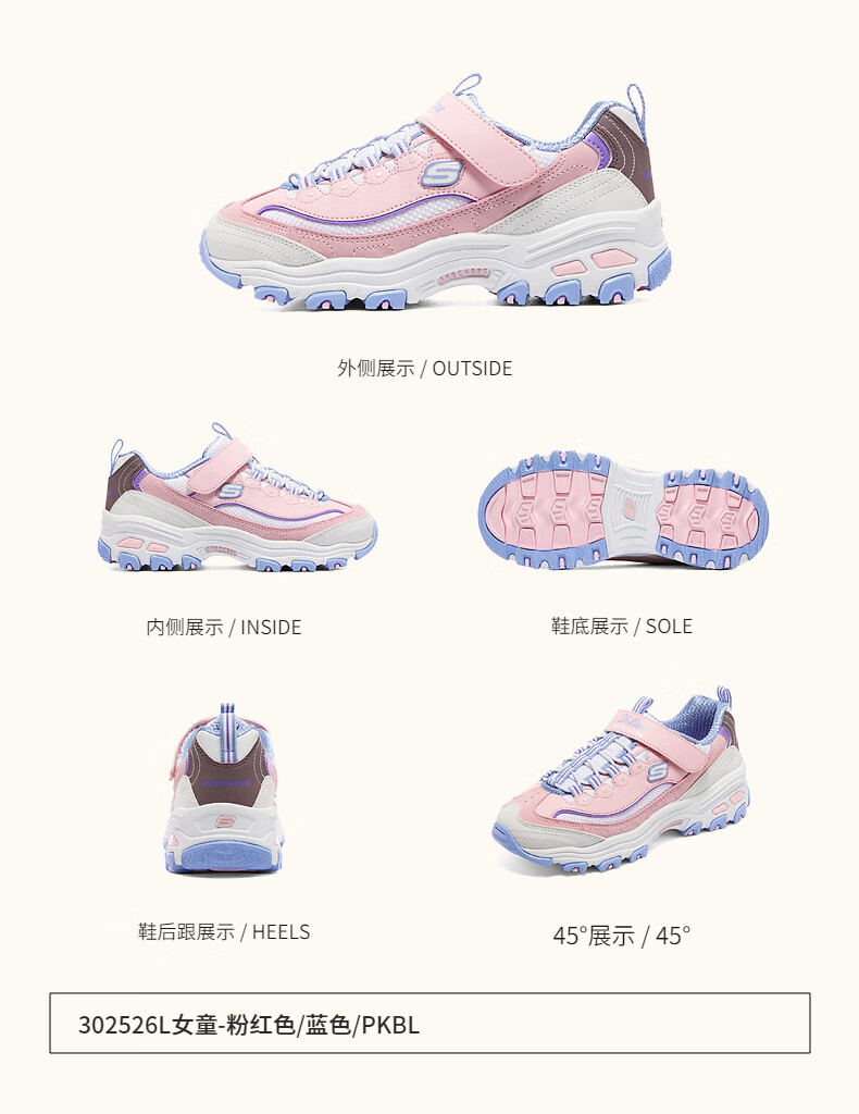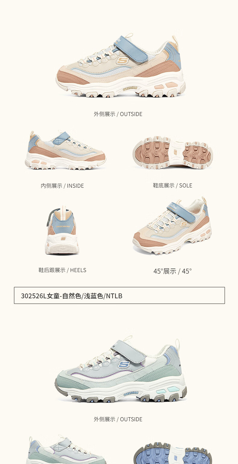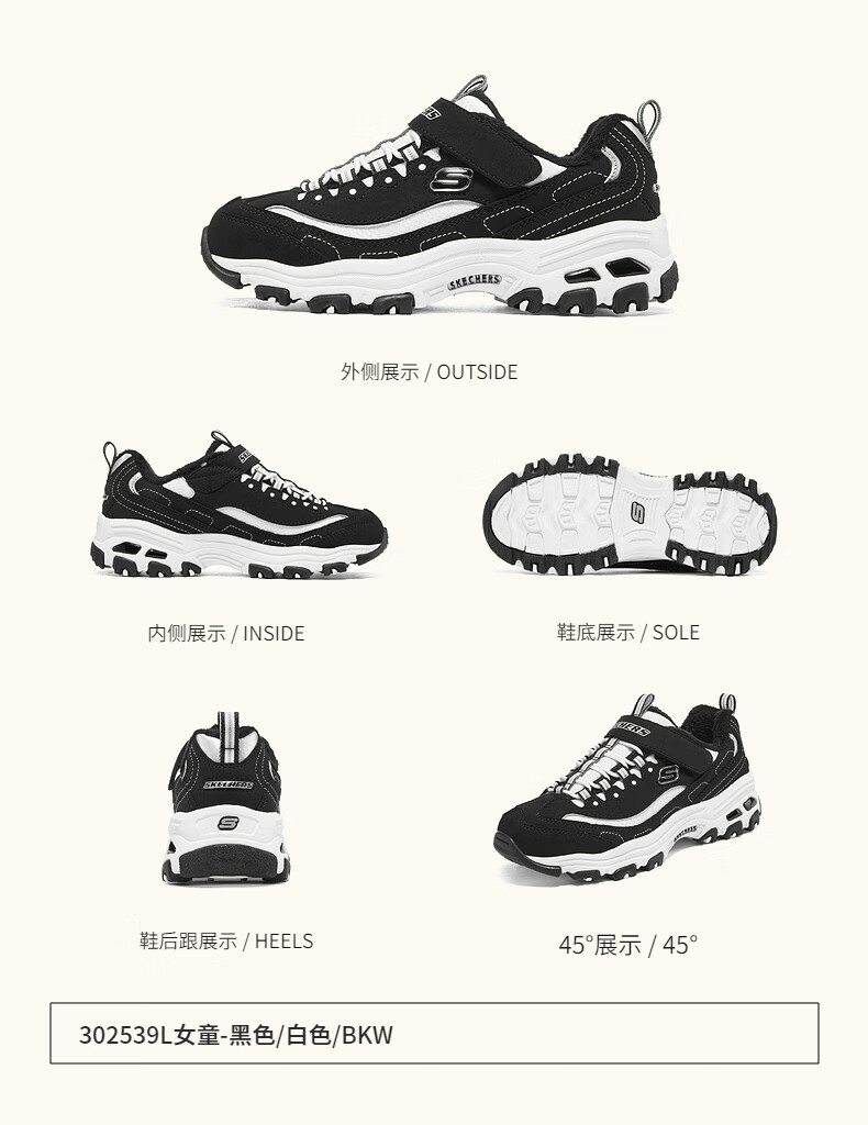 Skechers斯凯奇自营儿童奶茶熊童鞋秋冬女童运动鞋大童跑鞋熊猫鞋302526L