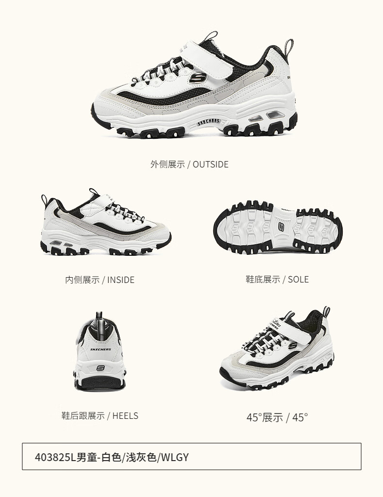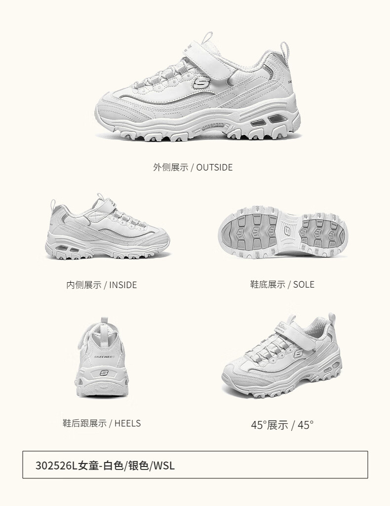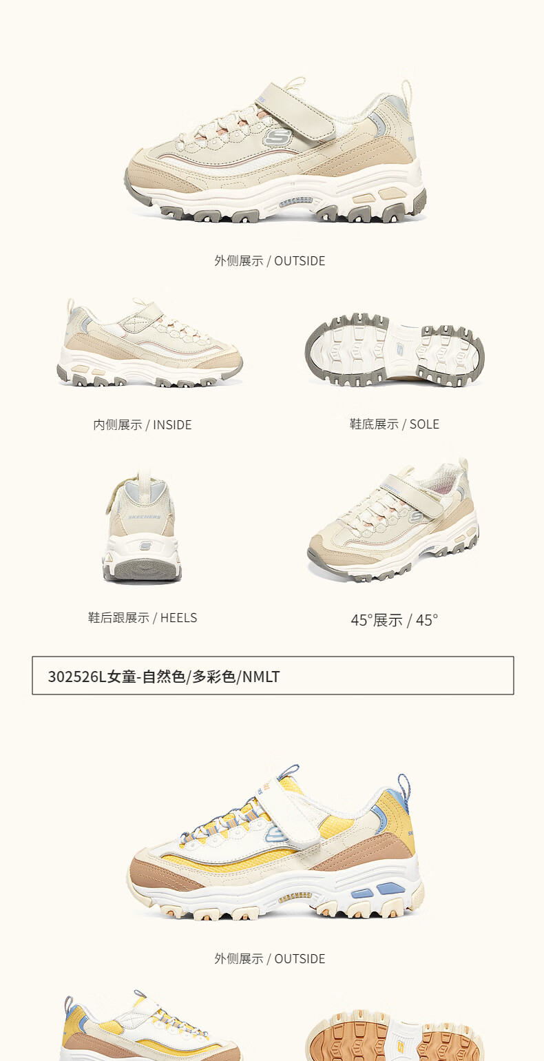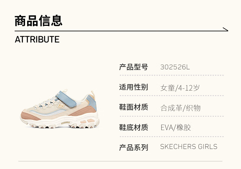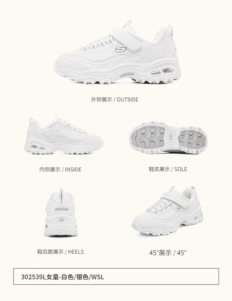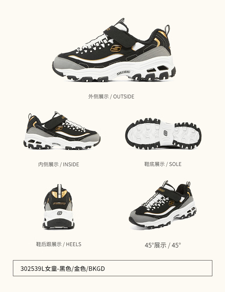 Skechers斯凯奇自营儿童奶茶熊童鞋秋冬女童运动鞋大童跑鞋熊猫鞋302526L