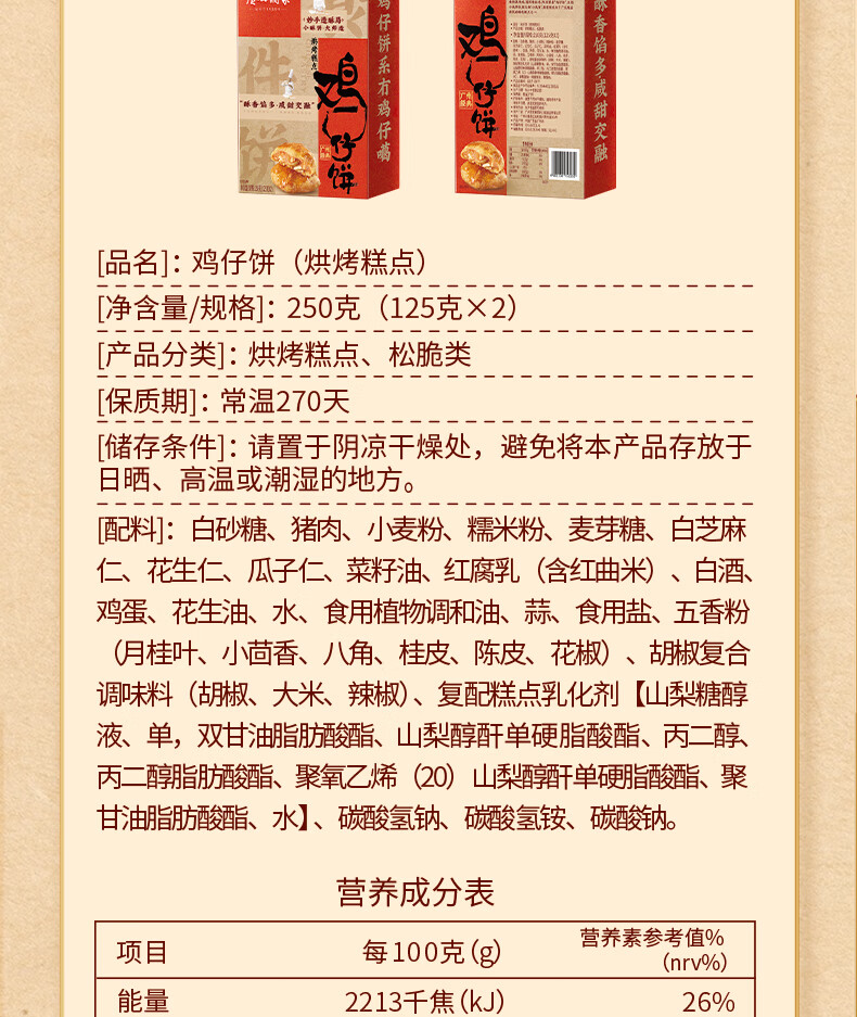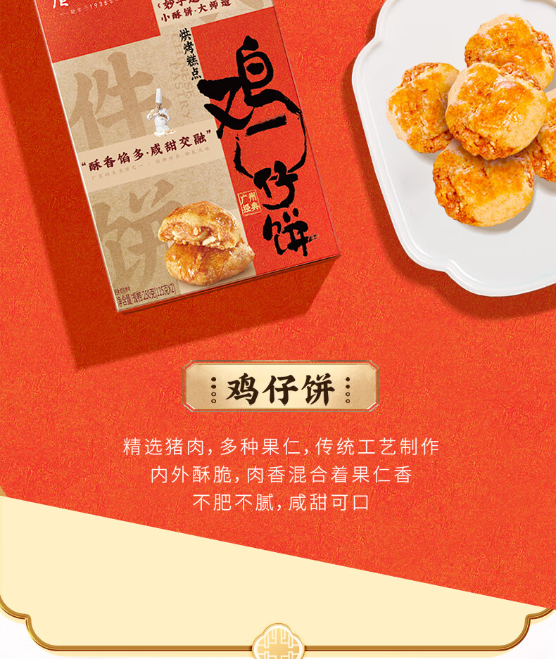 广州酒家 鸡仔饼250g 广州特产广式饼干糕点心礼盒休闲小零食下午茶伴手礼