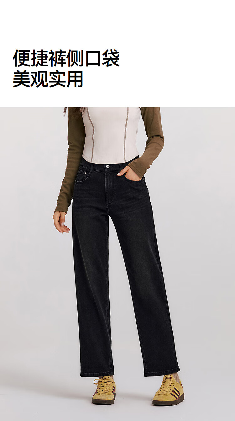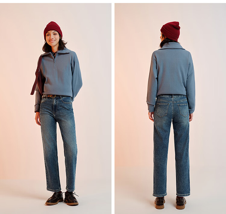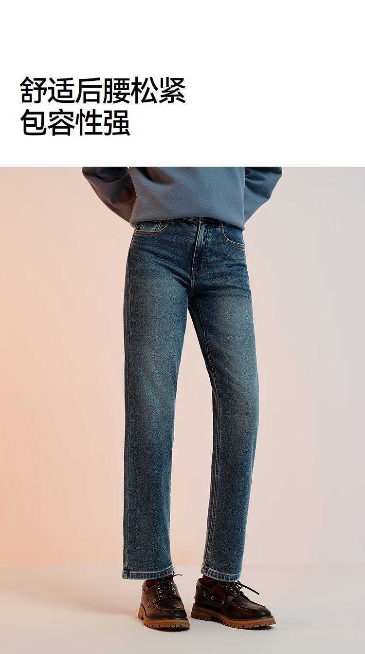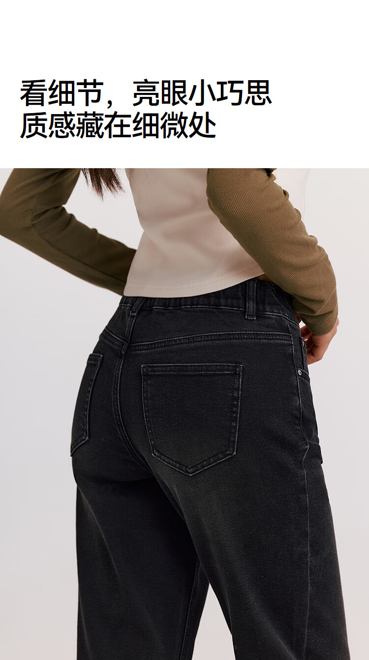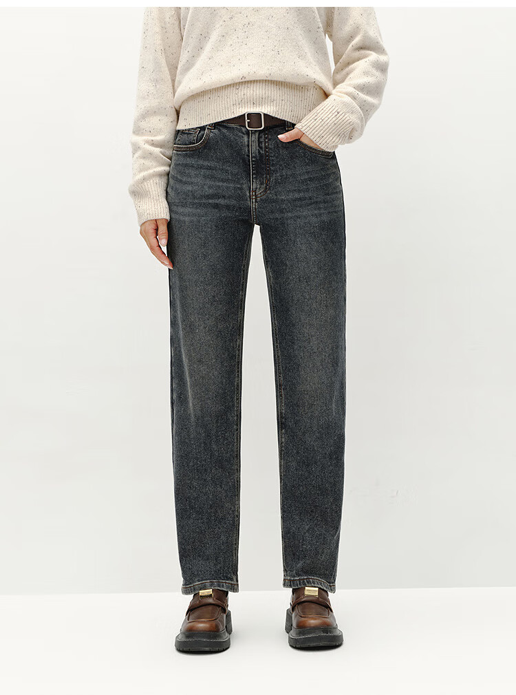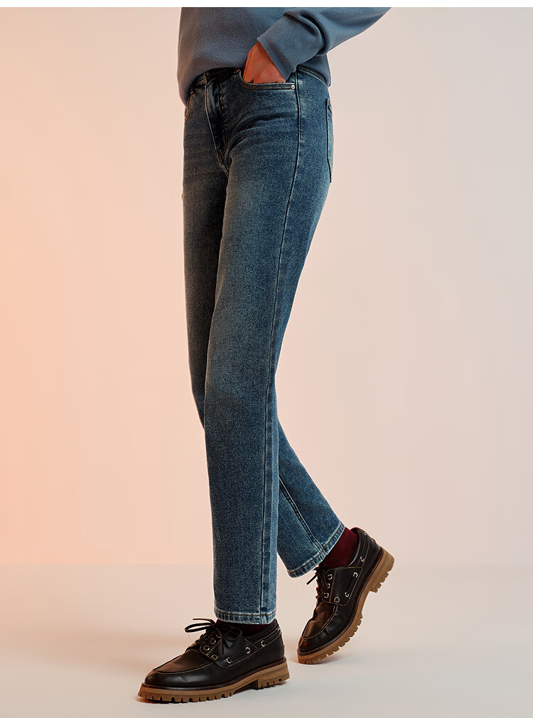 森马(Semir)森柔牛仔|牛仔裤女抓毛长裤女生冬季半松紧腰直筒裤103724124002