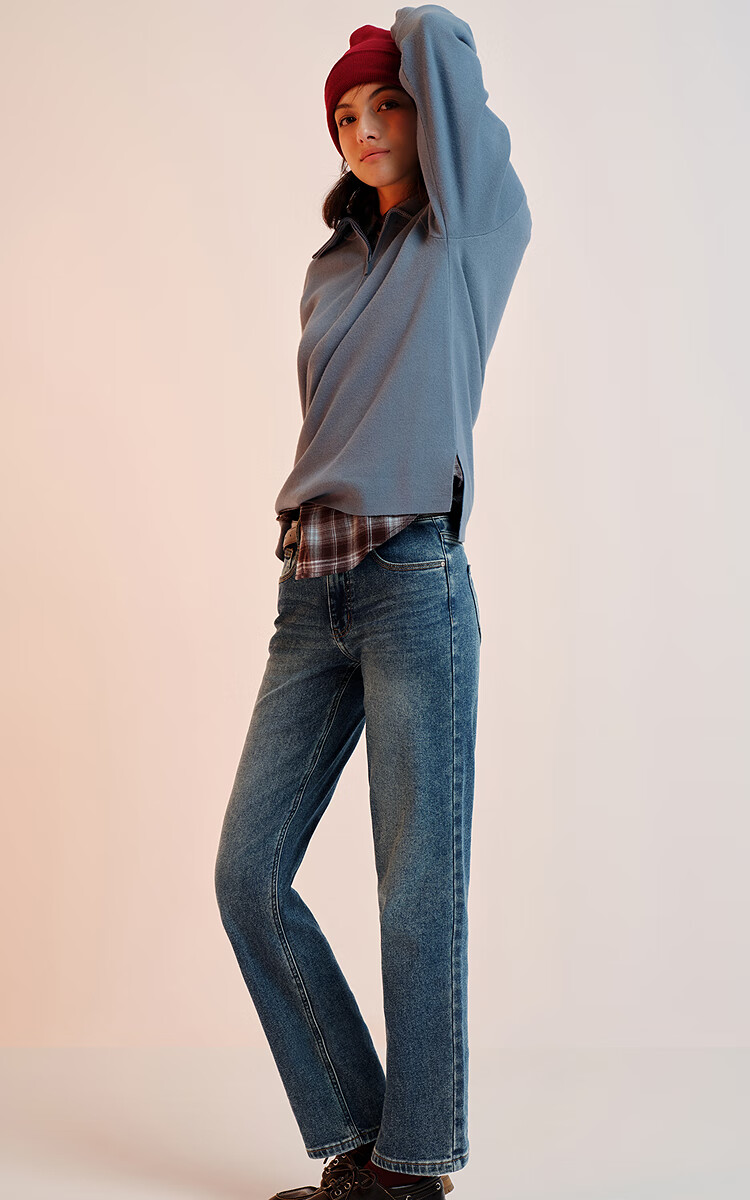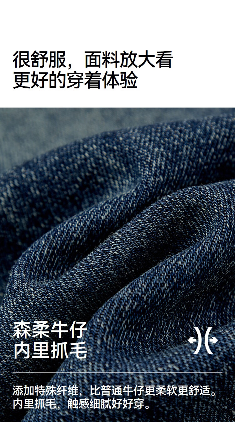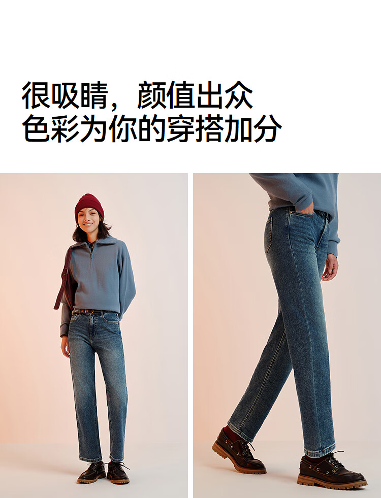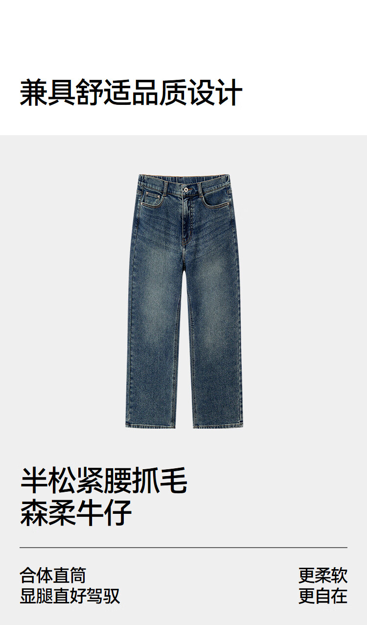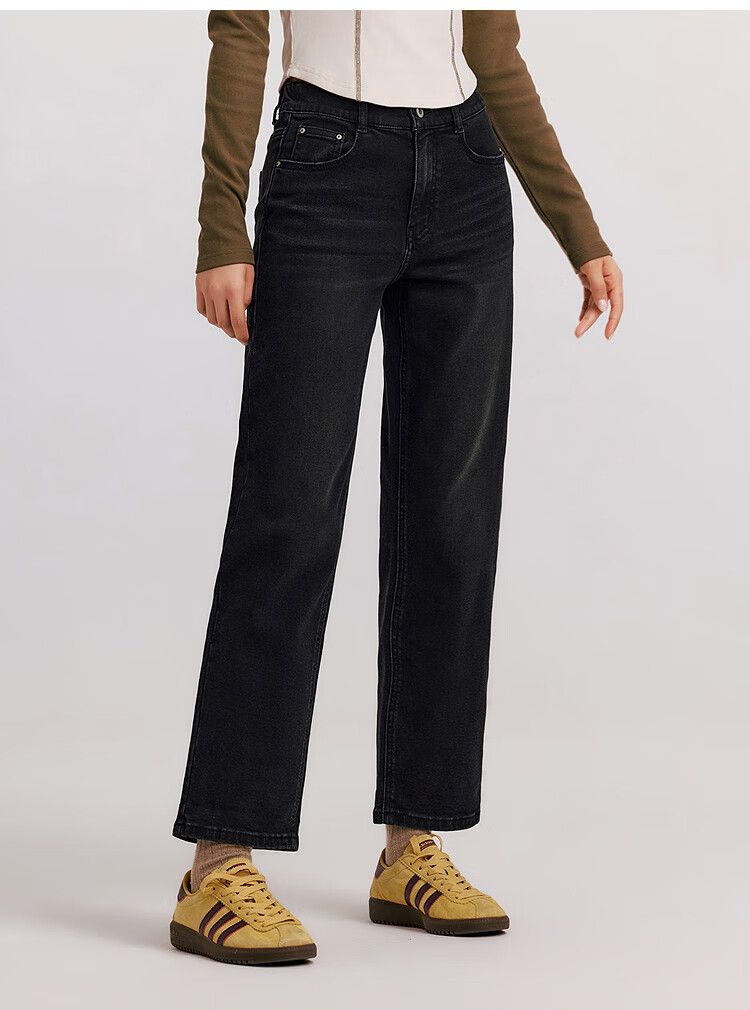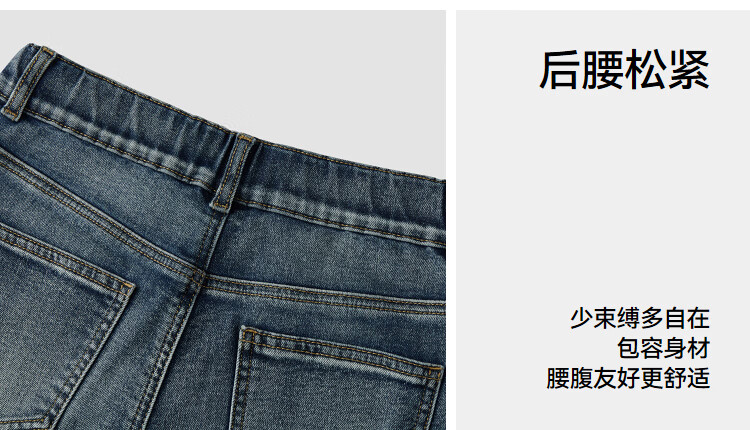 森马(Semir)森柔牛仔|牛仔裤女抓毛长裤女生冬季半松紧腰直筒裤103724124002