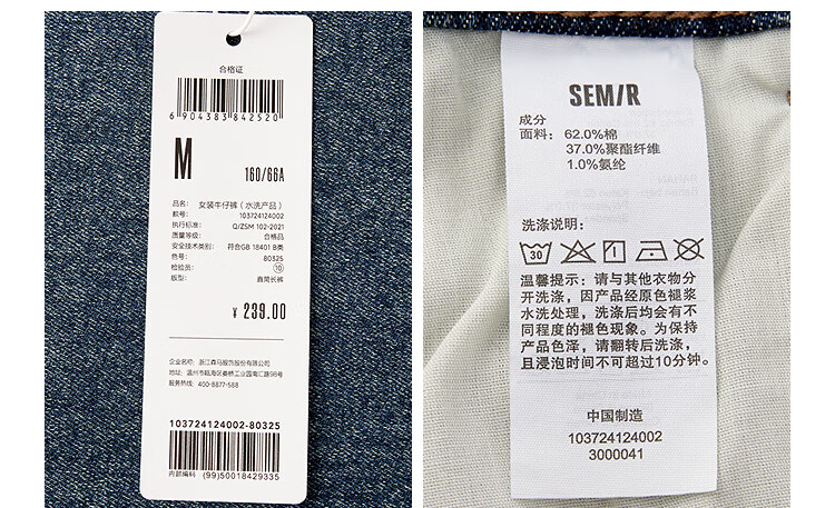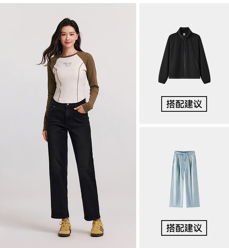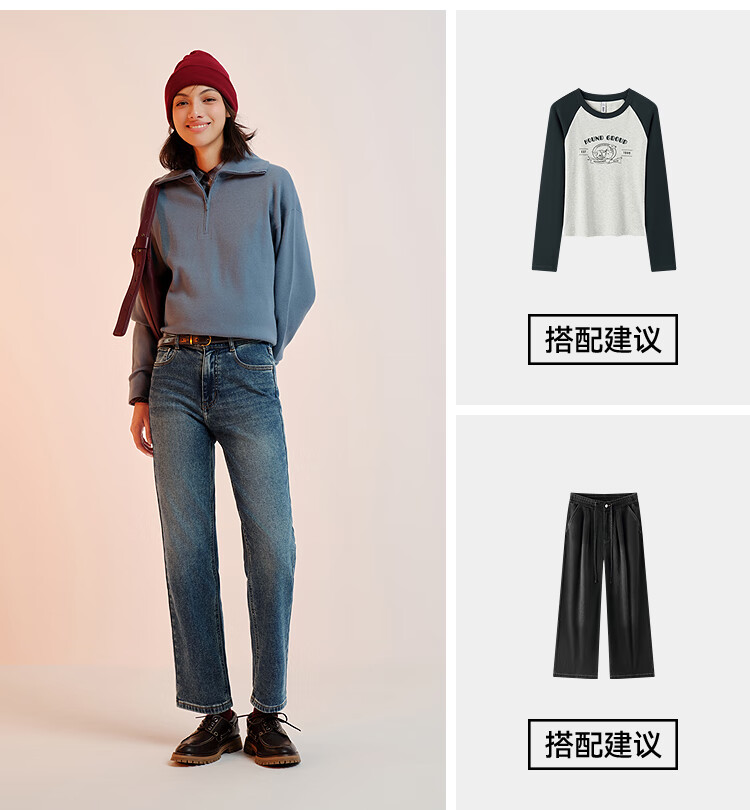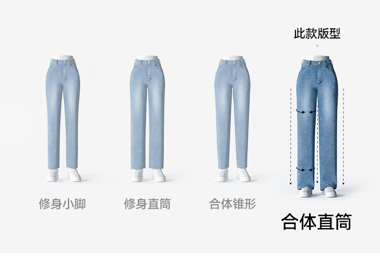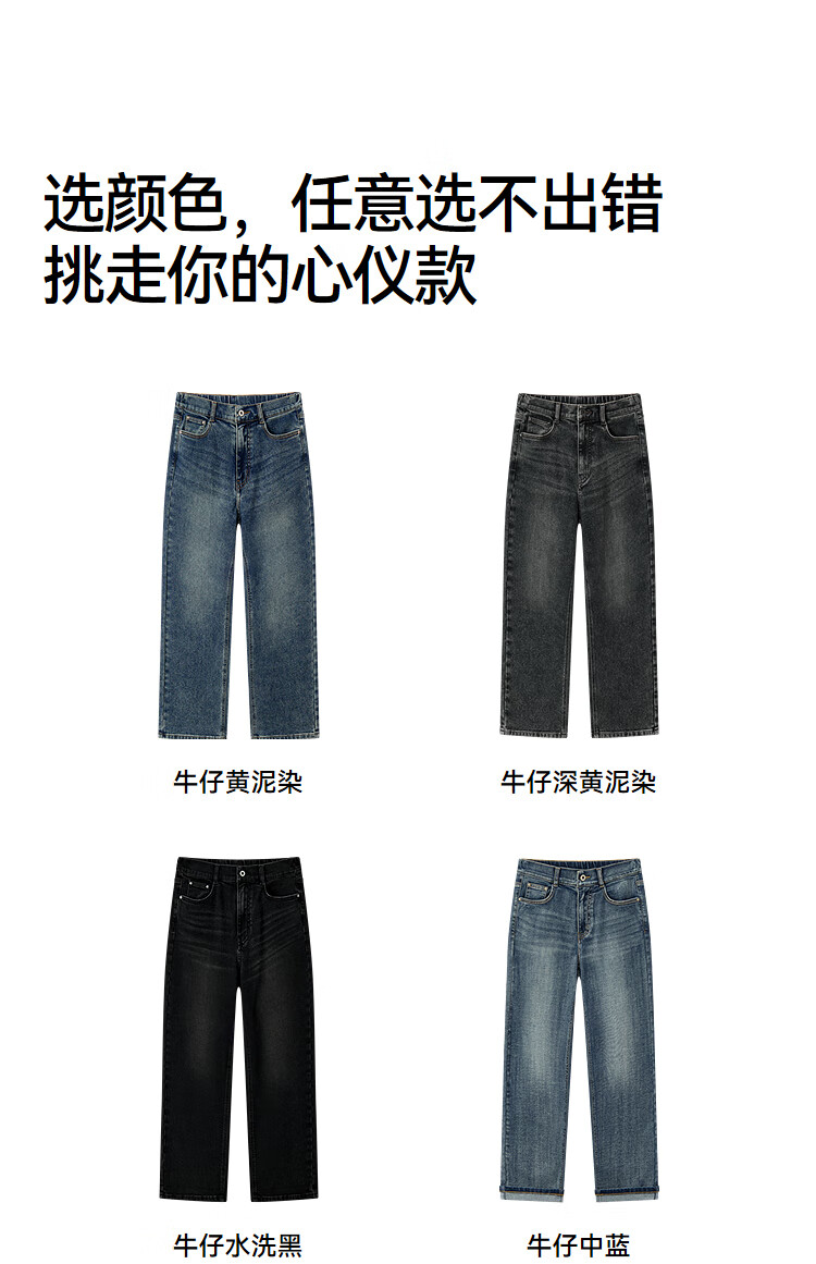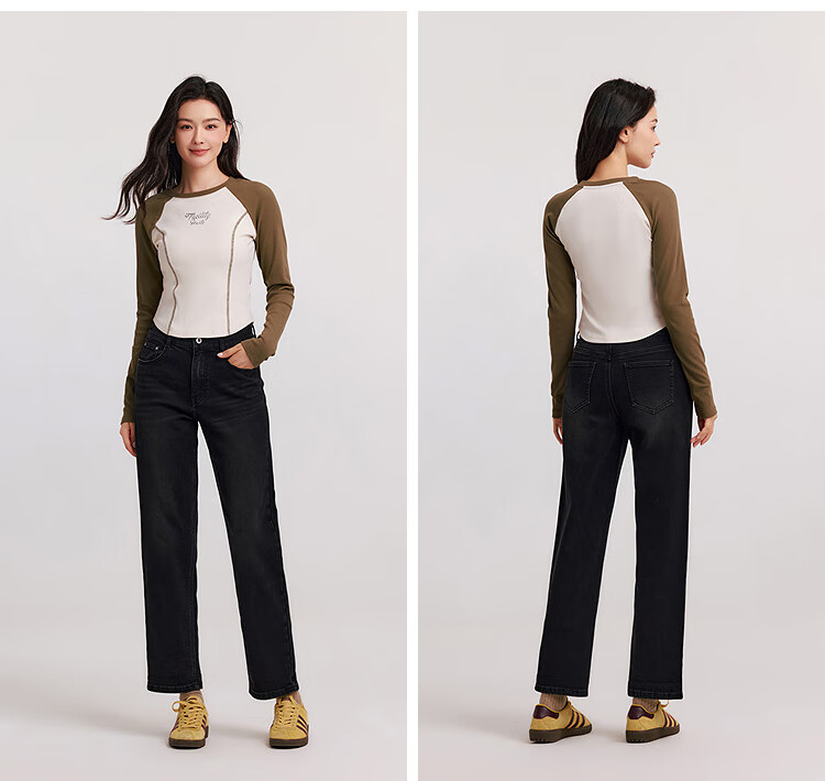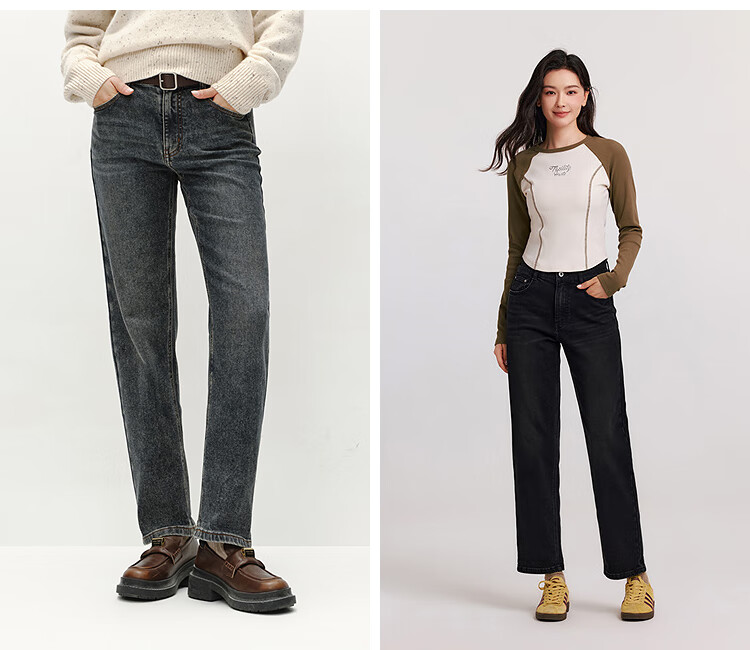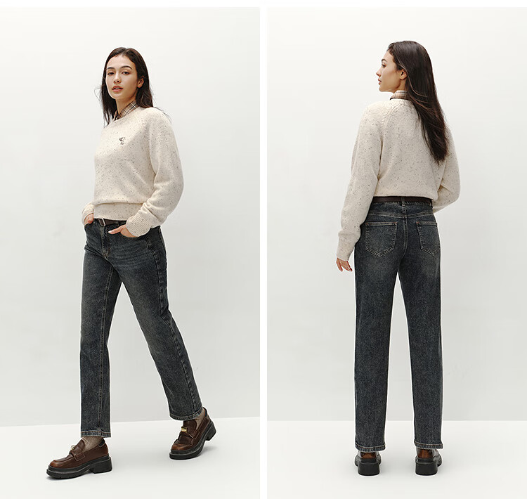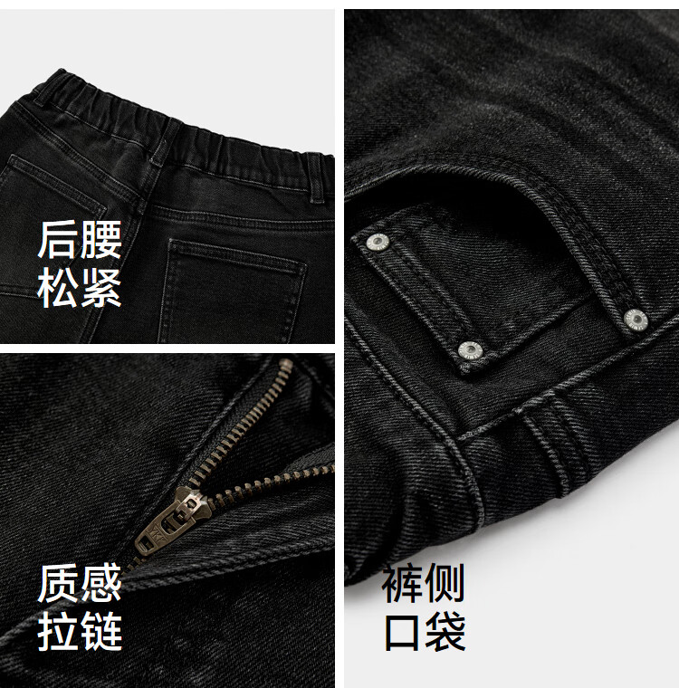 森马(Semir)森柔牛仔|牛仔裤女抓毛长裤女生冬季半松紧腰直筒裤103724124002