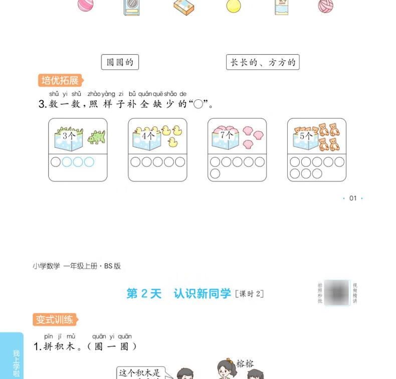 2025秋一本小学数学课后小练习一年级上册数学BS北师版同步天天训练小学1年级数学课本一课一练一本同步练习作业