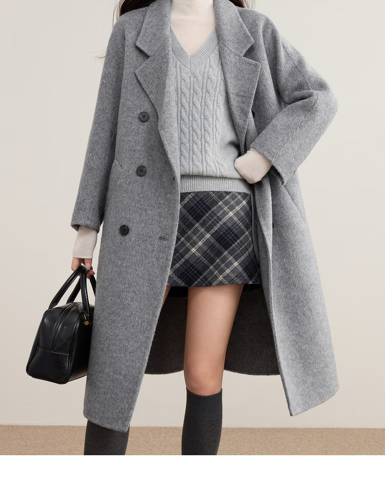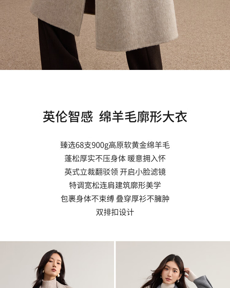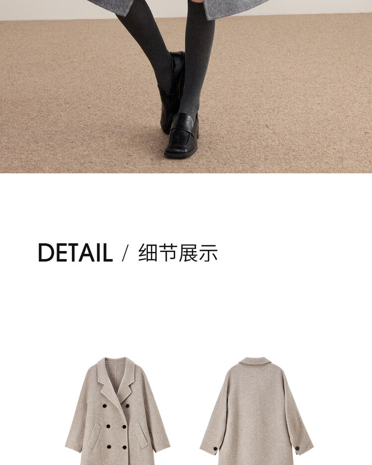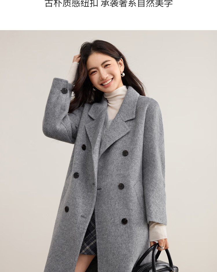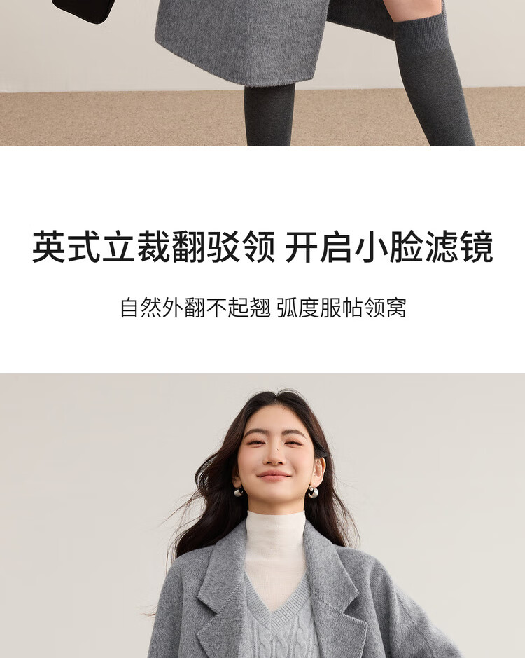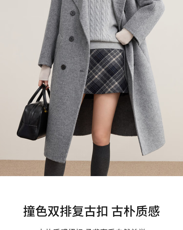 尚都比拉含羊毛英伦风毛呢大衣女冬季厚款保暖双面呢外套宽松长款长袖上衣