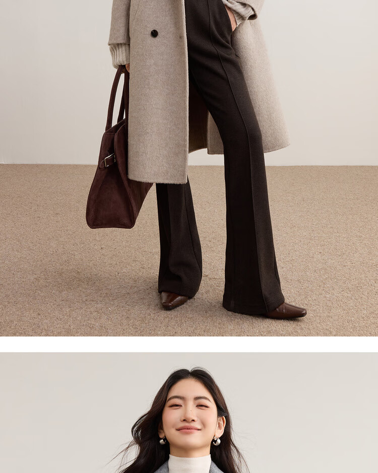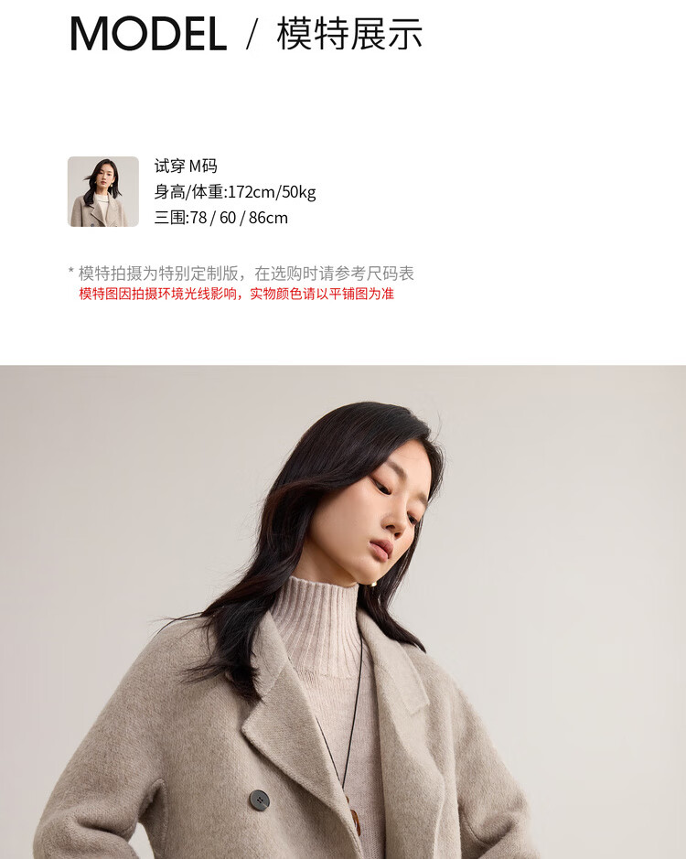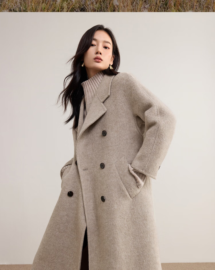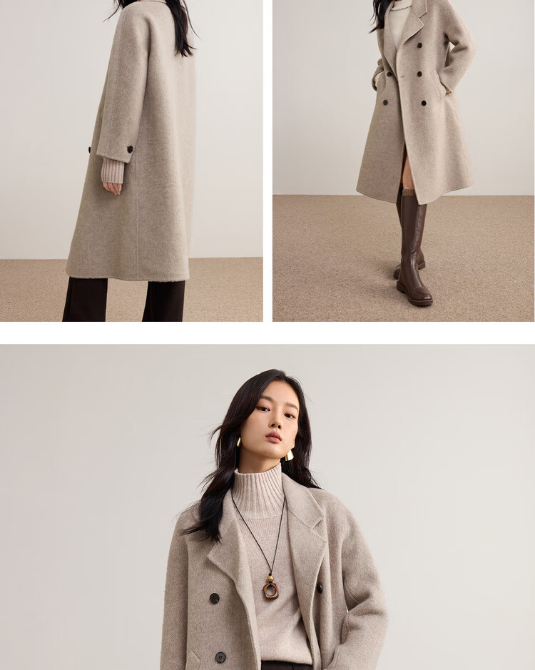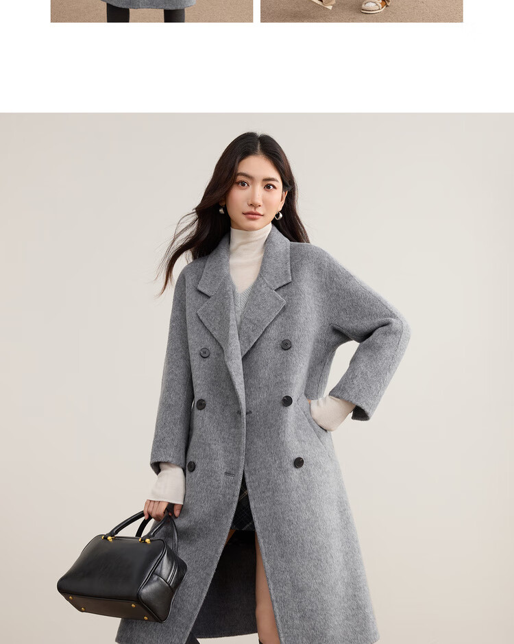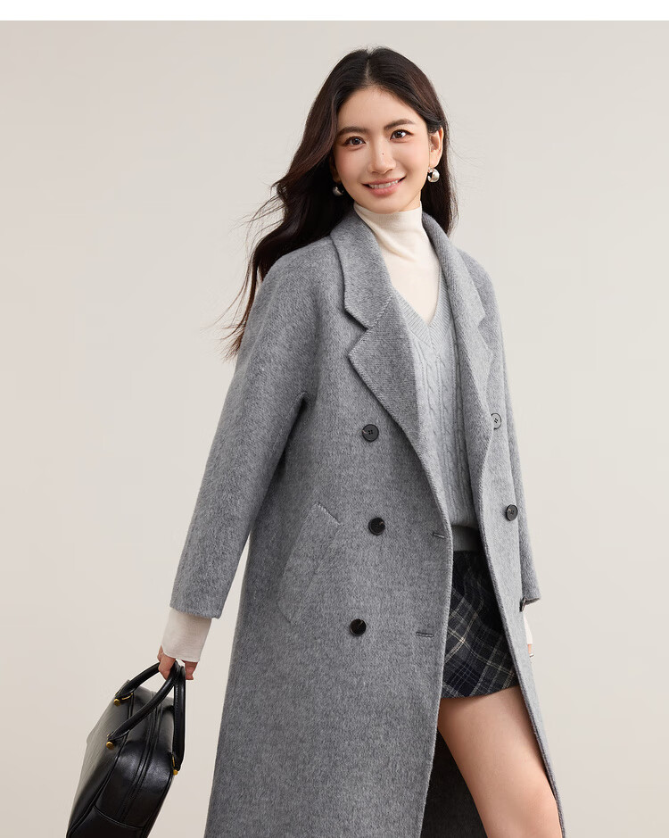 尚都比拉含羊毛英伦风毛呢大衣女冬季厚款保暖双面呢外套宽松长款长袖上衣