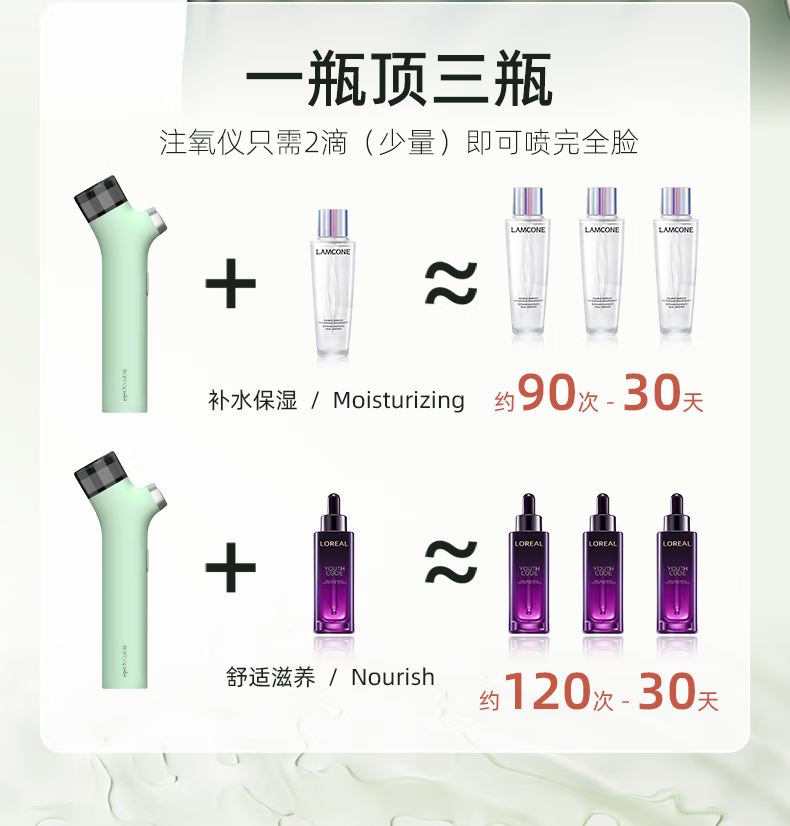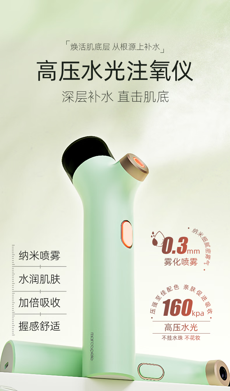 玛可蓓莉注氧仪雾化喷雾器美容仪脸部面部补水仪便携家用手持加湿器高压水光注氧生日礼物 纳米喷雾+高效注氧