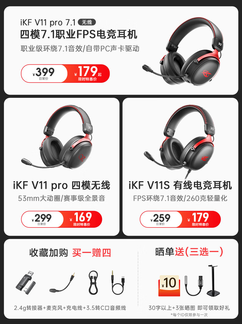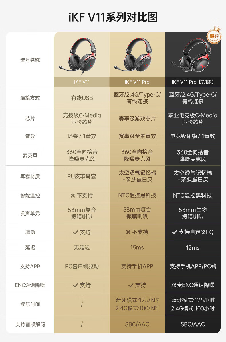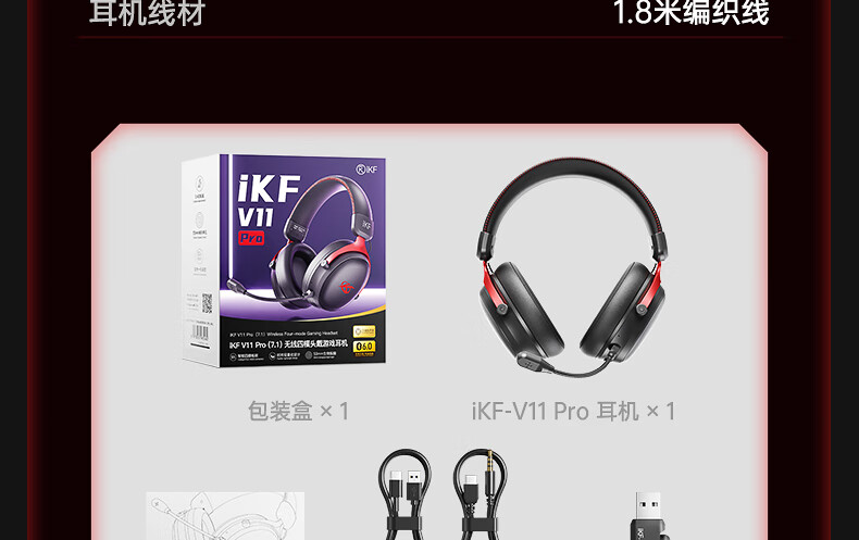 iKF V11 Pro7.1四模游戏耳机蓝牙无线头戴式7.1环绕音效有线电竞专用无畏契约fps听声辨位三角洲 粉白