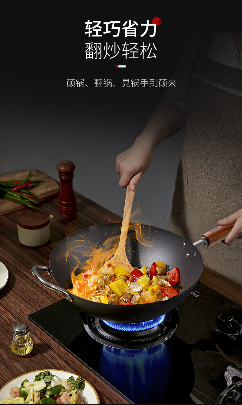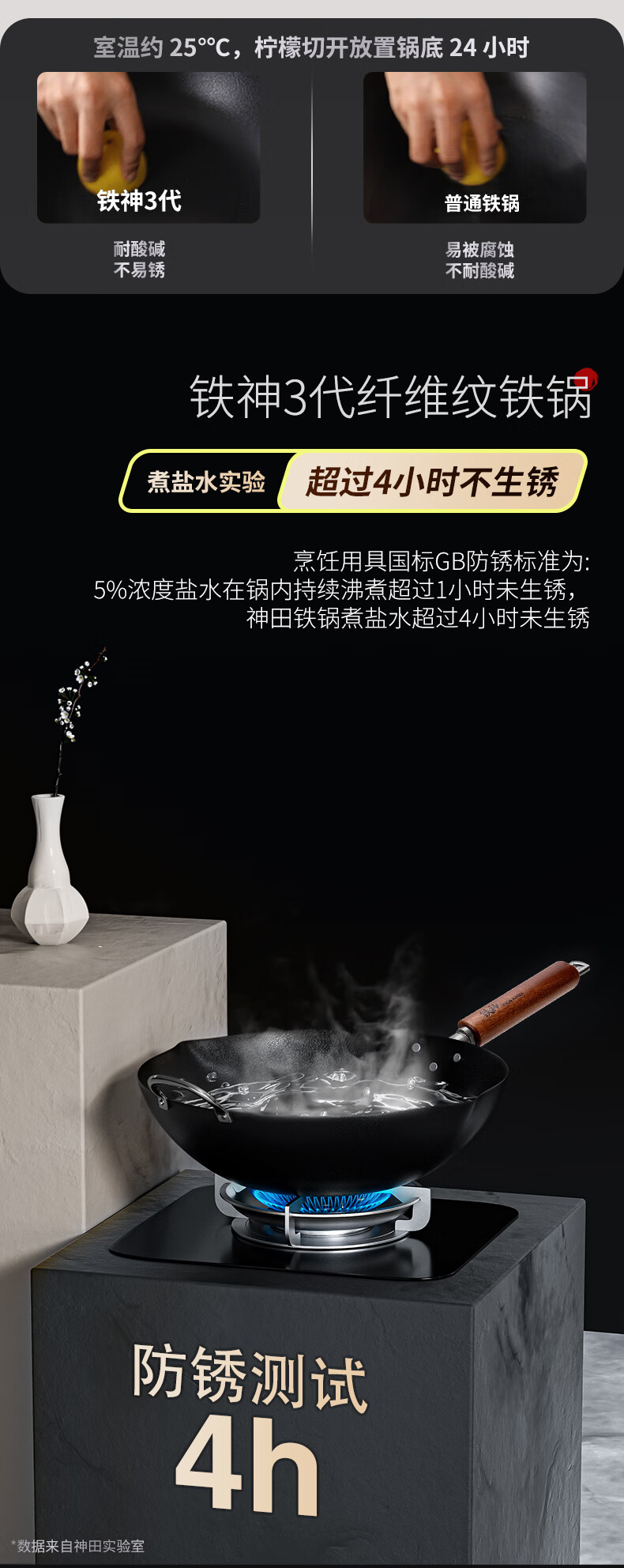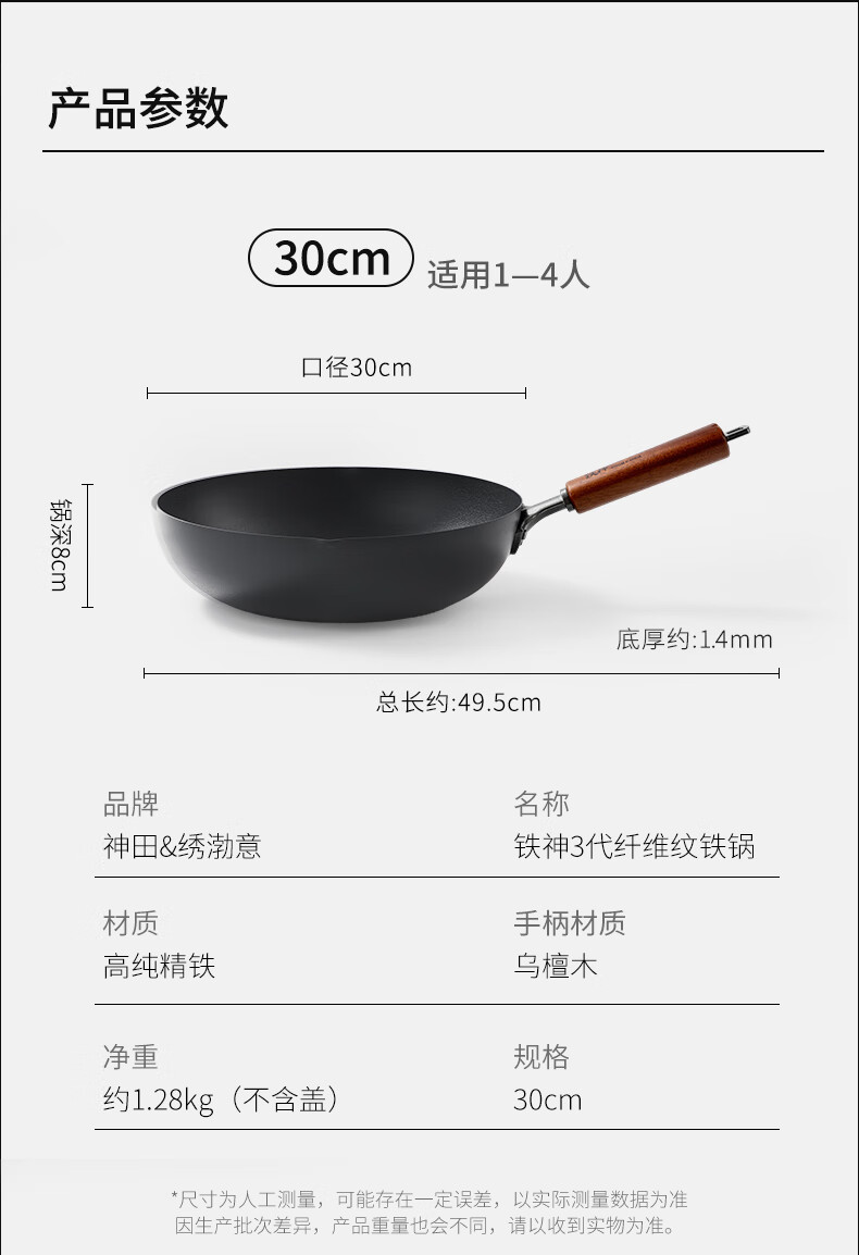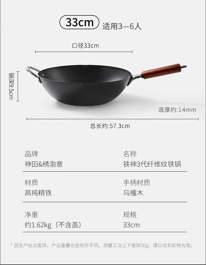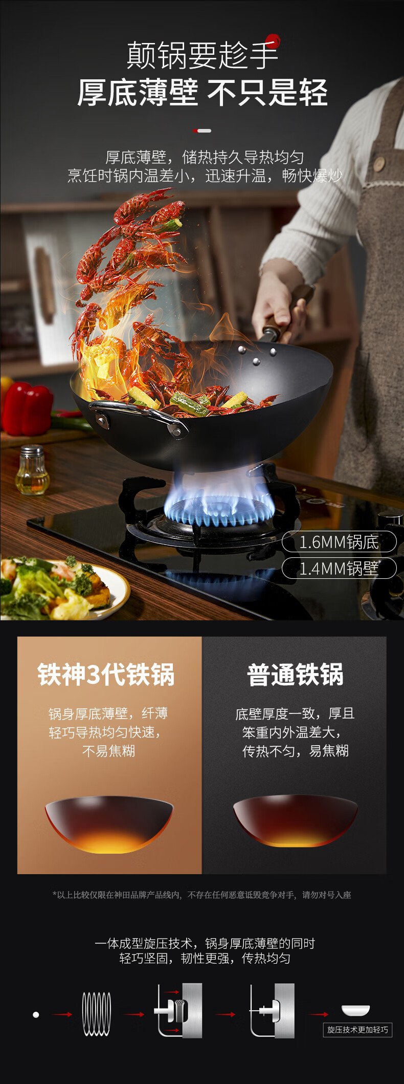 神田家用铁锅老式日本窒化炒锅无涂层物理不粘锅炒菜锅精铁炒锅 铁神三代 (已开锅含锅盖) 33cm