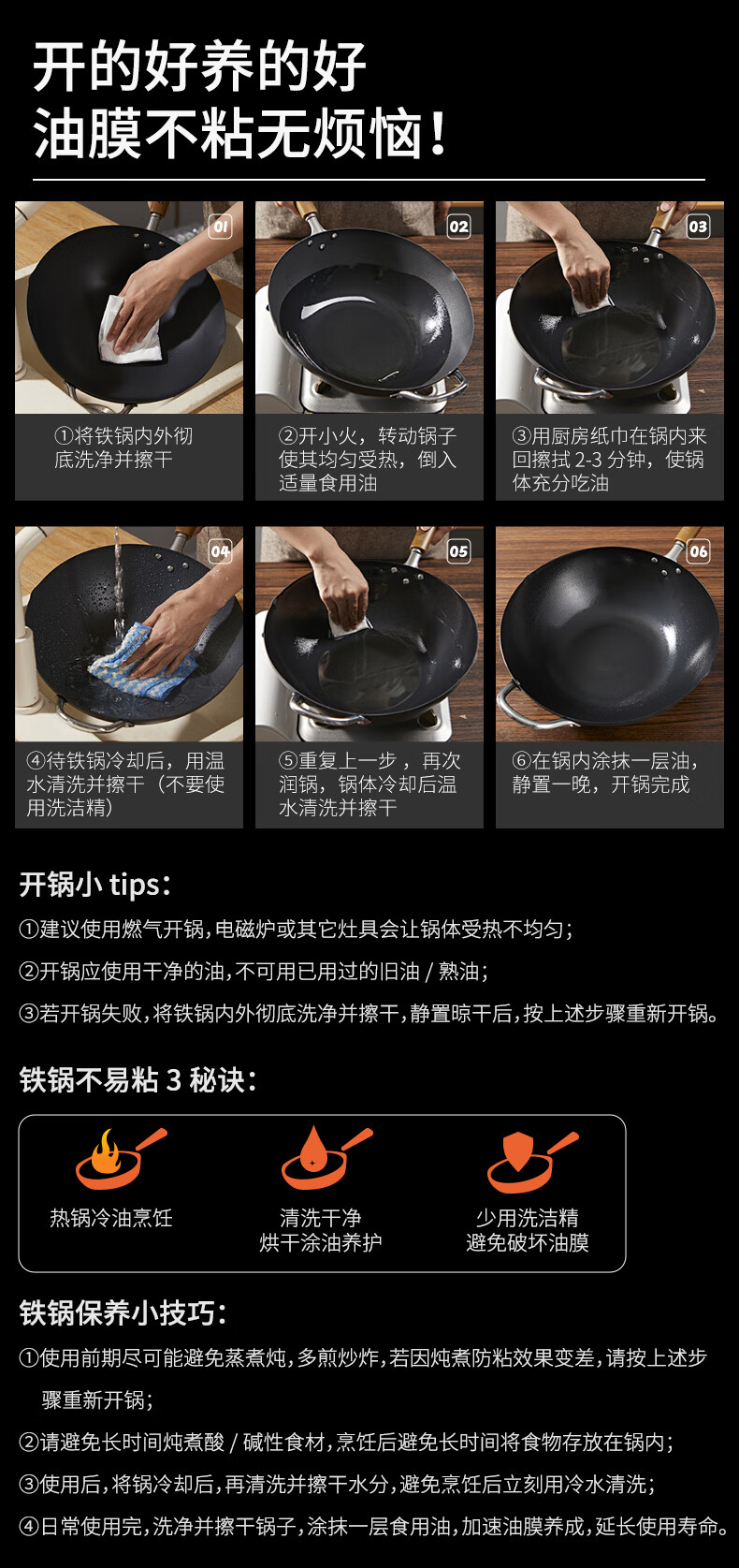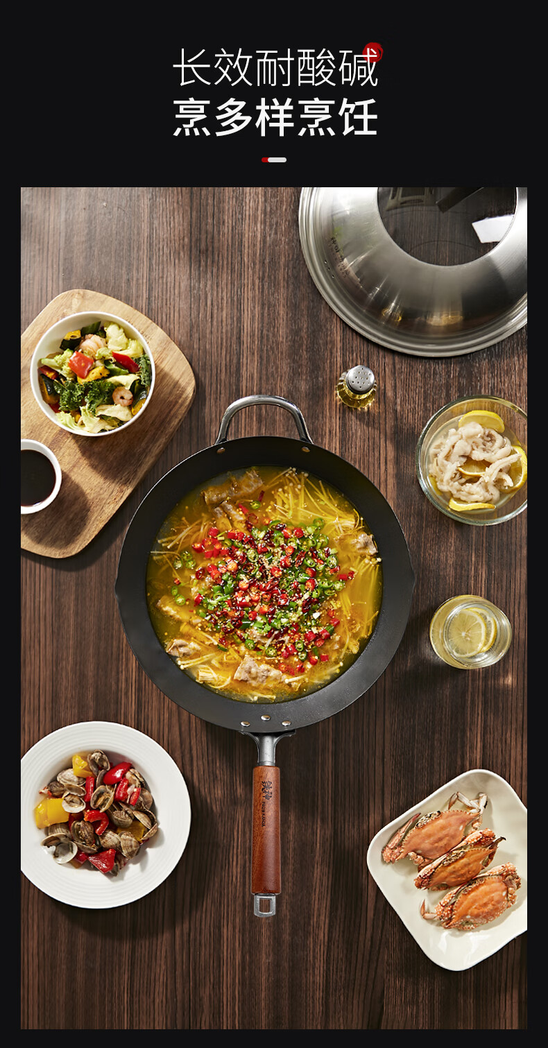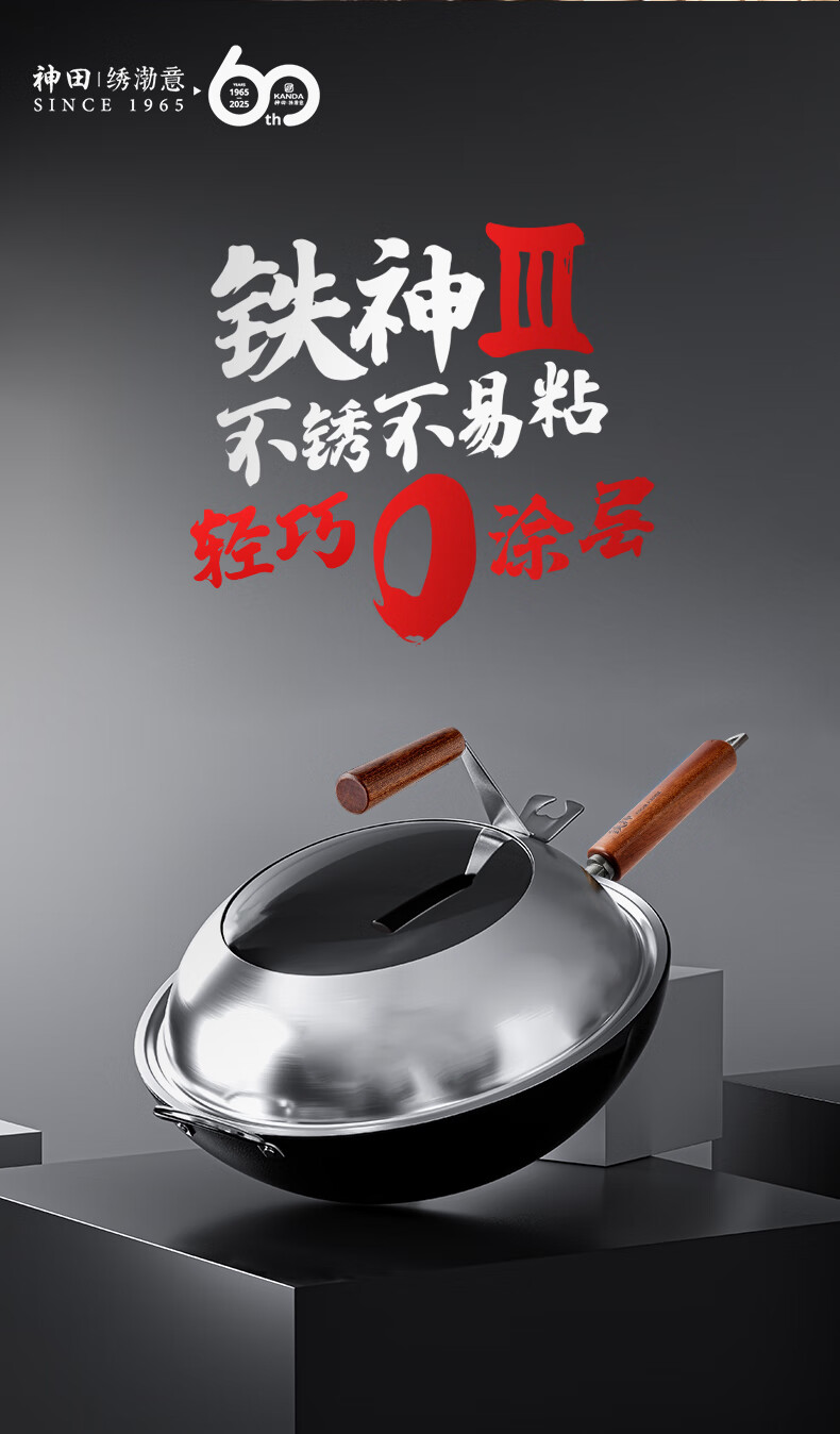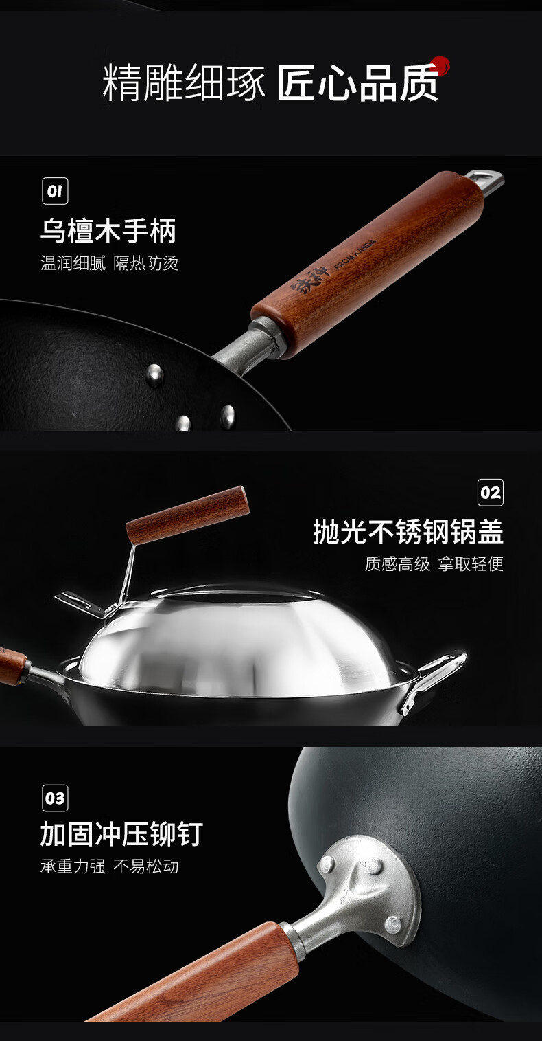 神田家用铁锅老式日本窒化炒锅无涂层物理不粘锅炒菜锅精铁炒锅 铁神三代 (已开锅含锅盖) 33cm