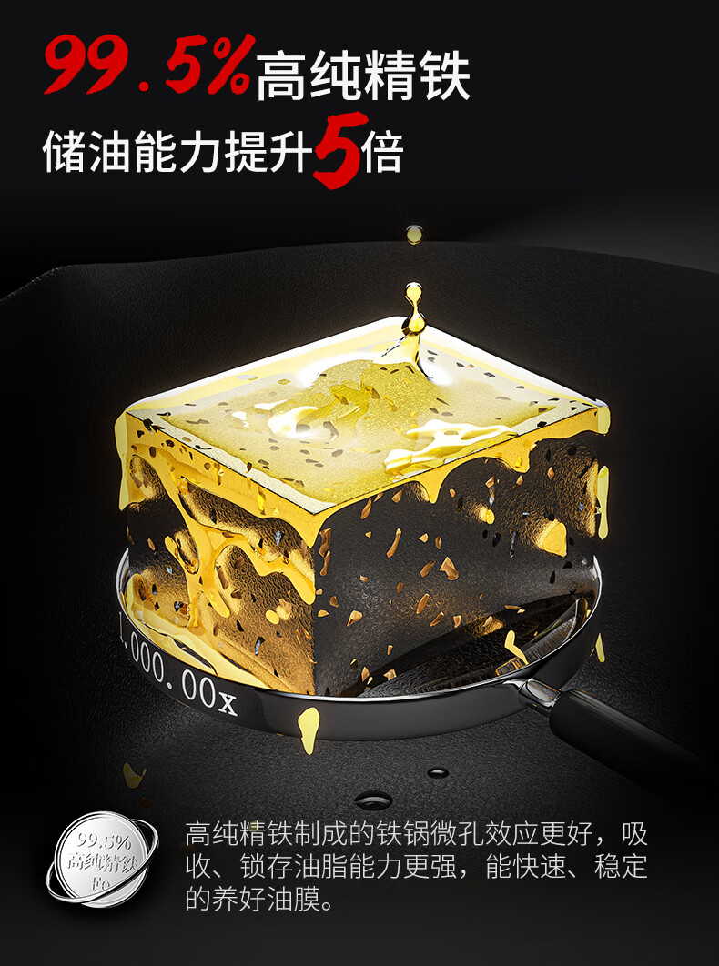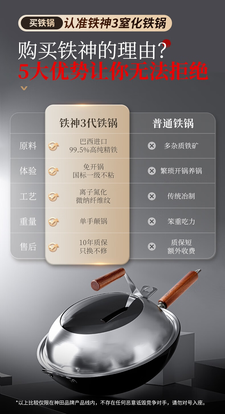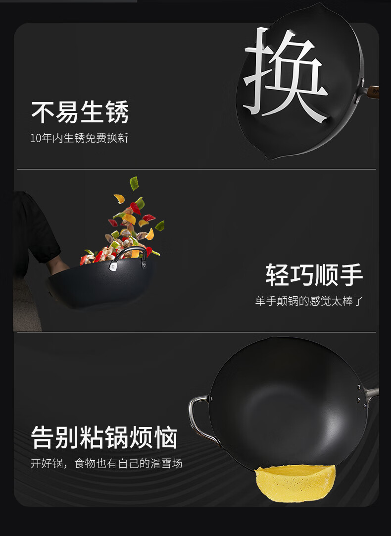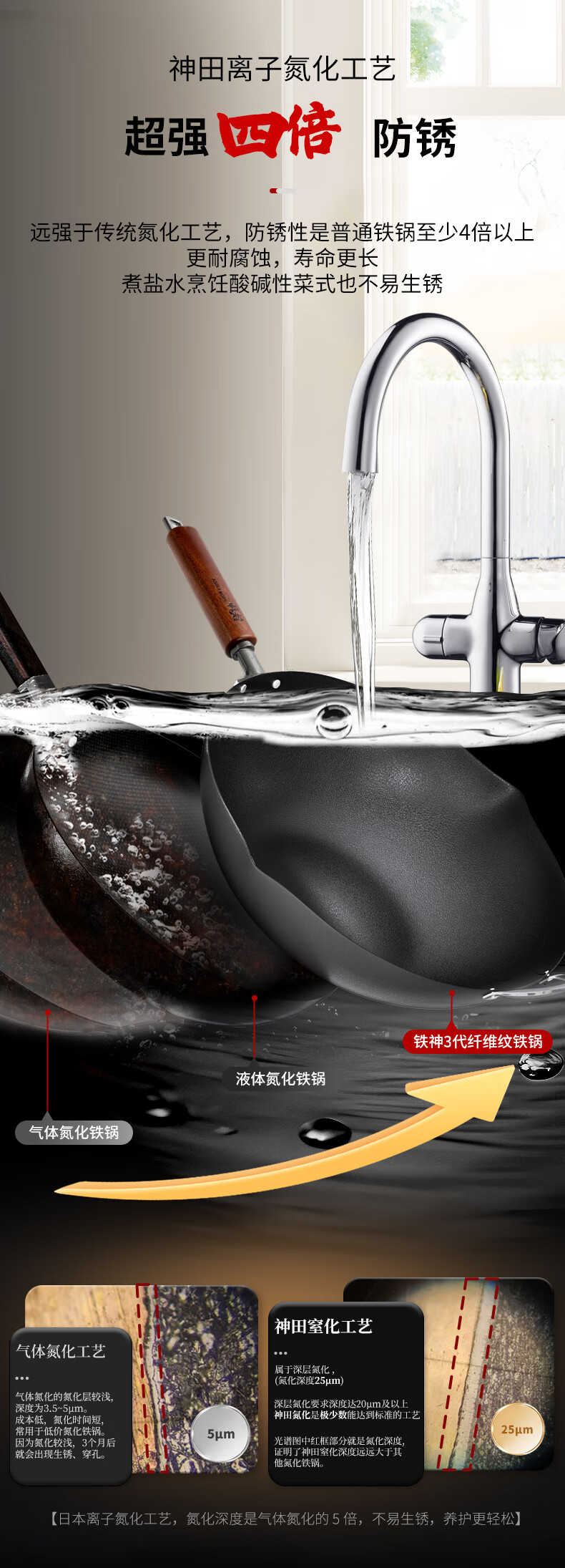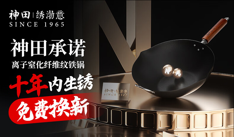 神田家用铁锅老式日本窒化炒锅无涂层物理不粘锅炒菜锅精铁炒锅 铁神三代 (已开锅含锅盖) 33cm