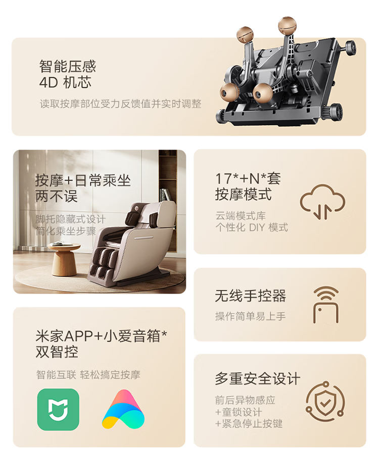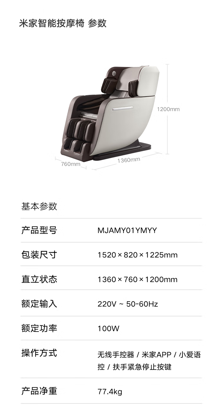 米家小米按摩椅 家用多功能全身太空舱按摩机 小爱智能零重力互联电动按摩沙发 节日礼物 米家智能按摩椅