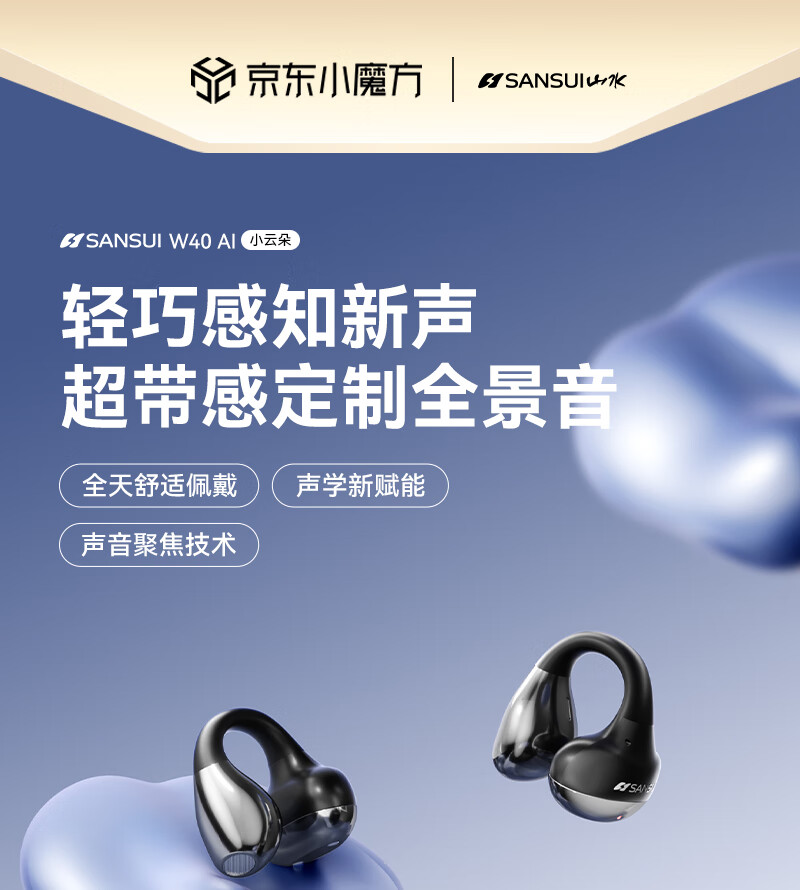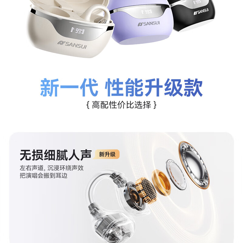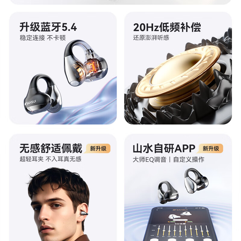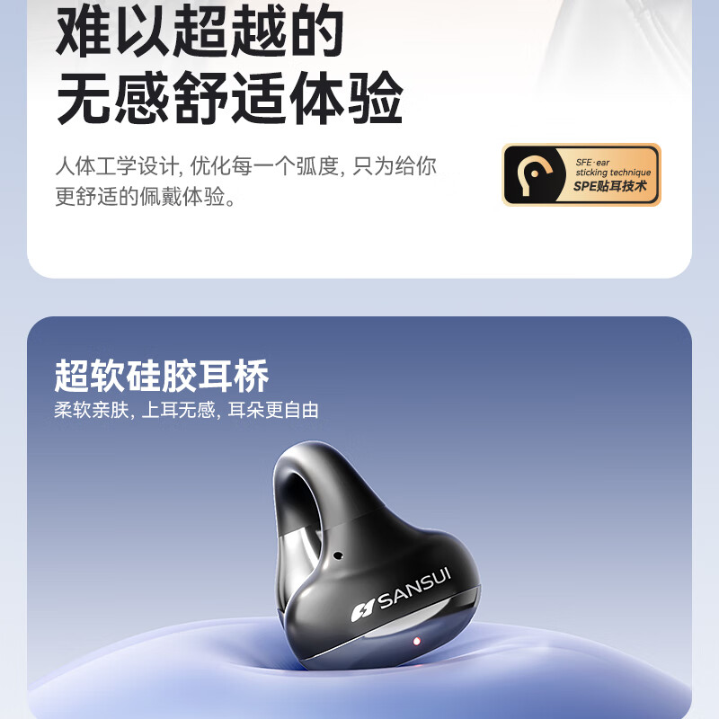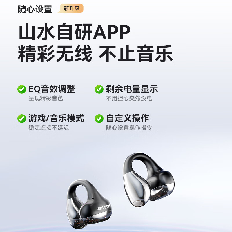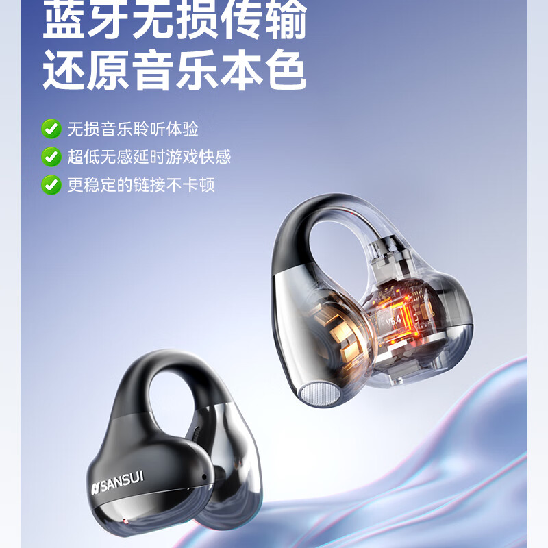 山水(SANSUI)W40 蓝牙耳机耳夹式骨传导耳机概念开放式无线运动 跑步通话降噪挂耳适用于华为小米苹果礼物