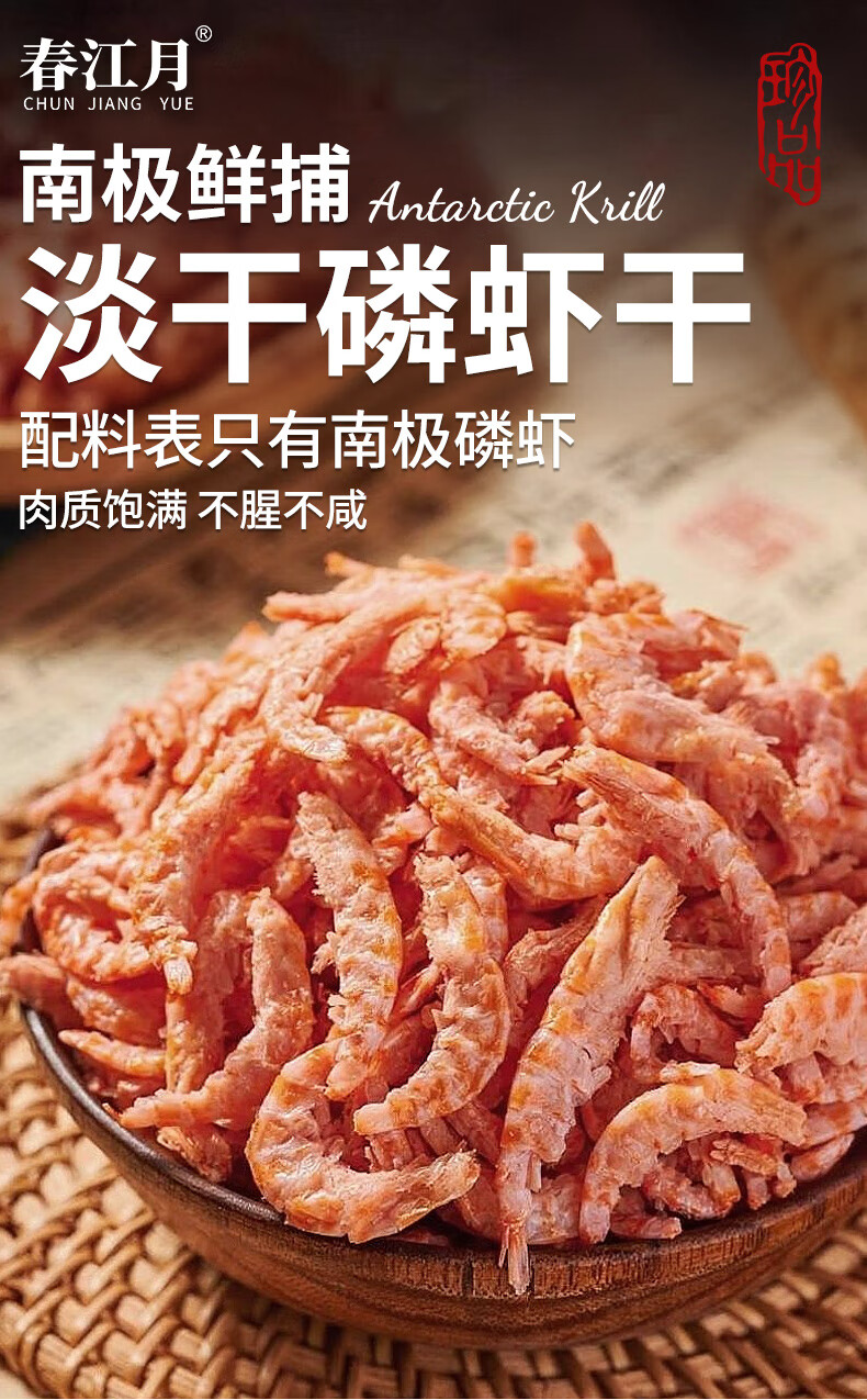 春江月南极磷虾仁深海鳞虾干肉干货新鲜小虾米虾皮特产磷虾干官方旗舰店 南极磷虾仁【250g*2袋】南极鲜捕