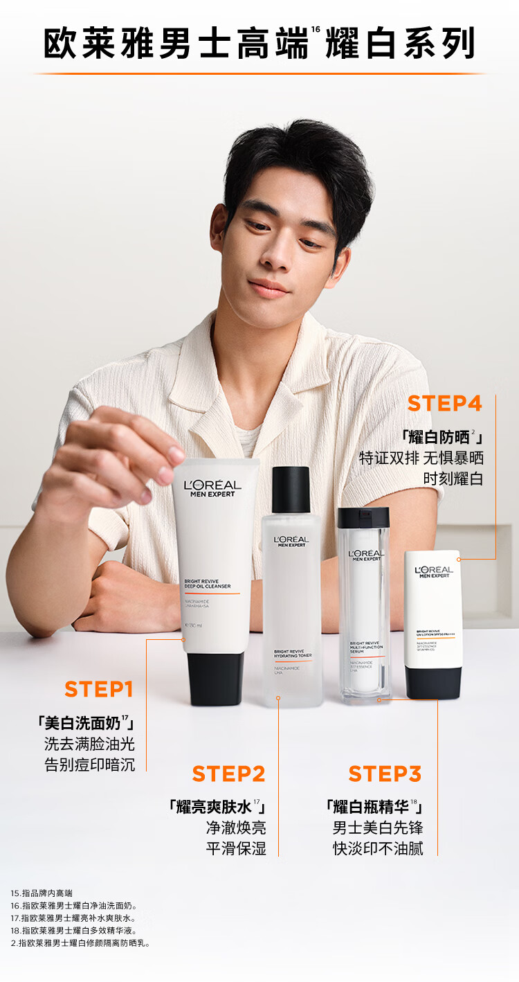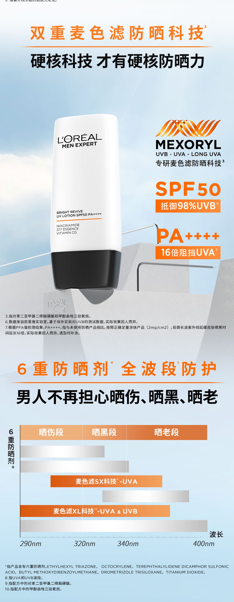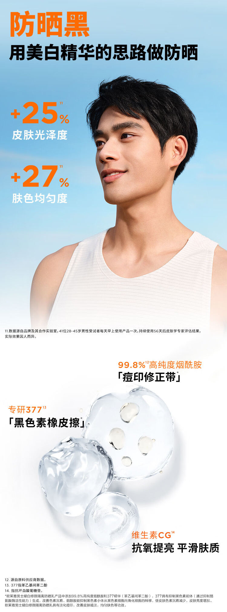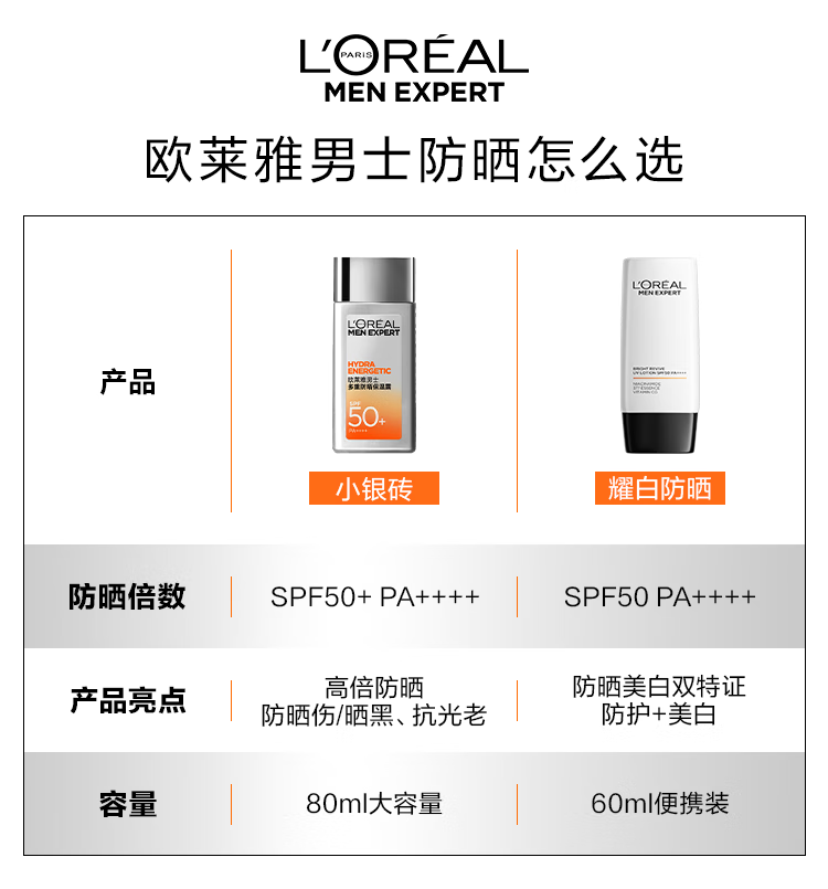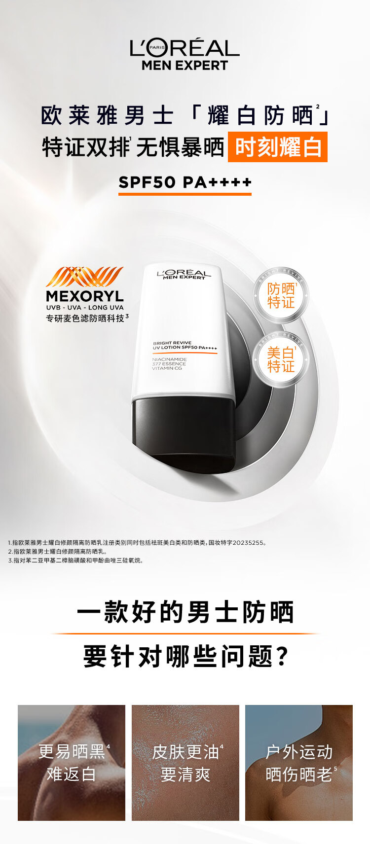 欧莱雅男士专用耀白防晒霜隔离乳美白提亮SPF50户外军训护肤品送男友