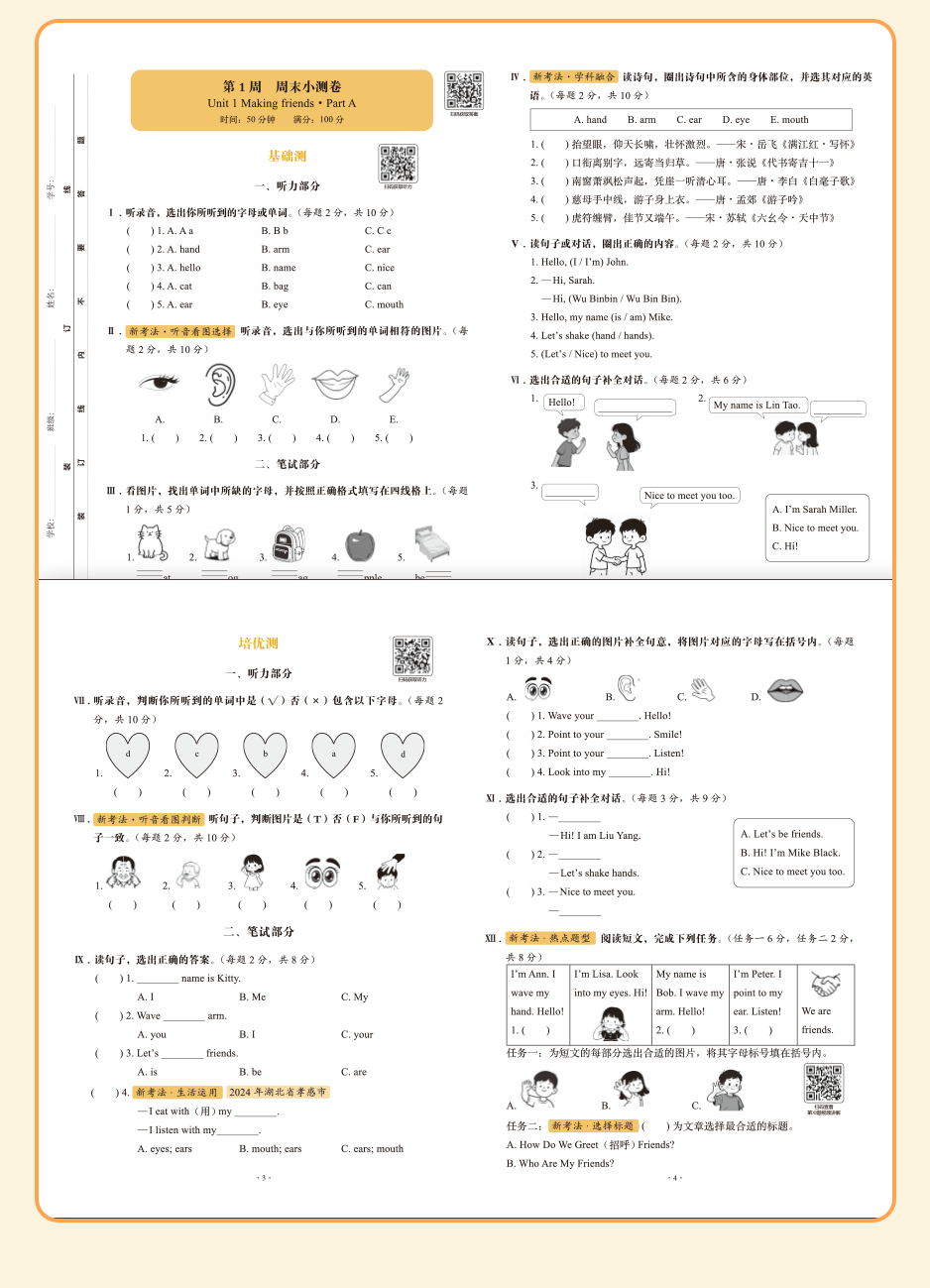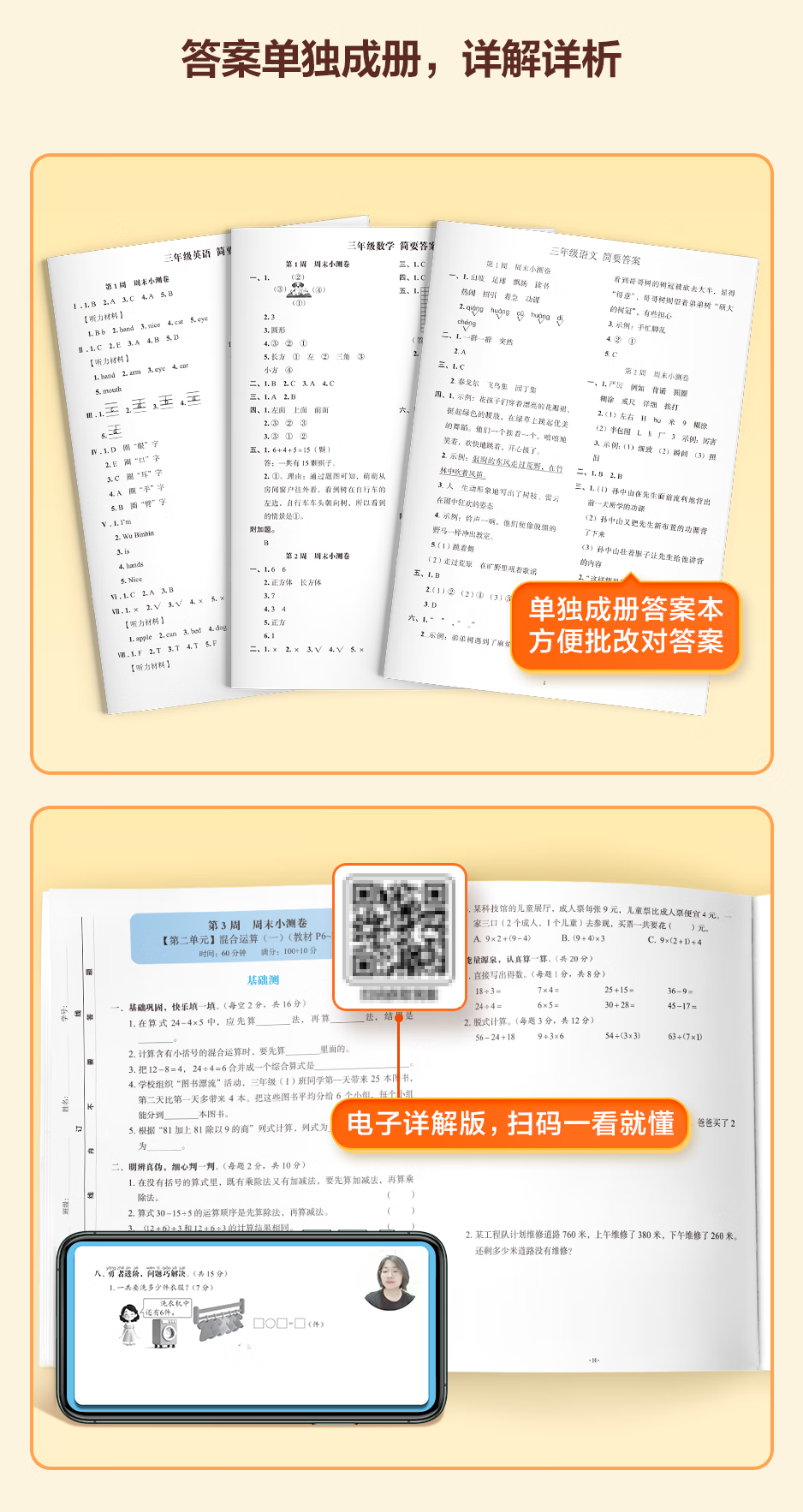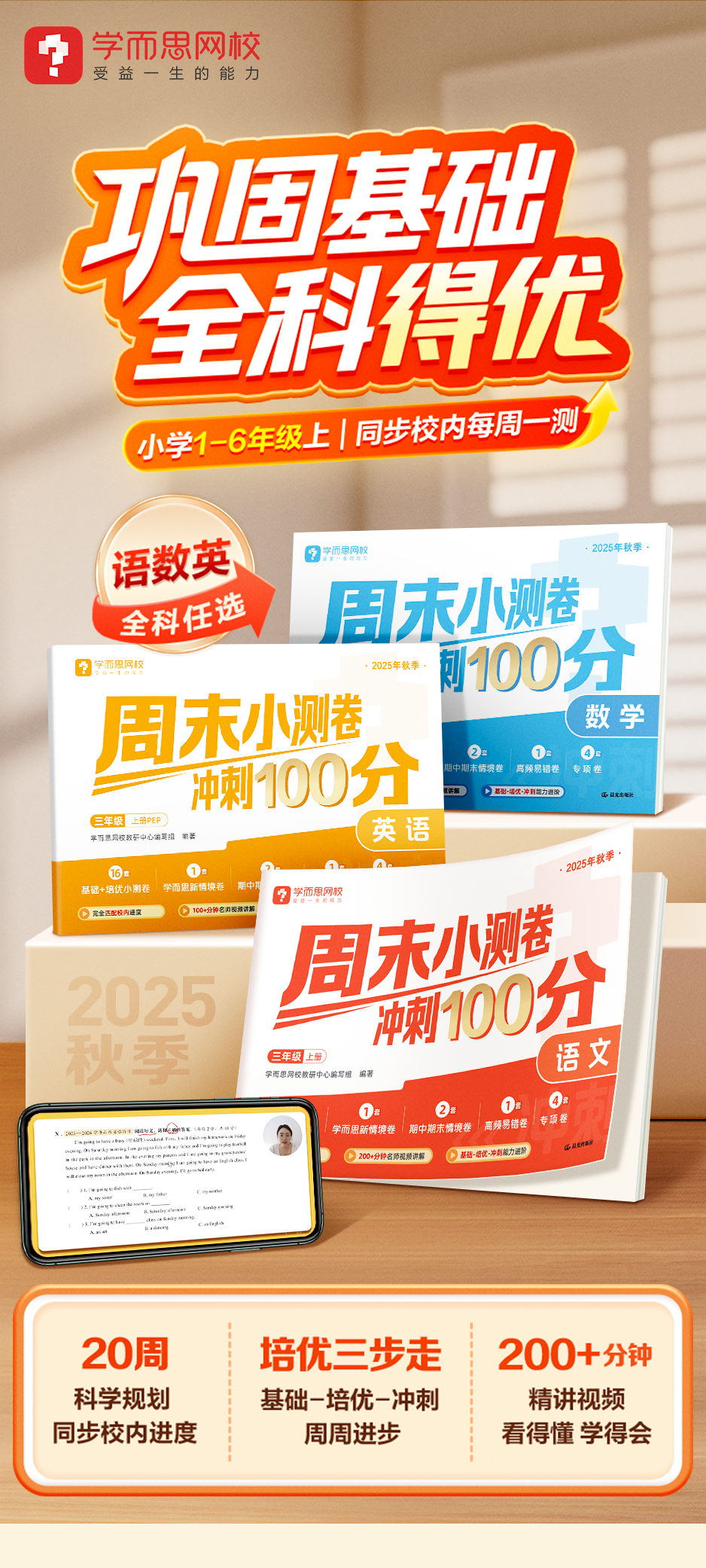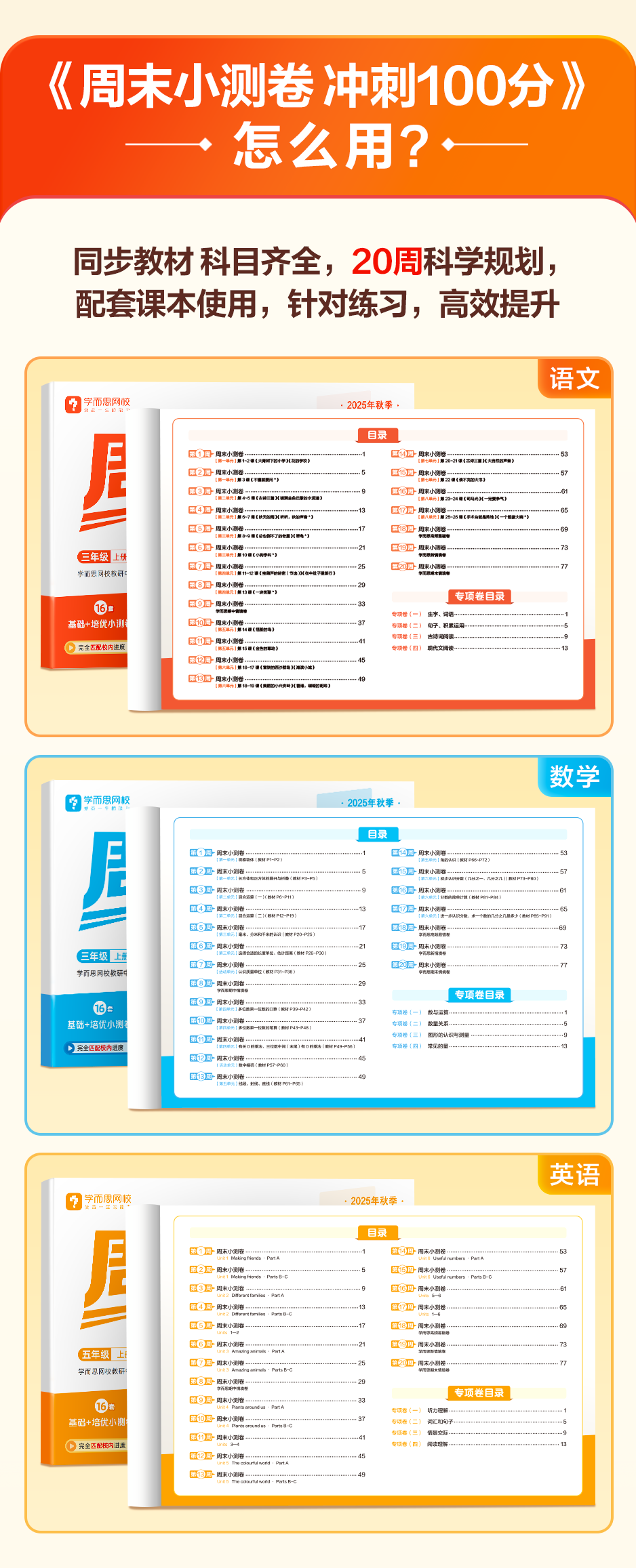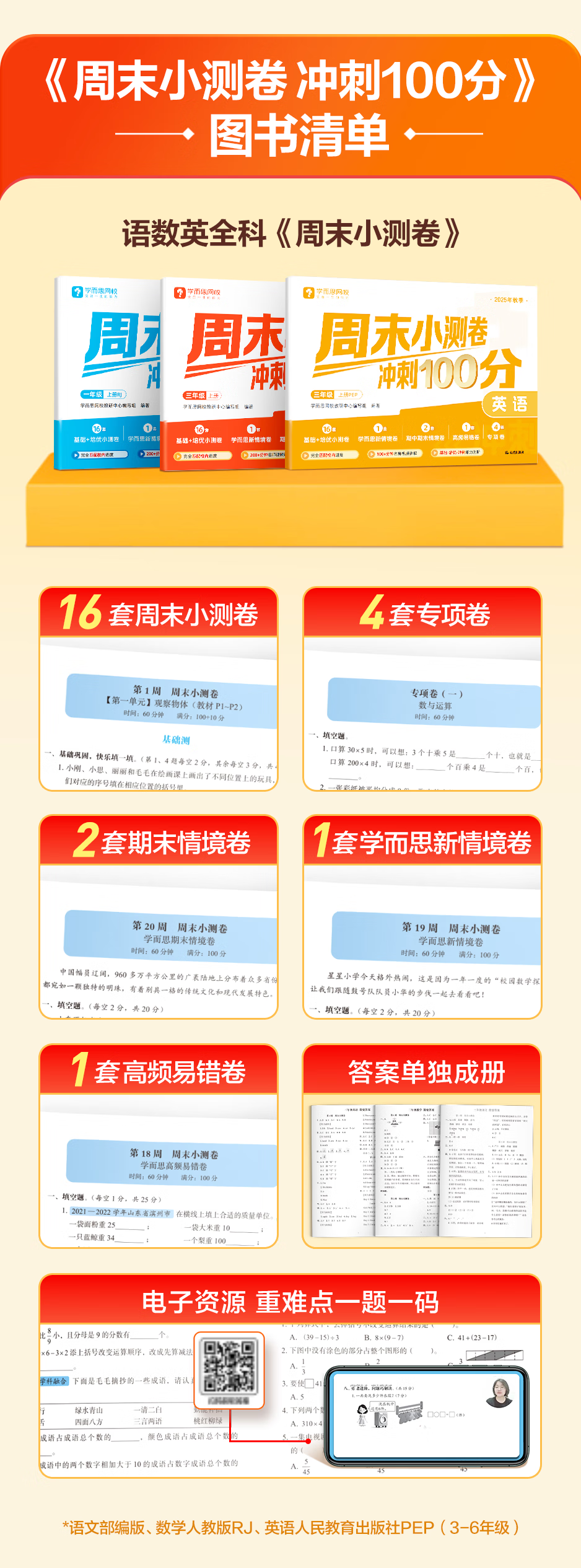 学而思 周末小测卷 冲刺100分 小学1-6年级 数学语文英语 一周一测跟进度 周末冲刺 同步课本 同步训练 知识复习 测试卷-WX 英语 三年级上