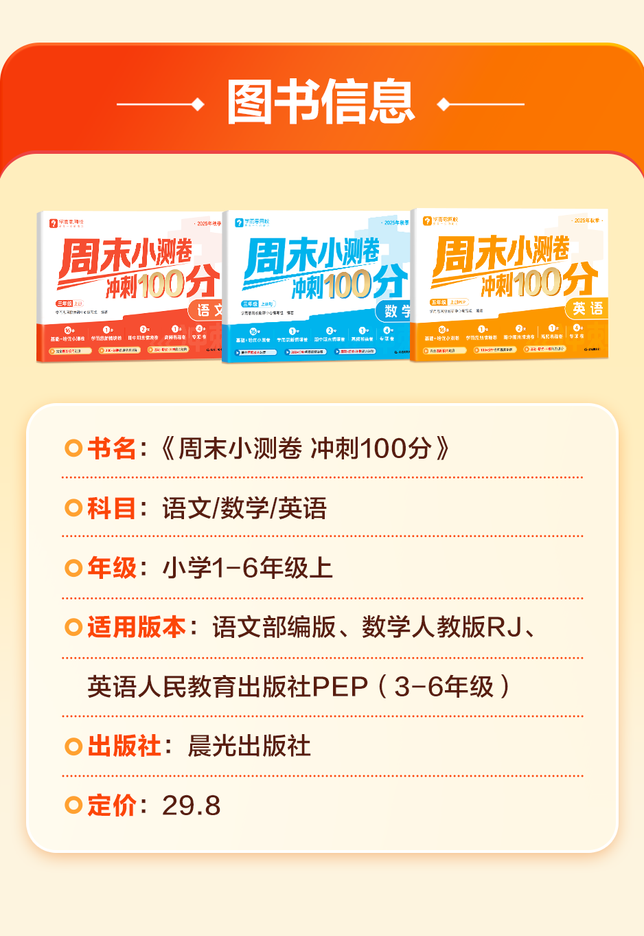 学而思 周末小测卷 冲刺100分 小学1-6年级 数学语文英语 一周一测跟进度 周末冲刺 同步课本 同步训练 知识复习 测试卷-WX 英语 六年级上