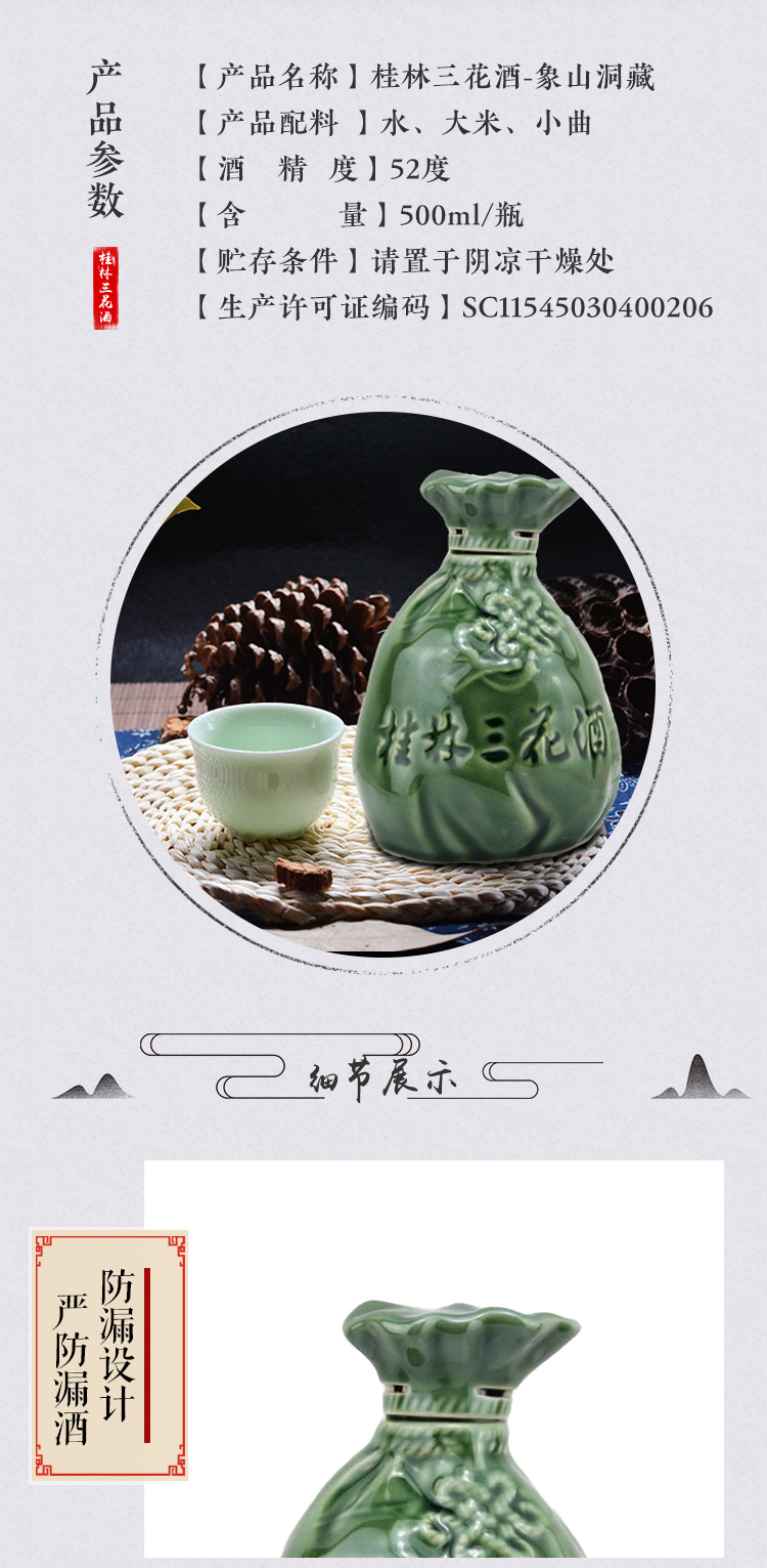 桂林三花酒 象山洞藏 米香型白酒 52度 500ml 单瓶装广西名酒 送礼