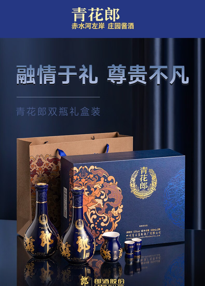 郎酒青花郎 白酒 酱酒 53度 500ml*2 礼盒装 商务名酒