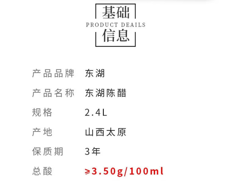 东湖醋 3.5度 陈醋2.4L 山西特产中华老字号[新老包装替换,随机发货]