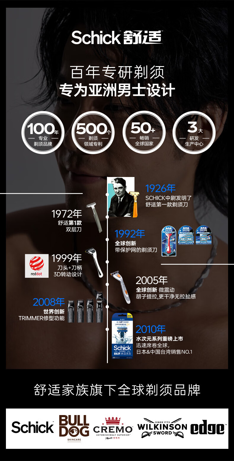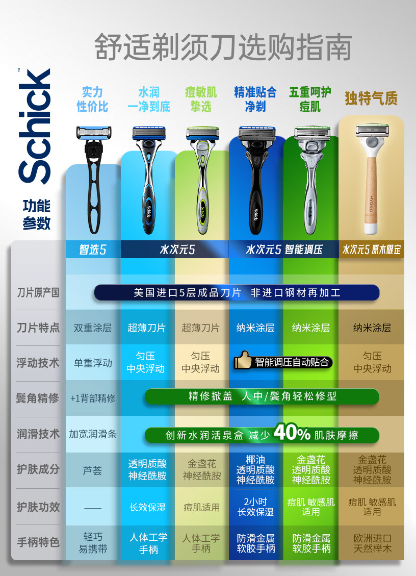 舒适(Schick)【保湿肌】水次元5基础款剃须刀【1刀架6刀头】高端防刮伤男士剃须刀 手动刮胡刀 生日礼物 礼物送男友