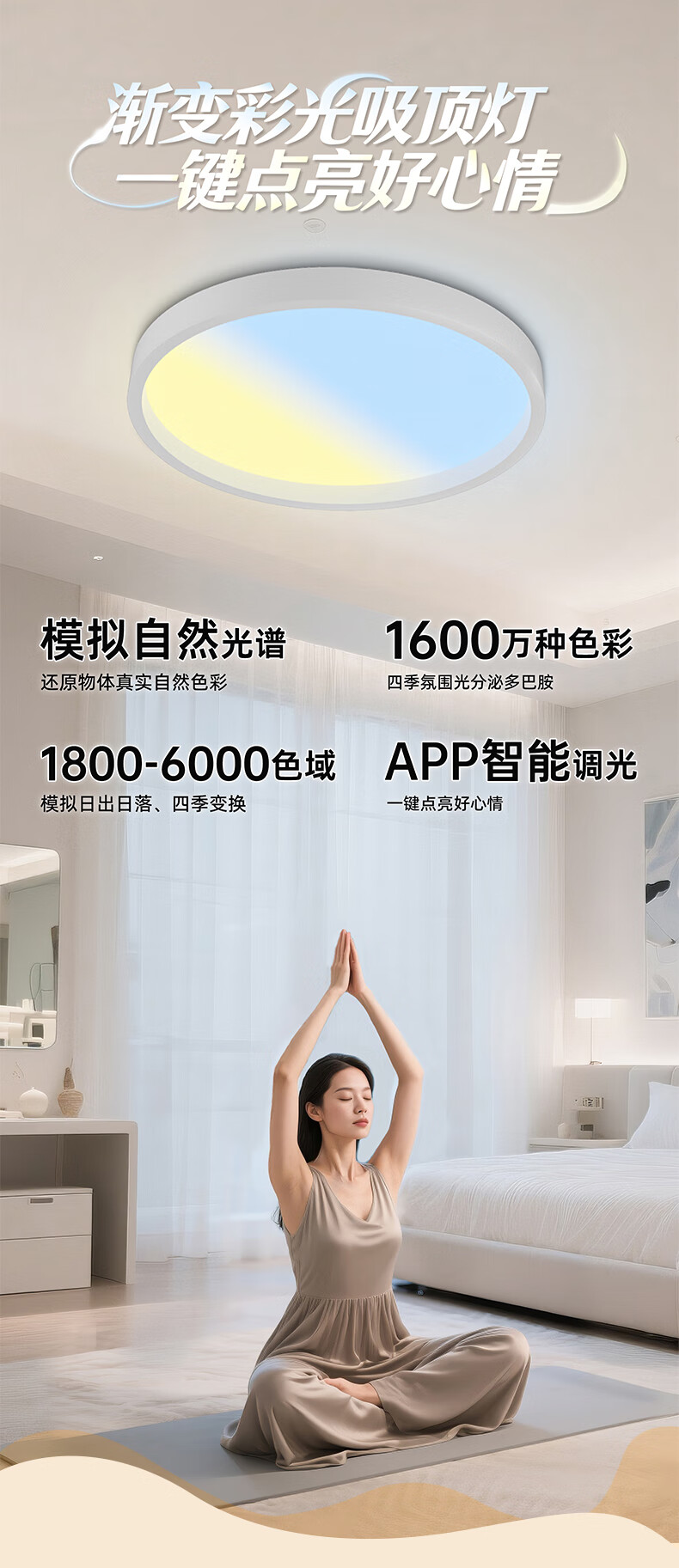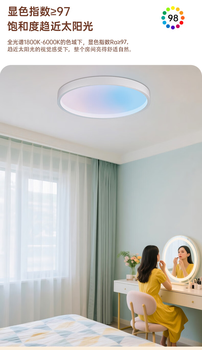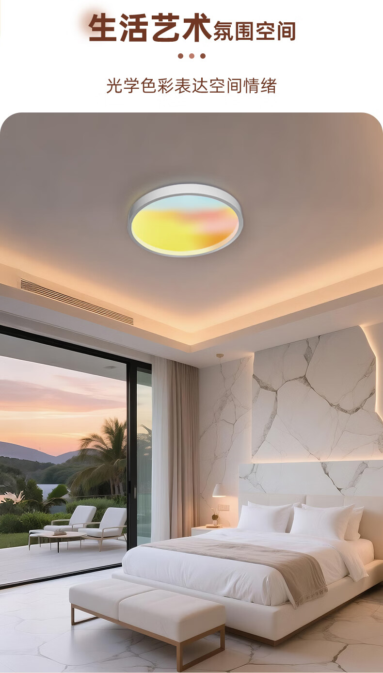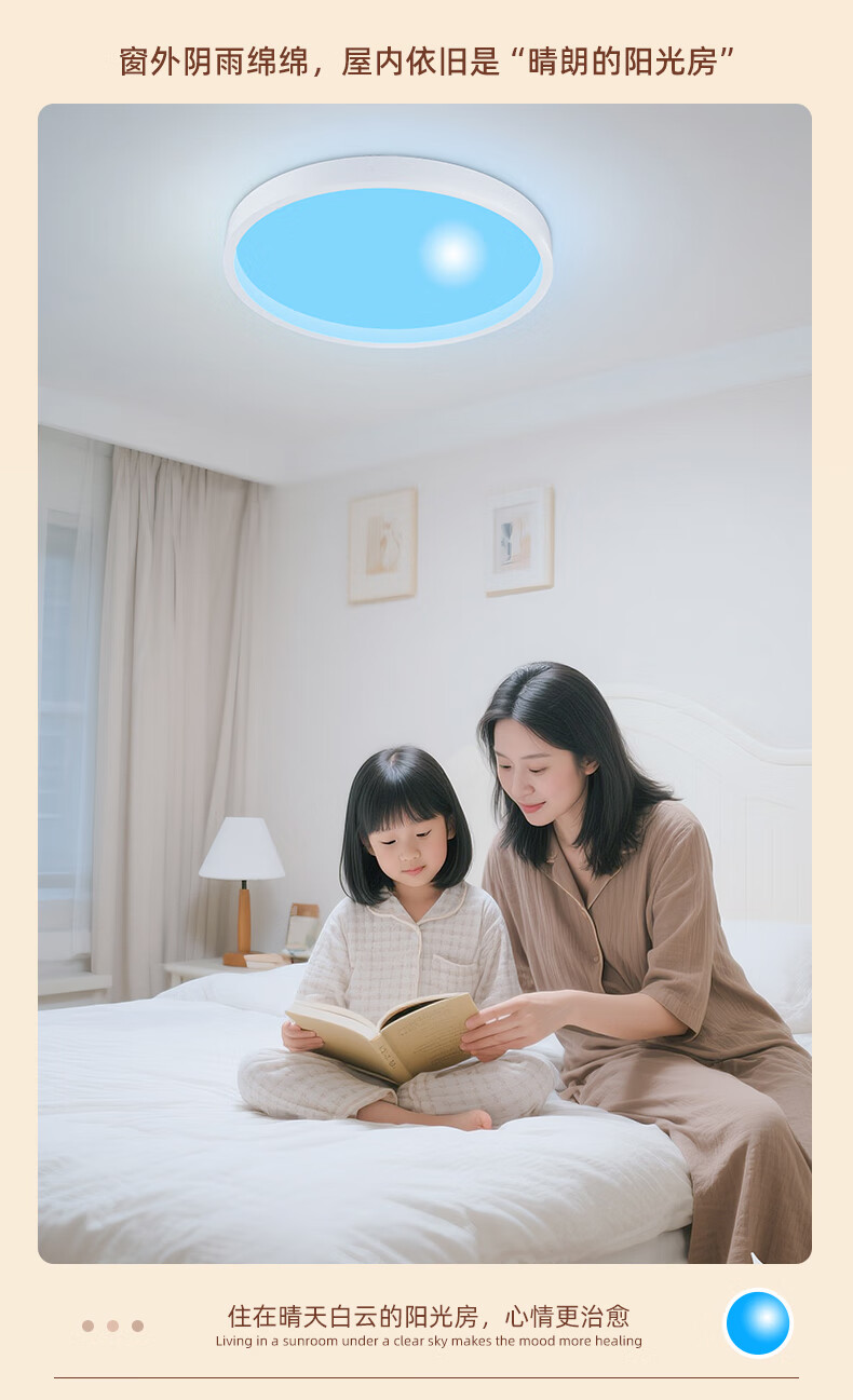 木林森照明全光谱卧室吸顶灯全彩多彩色LED天际客厅吸顶灯卧室晴空蓝天灯 80W 25㎡内适用 6000lm 全光谱淡彩光吸顶灯