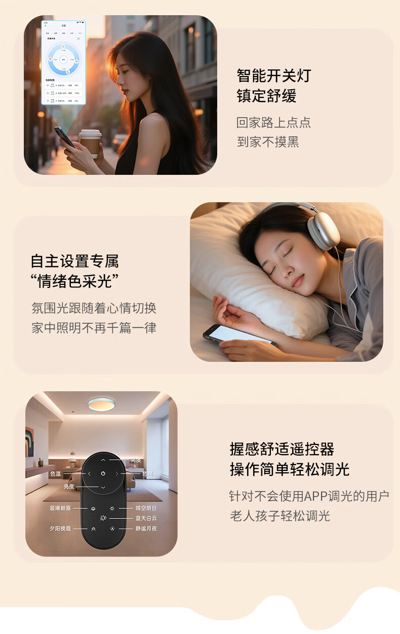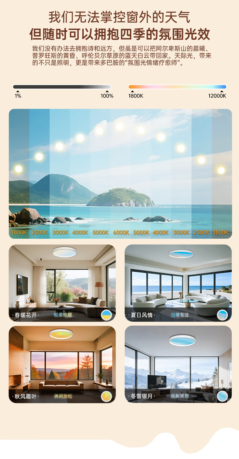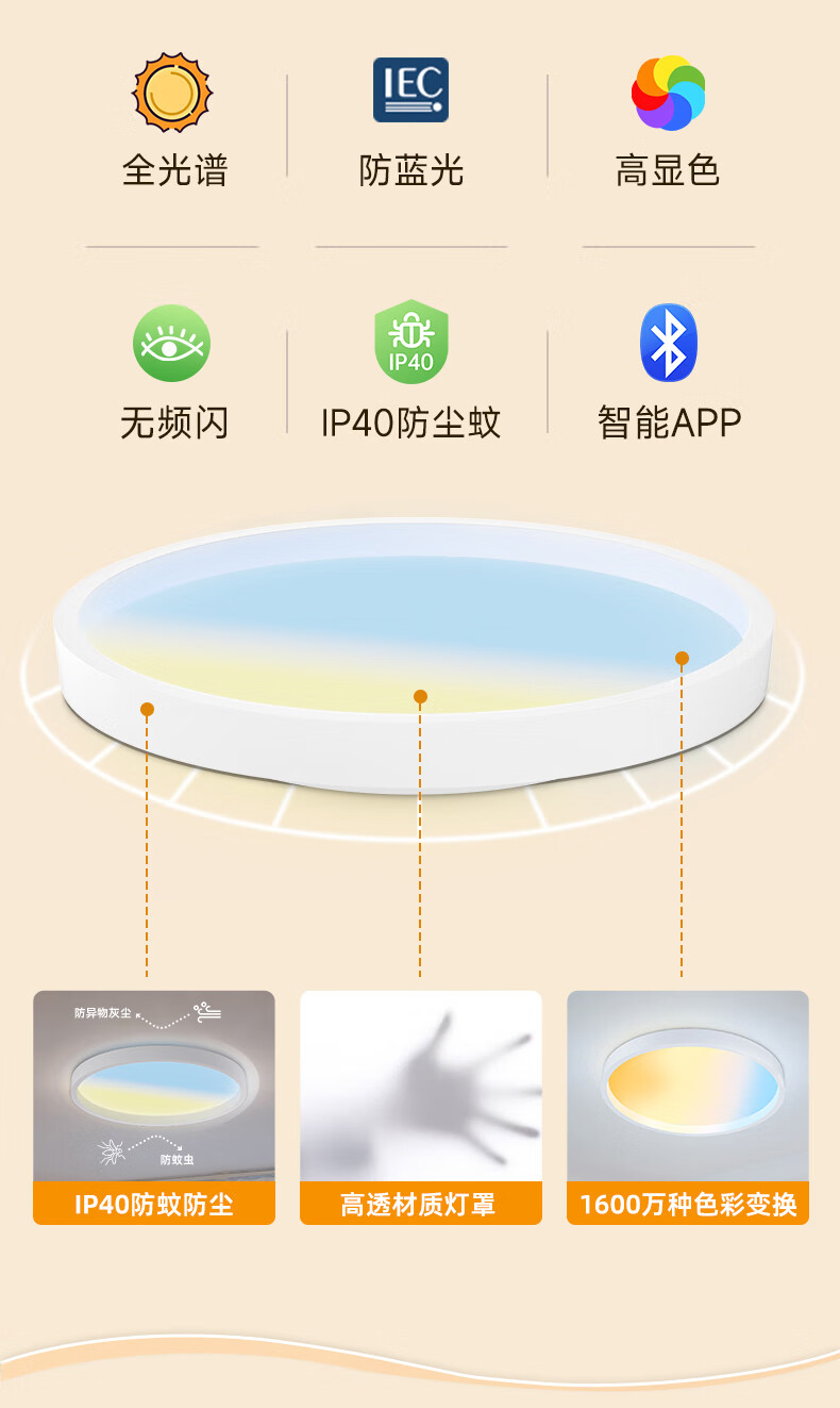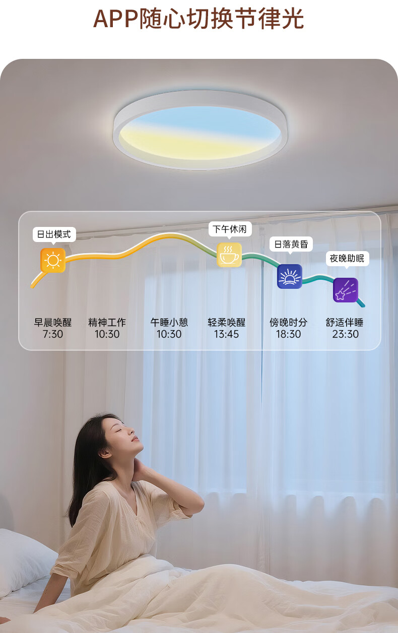 木林森照明全光谱卧室吸顶灯全彩多彩色LED天际客厅吸顶灯卧室晴空蓝天灯 80W 25㎡内适用 6000lm 全光谱淡彩光吸顶灯