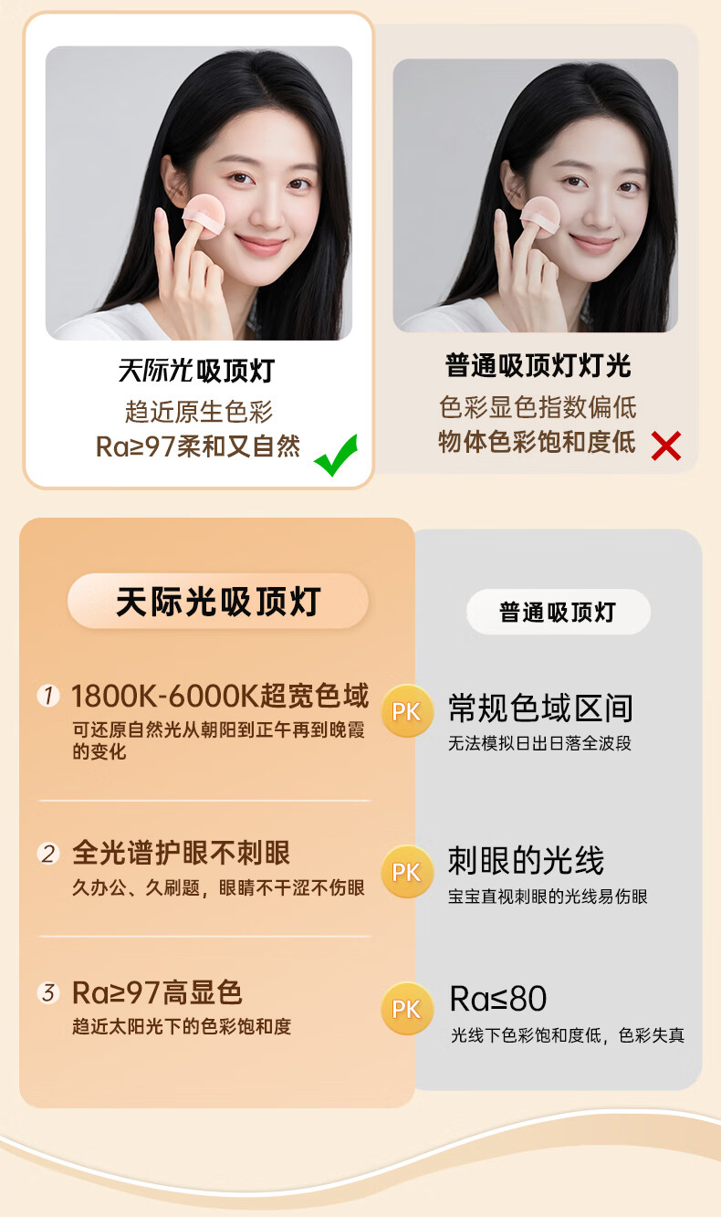 大自然照明(NATURE)客厅吸顶灯2025新款简约现代超薄护眼全光谱大气大厅主灯中山灯具 【全光谱护眼光源】奶白色 40cm 三色变光