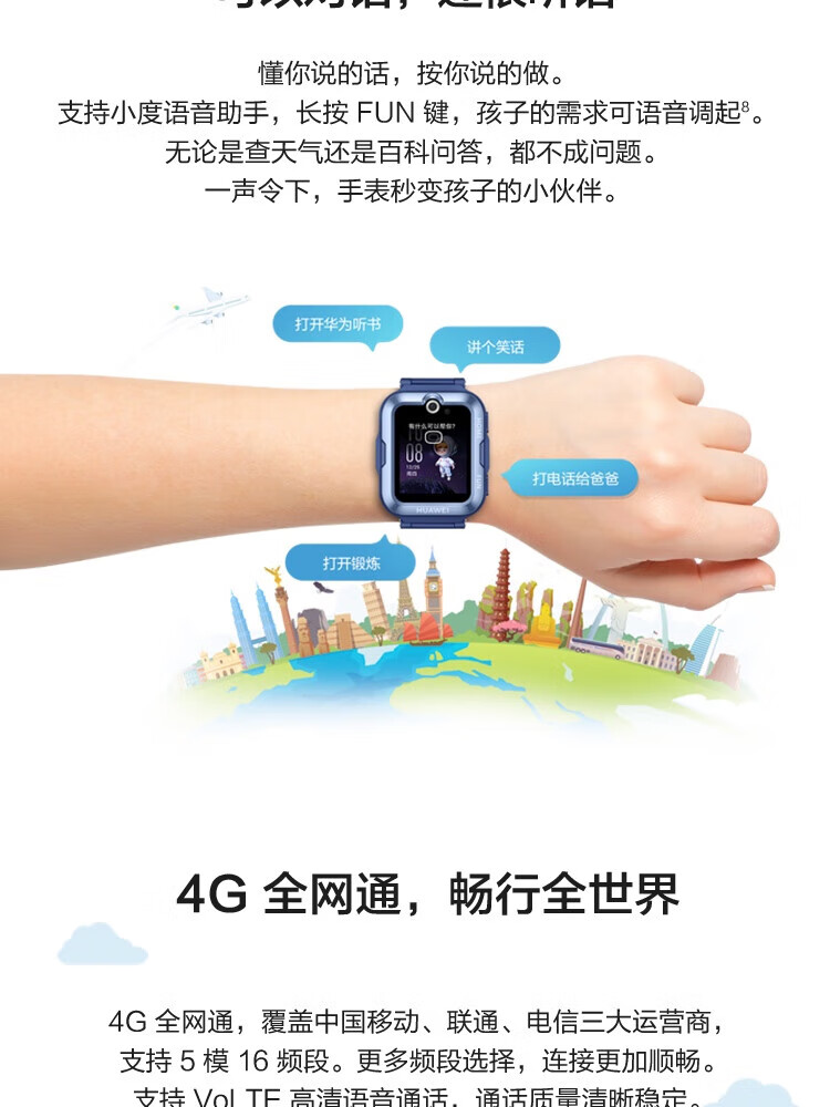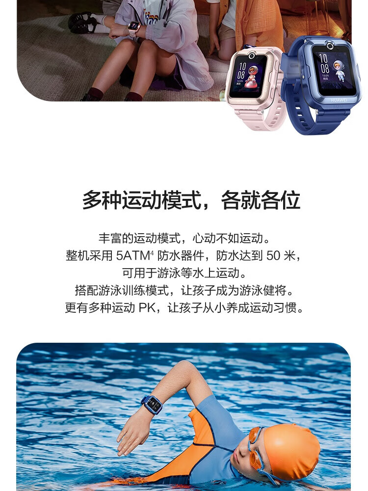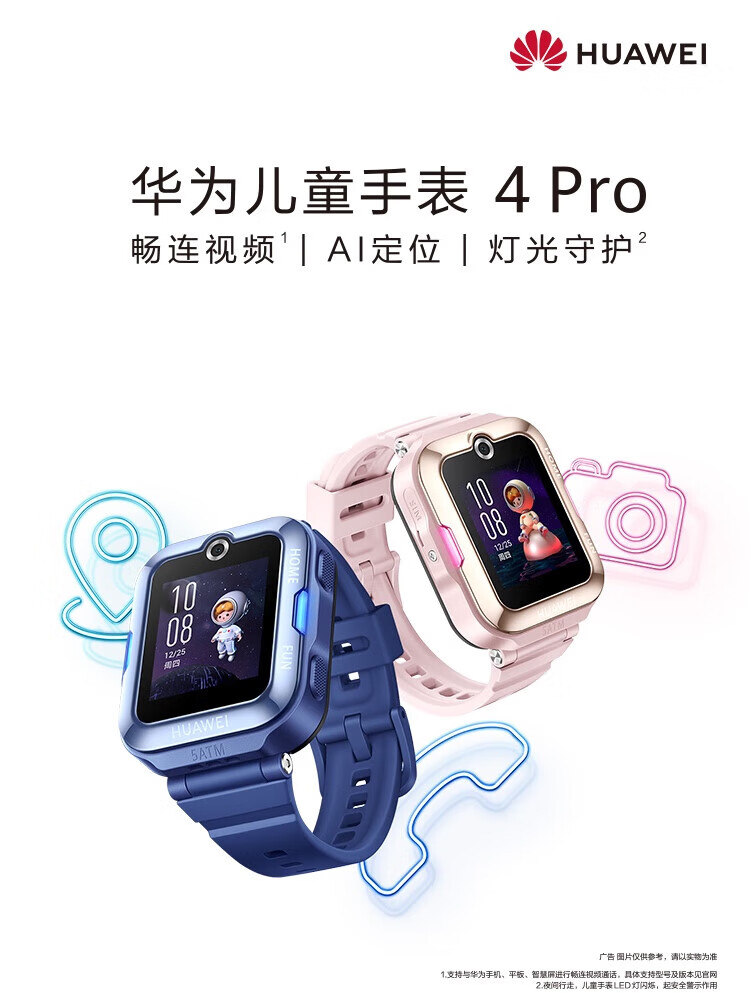 华为(HUAWEI)儿童手表 4Pro 粉色 电话手表 畅连视频通话九重AI定位LED灯光守护支持儿童微信男女童