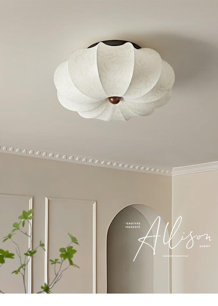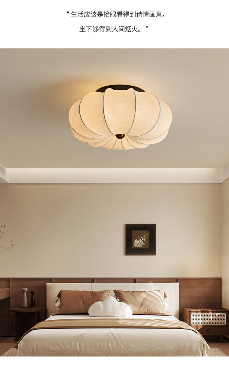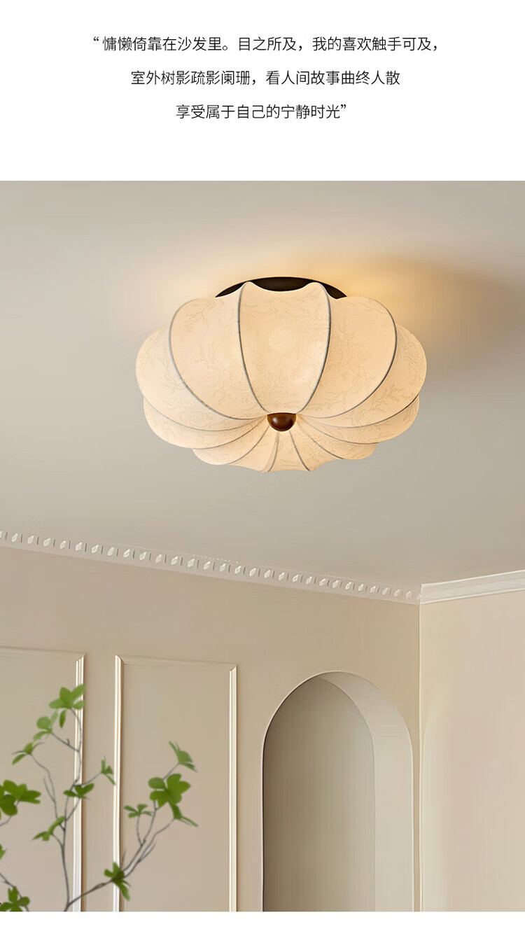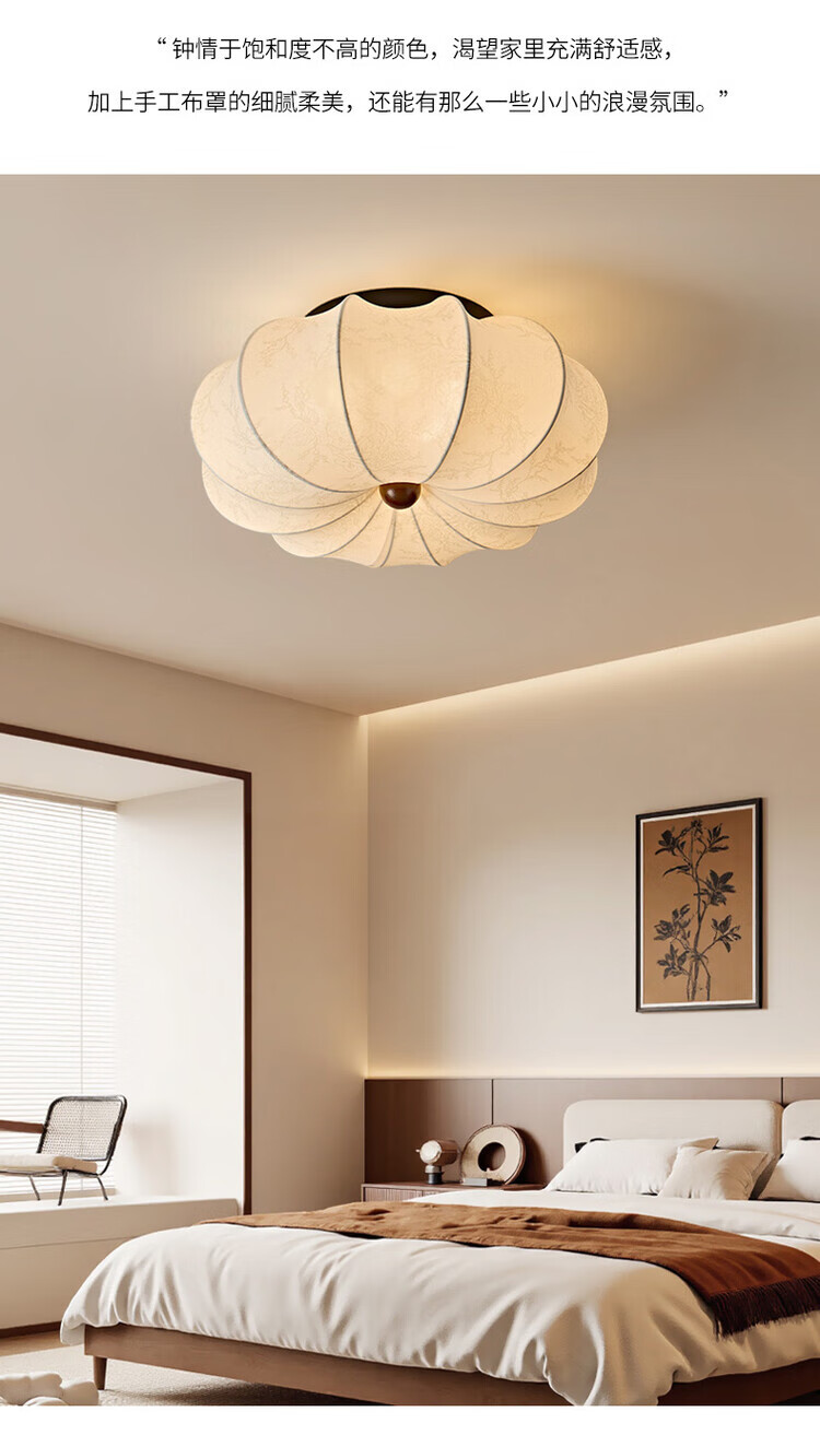 大自然照明(NATURE)法式中古风卧室吸顶灯复古侘寂风布艺温馨护眼儿童主卧书房南瓜灯 【全光谱】花纹款-40cm-三色变光