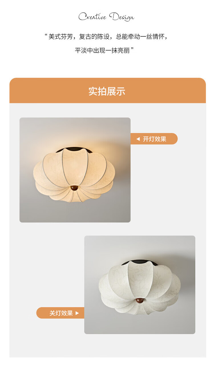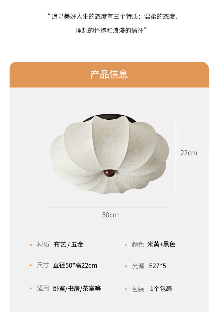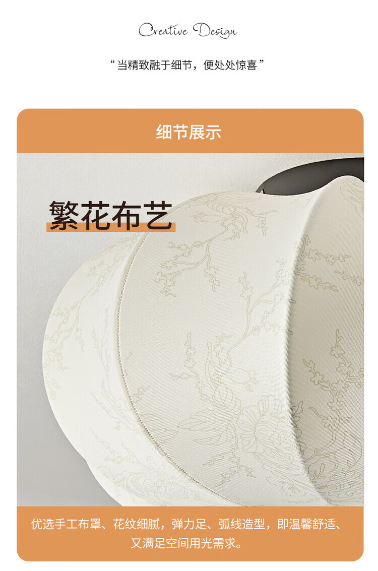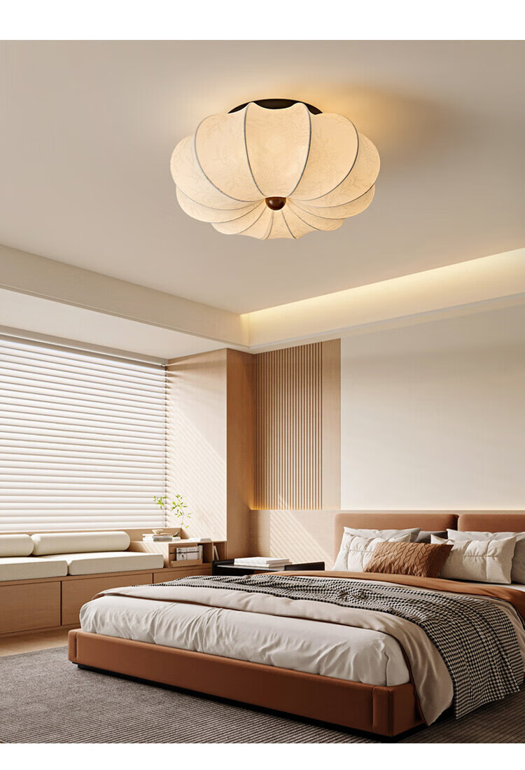 大自然照明(NATURE)法式中古风卧室吸顶灯复古侘寂风布艺温馨护眼儿童主卧书房南瓜灯 【全光谱】花纹款-40cm-三色变光