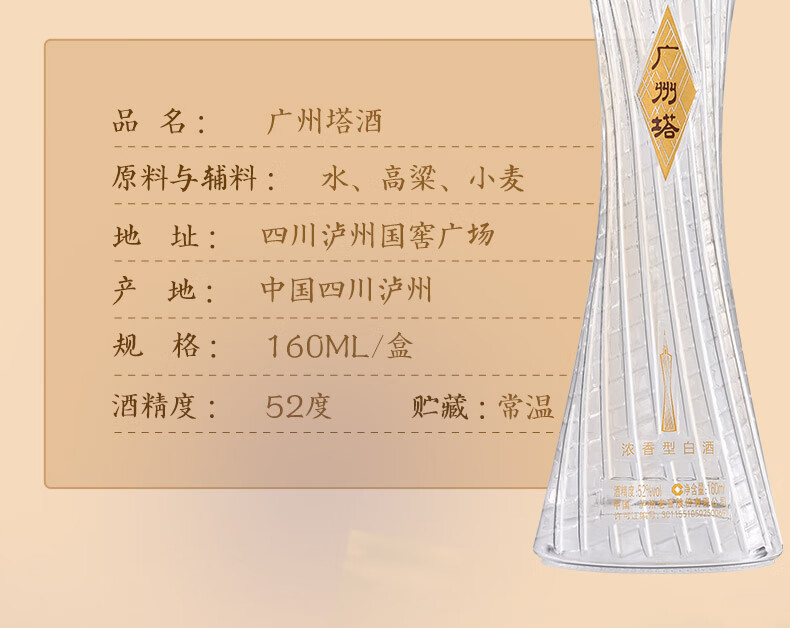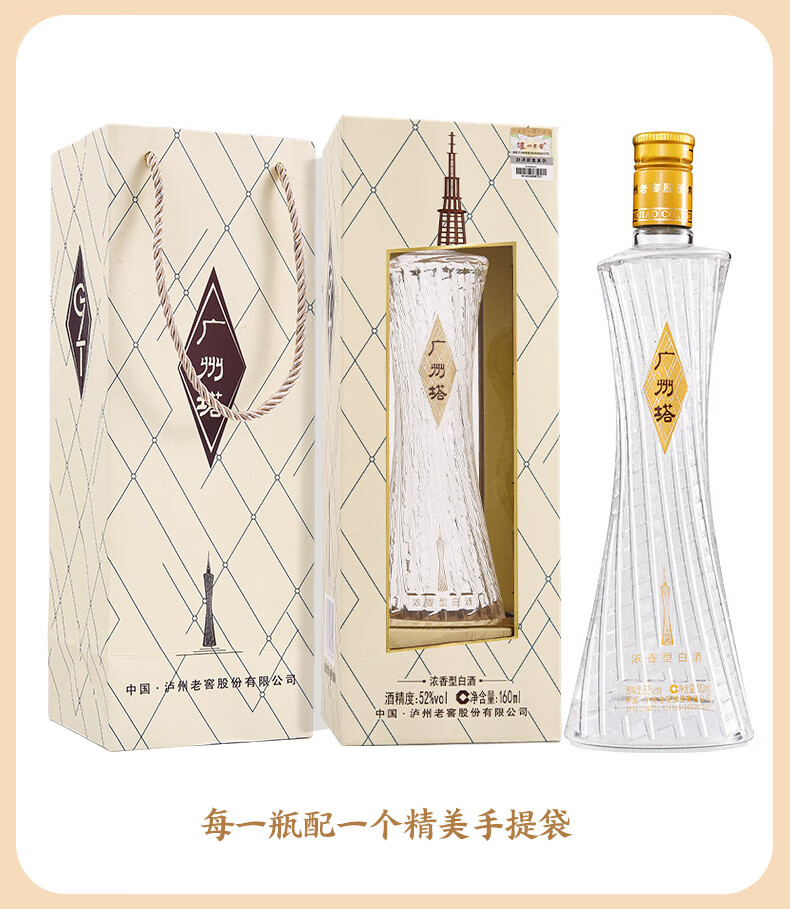 泸州老窖 广州塔酒 浓香型高度白酒 节日送礼 精品摆件 52度 160mL 1瓶 广州塔(带礼袋)