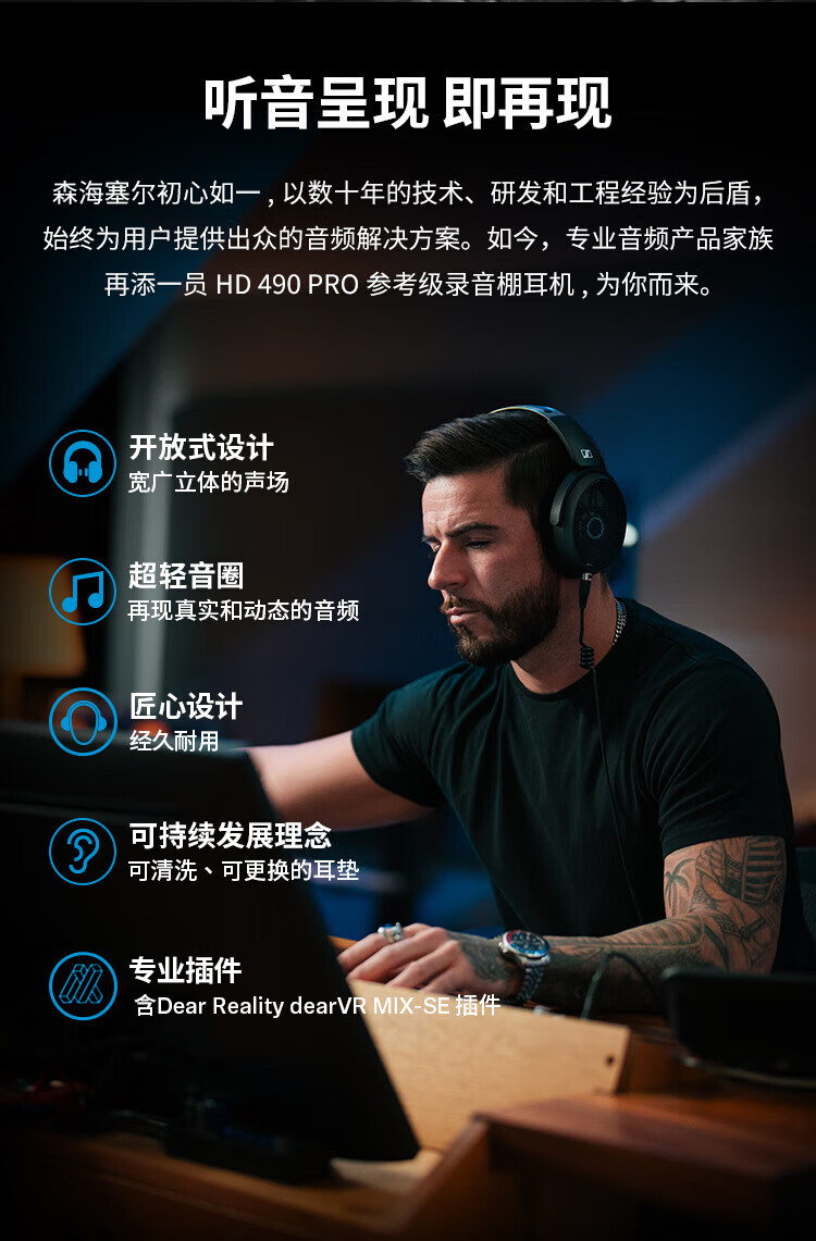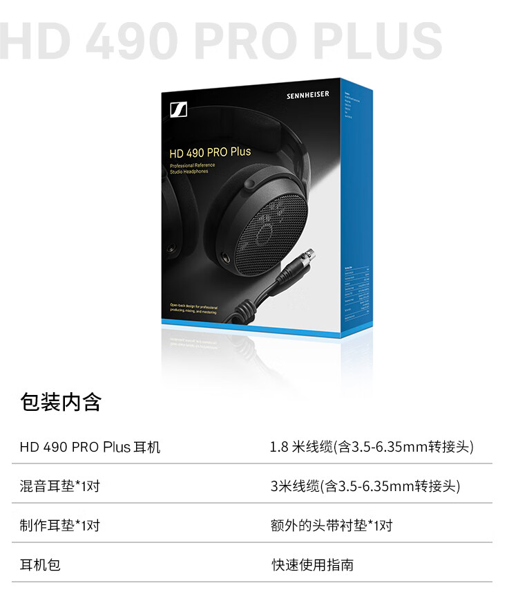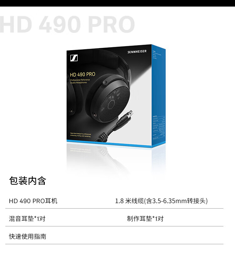 森海塞尔HD490PRO PLUS监听耳机有线头戴式耳机包耳开放式专业参考级录音耳麦送男朋友中秋国庆节生日礼物 HD490 PRO