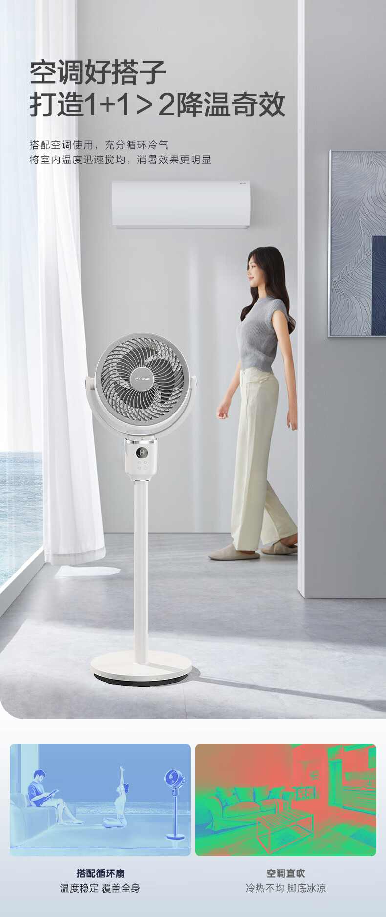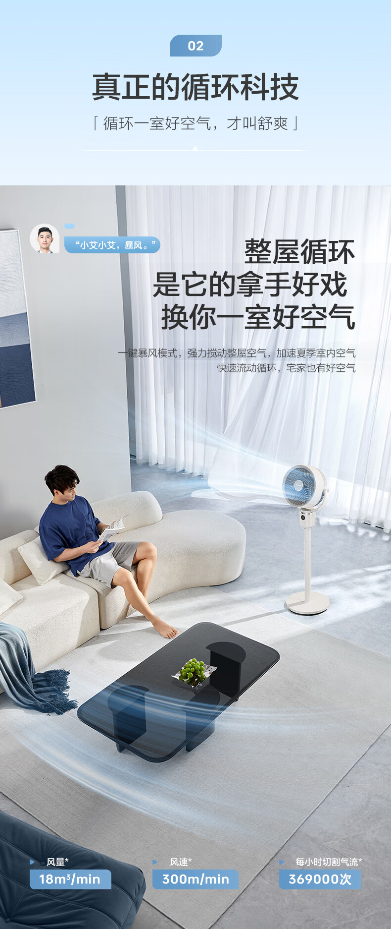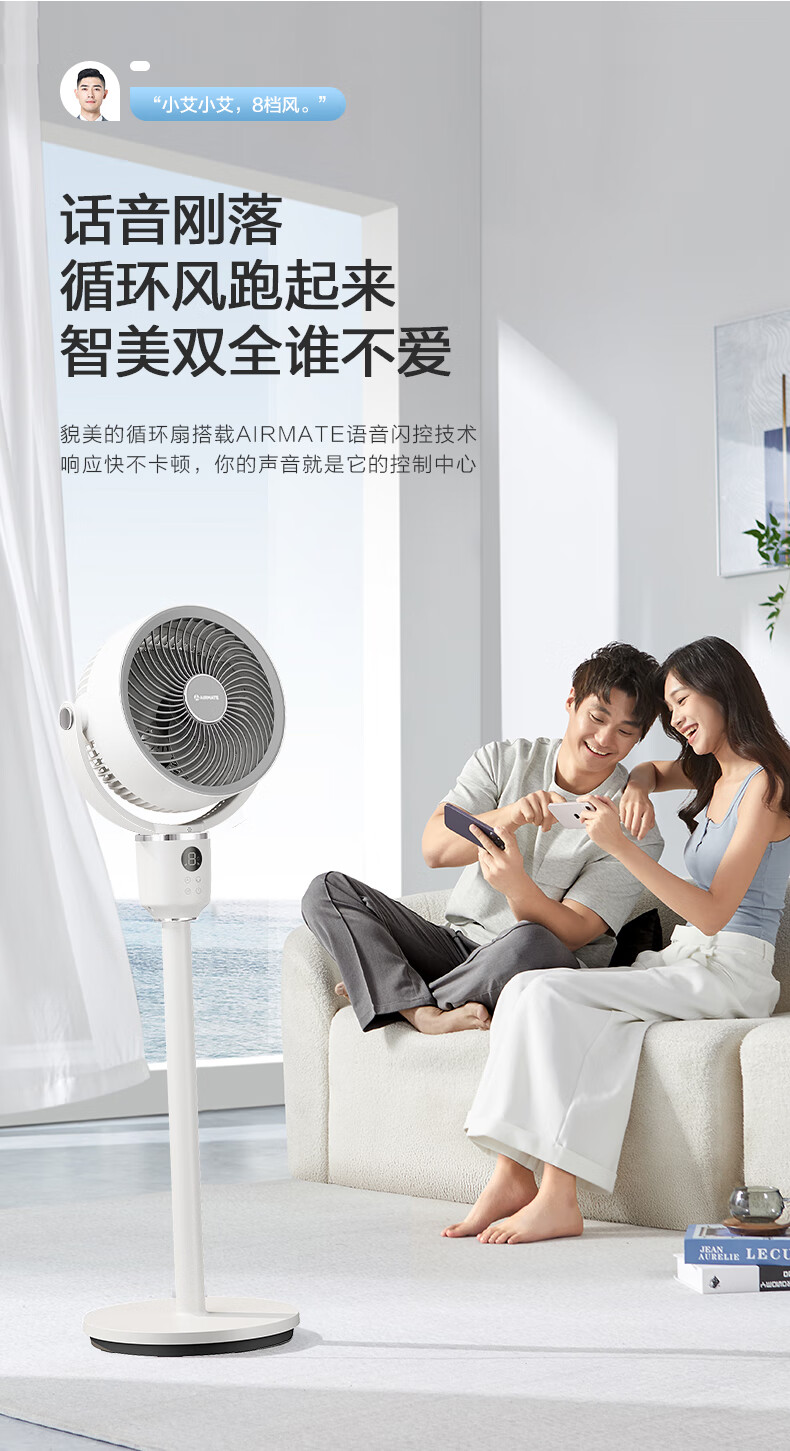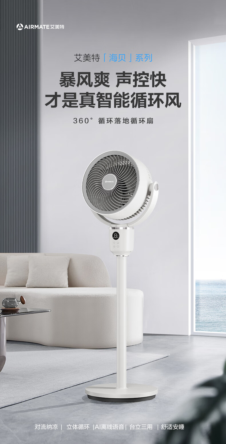 艾美特(AIRMATE)【360°循环】空气循环扇电风扇家用大风量电扇台式落地扇小风扇语音智能轻音换气风扇 FA18-SRD161