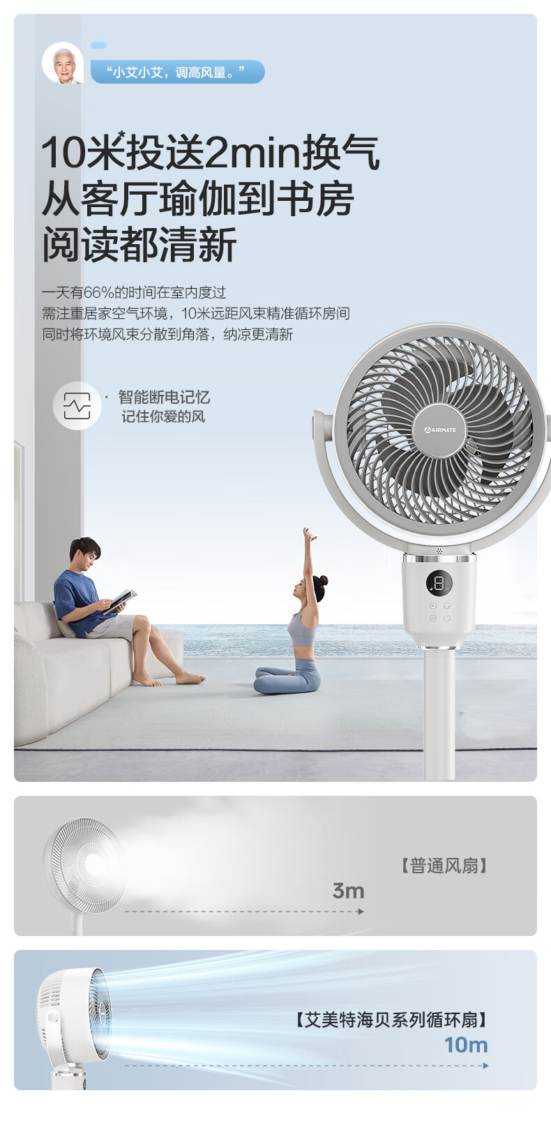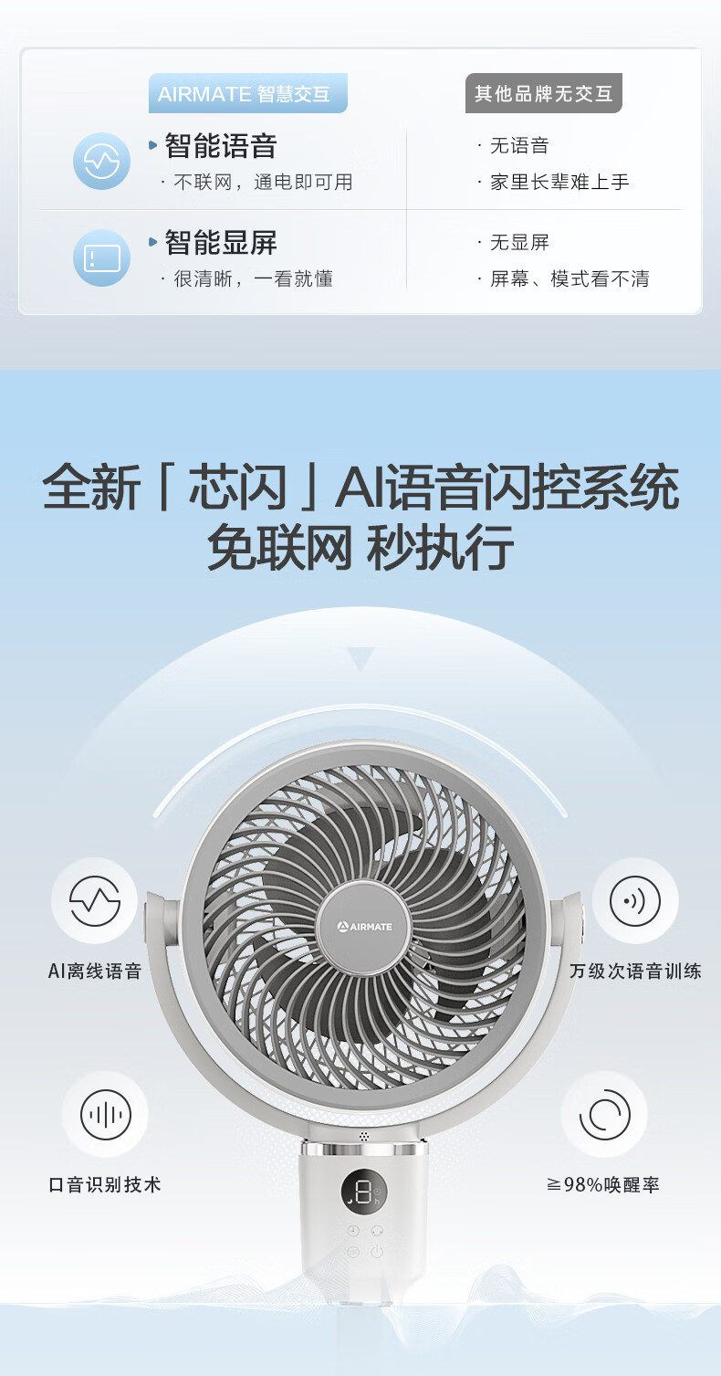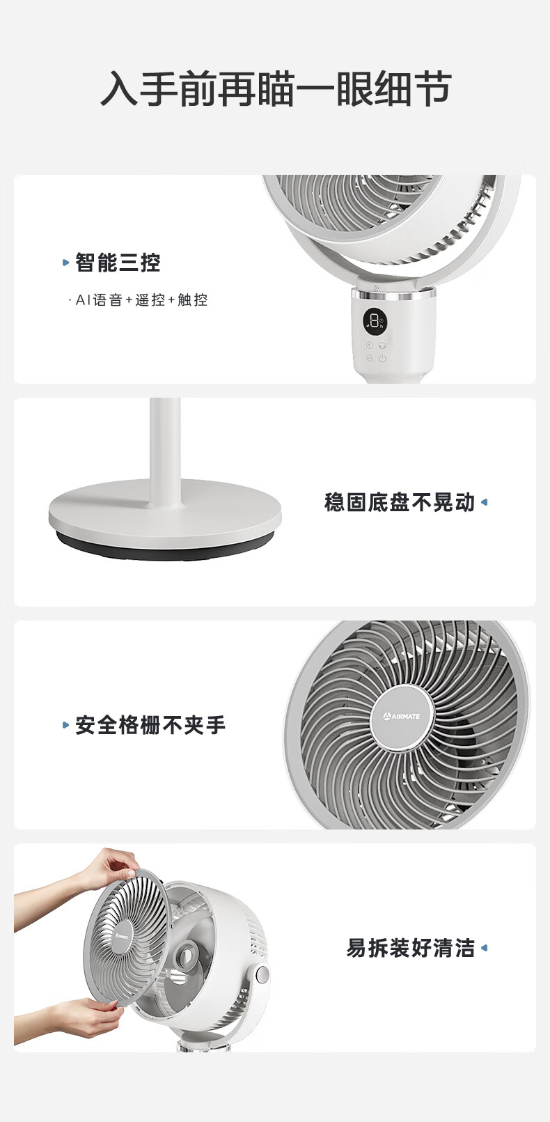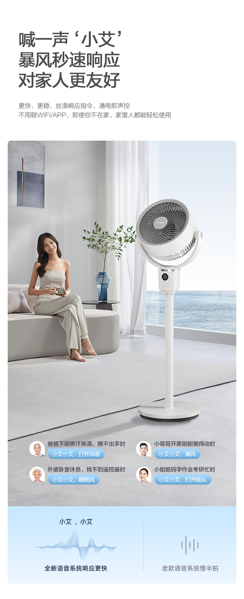 艾美特(AIRMATE)【360°循环】空气循环扇电风扇家用大风量电扇台式落地扇小风扇语音智能轻音换气风扇 FA18-SRD161