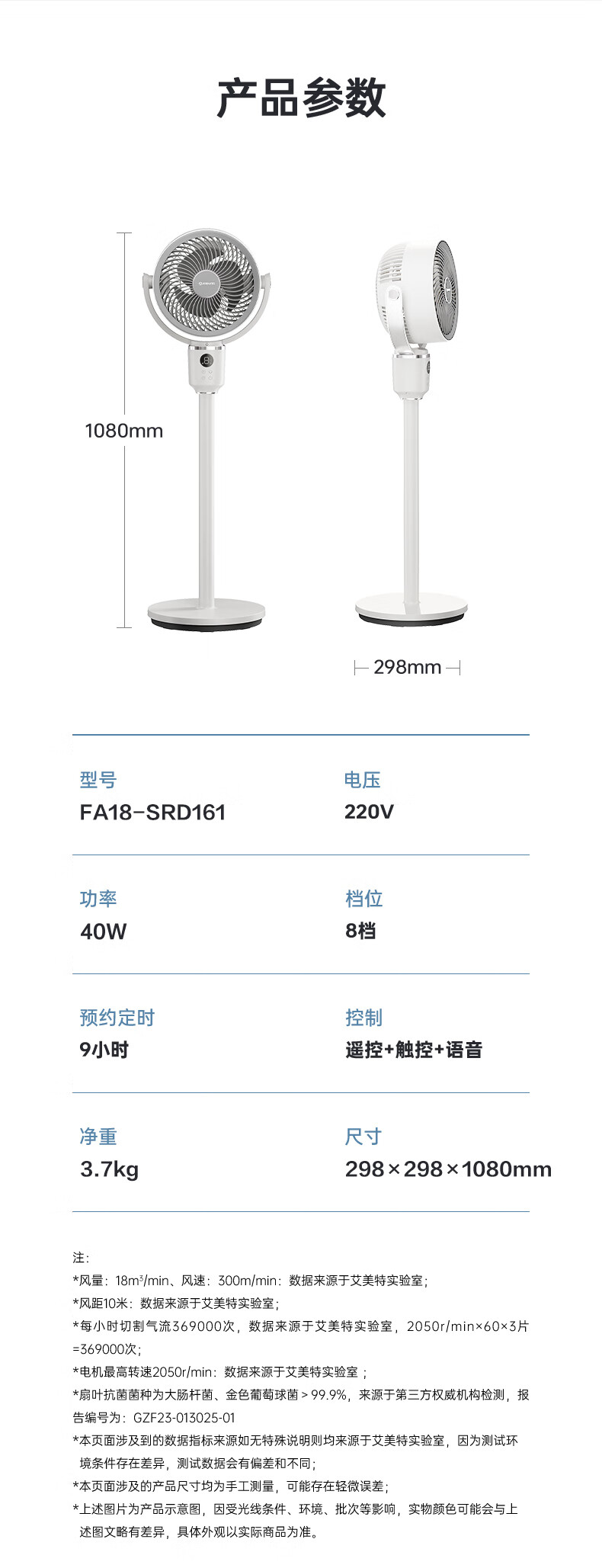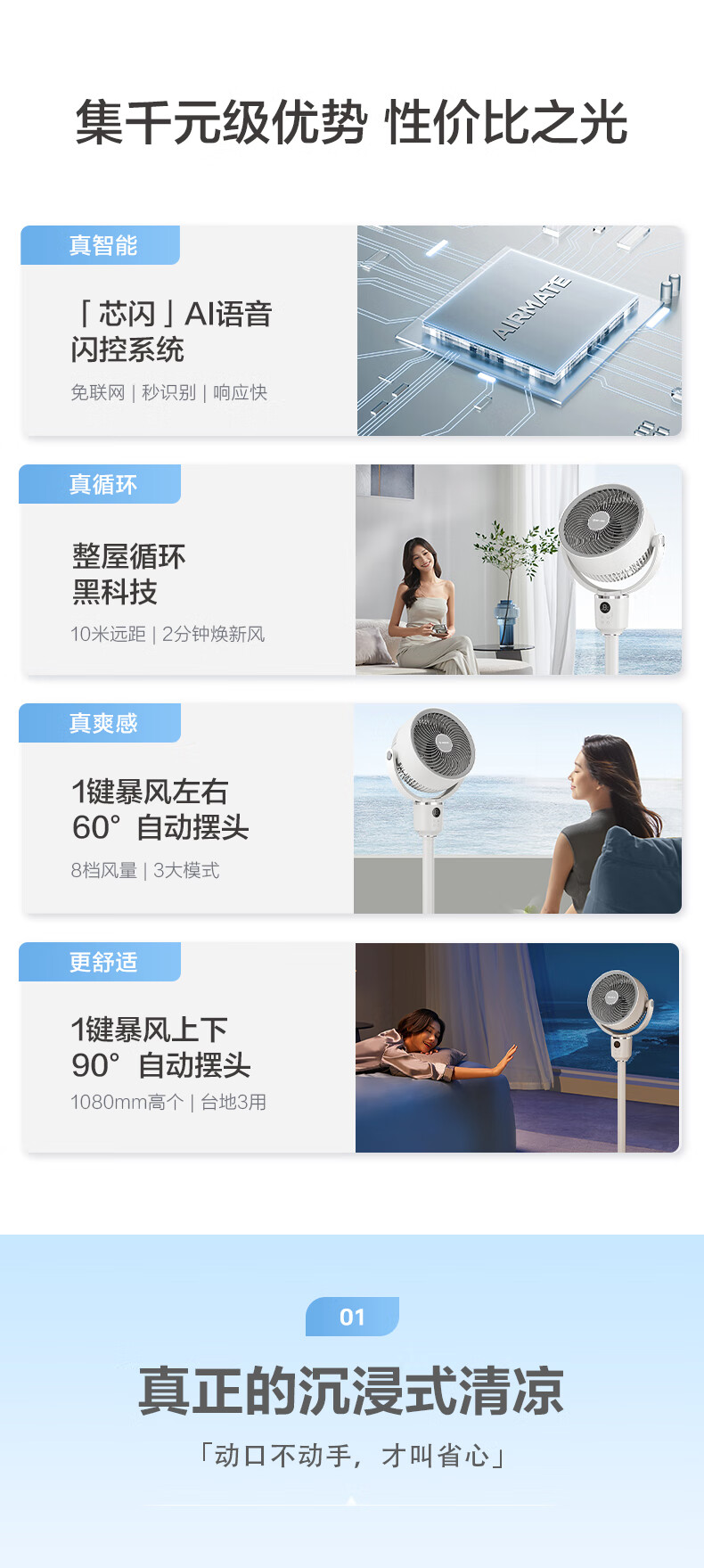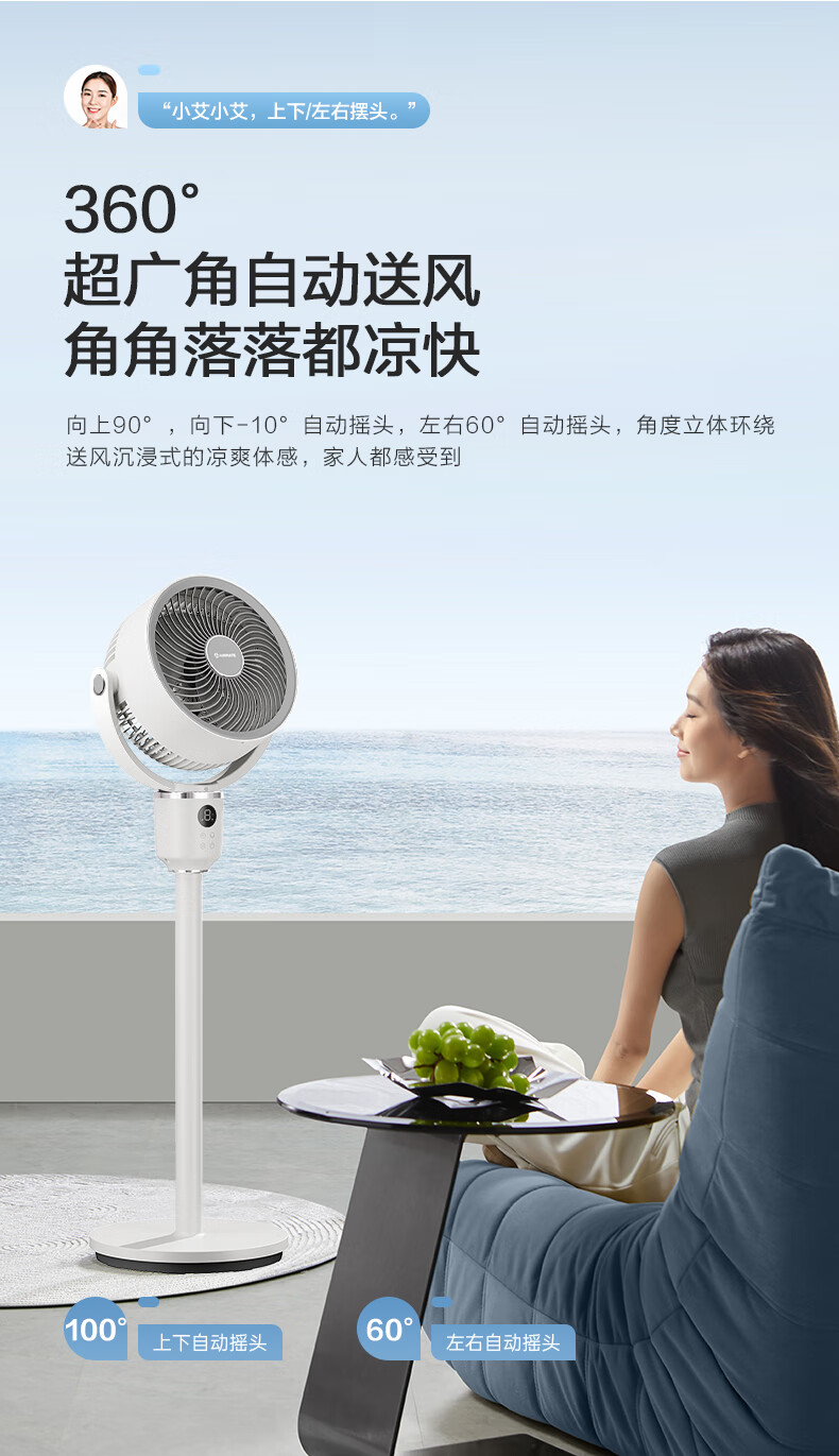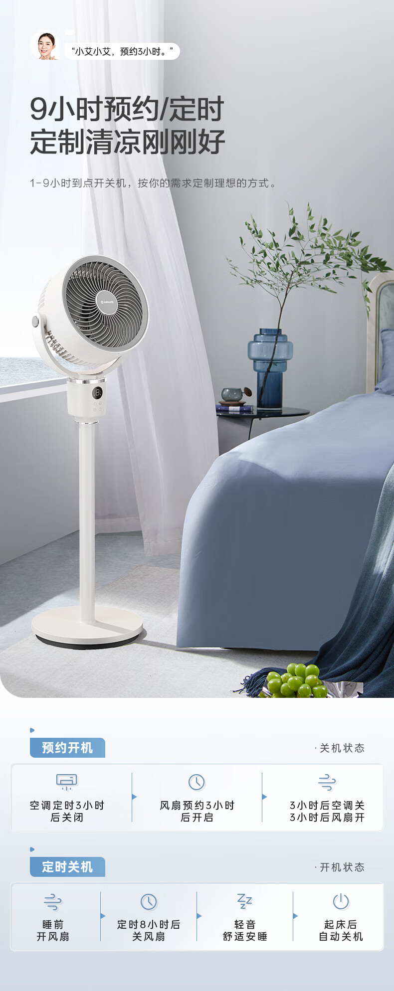 艾美特(AIRMATE)【360°循环】空气循环扇电风扇家用大风量电扇台式落地扇小风扇语音智能轻音换气风扇 FA18-SRD161