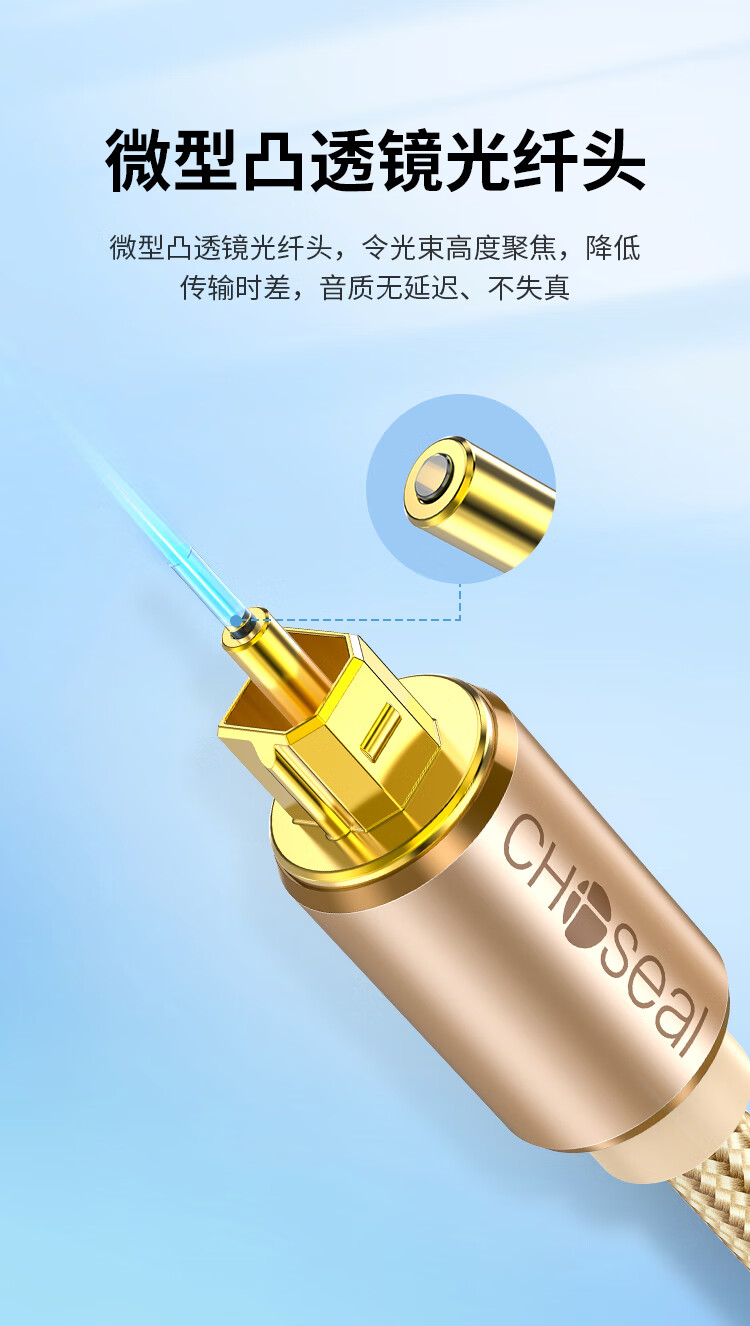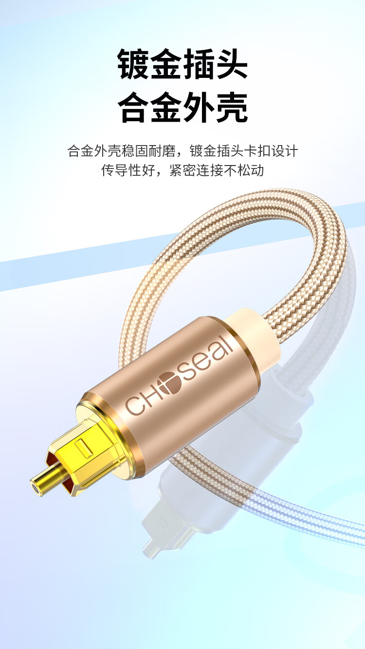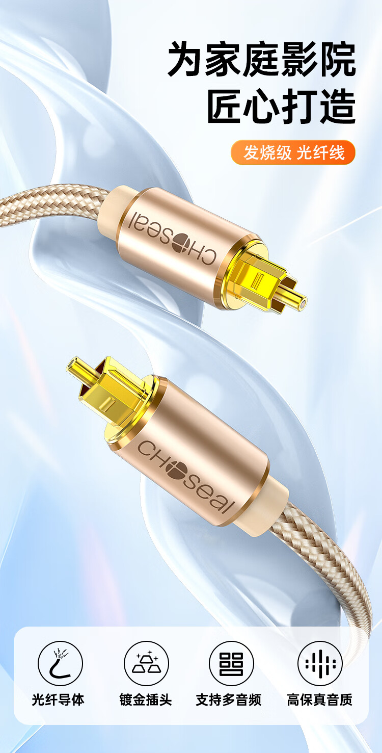 秋叶原(CHOSEAL)数字光纤音频线 电视DVD投影仪功放机顶盒家庭影院 方口spdif多声道 土豪金系列 3米 DH517T3