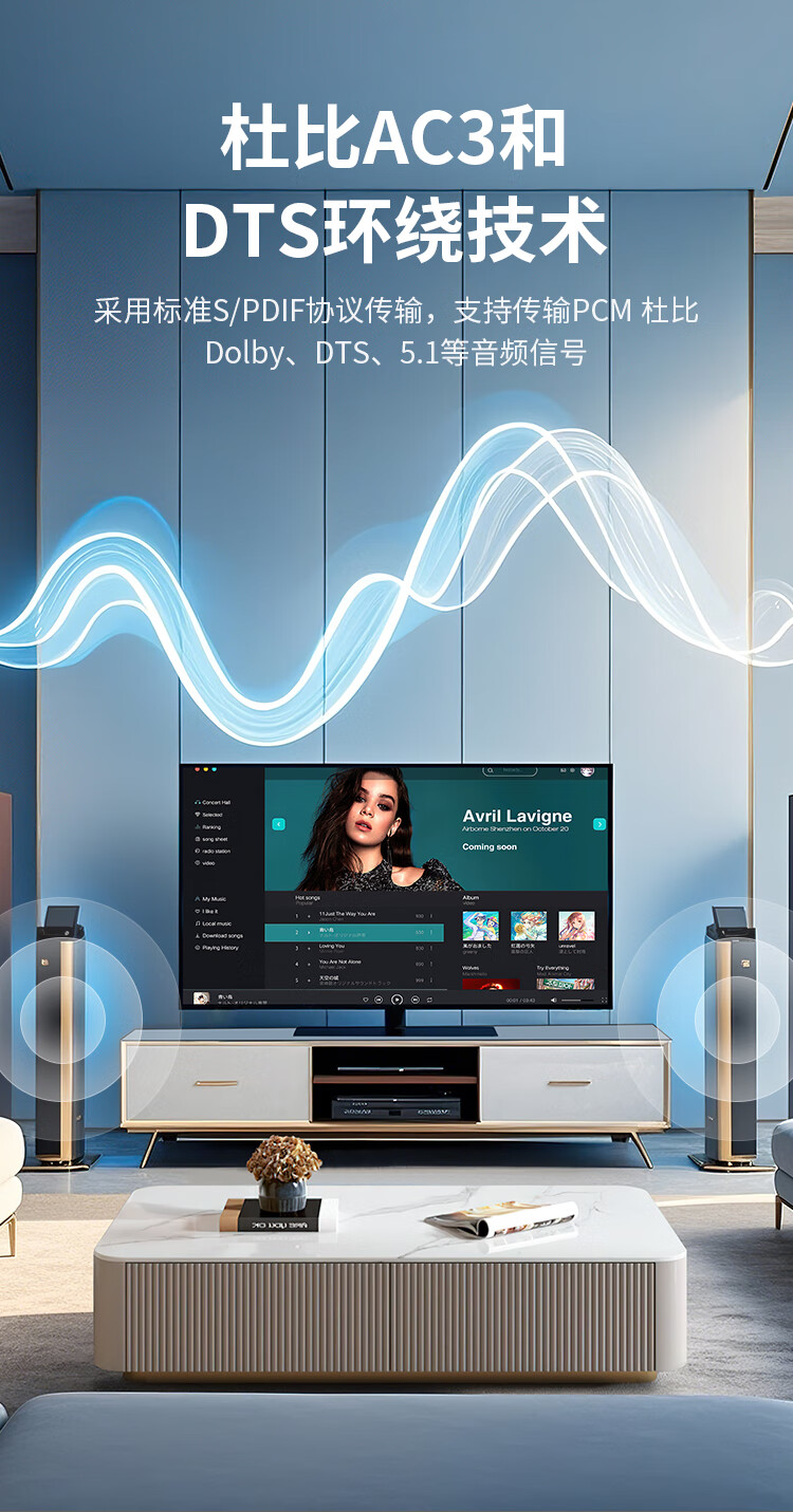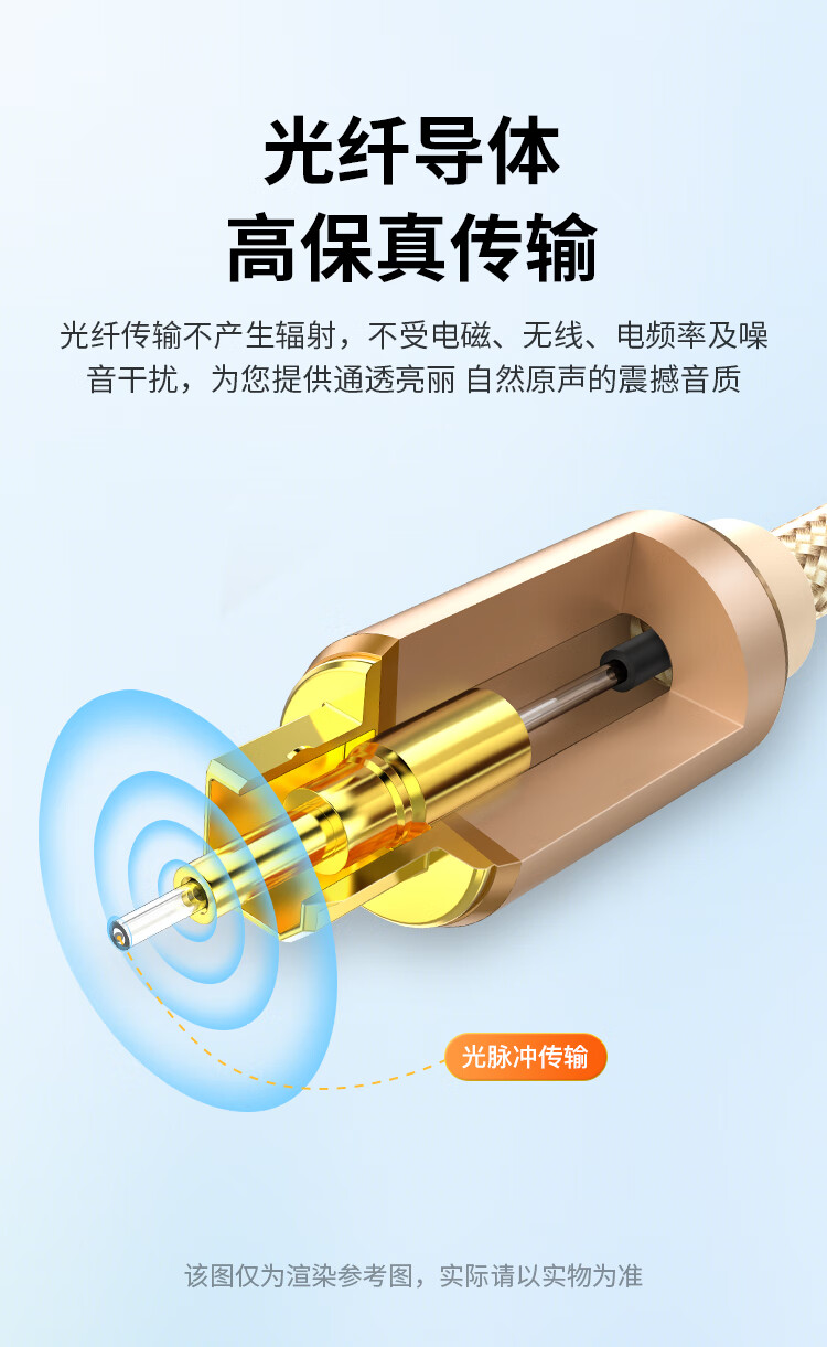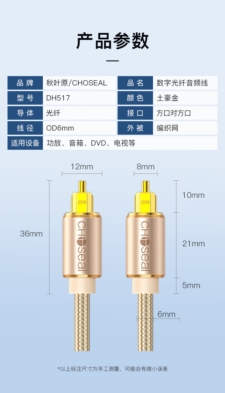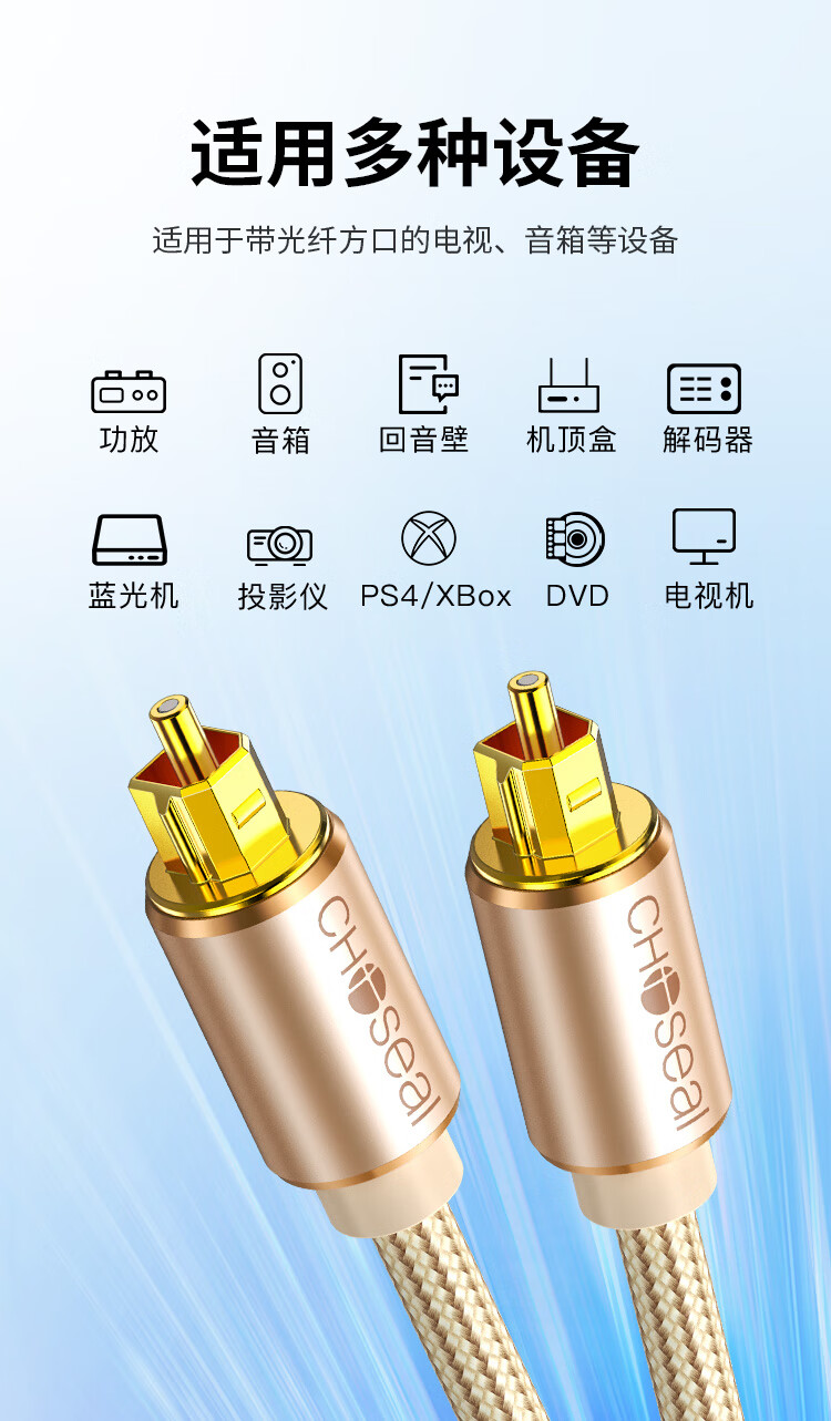 秋叶原(CHOSEAL)数字光纤音频线 电视DVD投影仪功放机顶盒家庭影院 方口spdif多声道 土豪金系列 3米 DH517T3