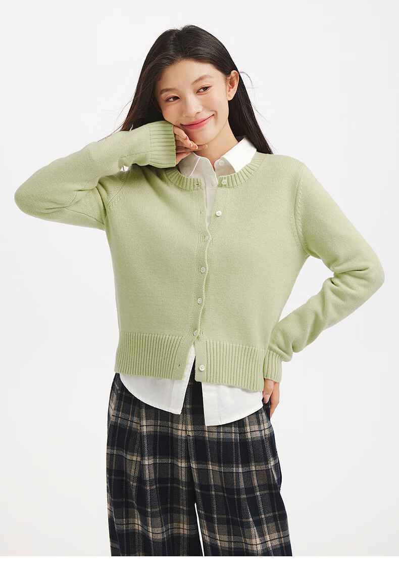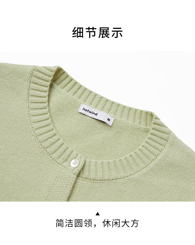 热风(Hotwind)女士圆领开衫针织衫上衣2025年冬季新款内搭打底衫毛衣外套 31浅绿 M