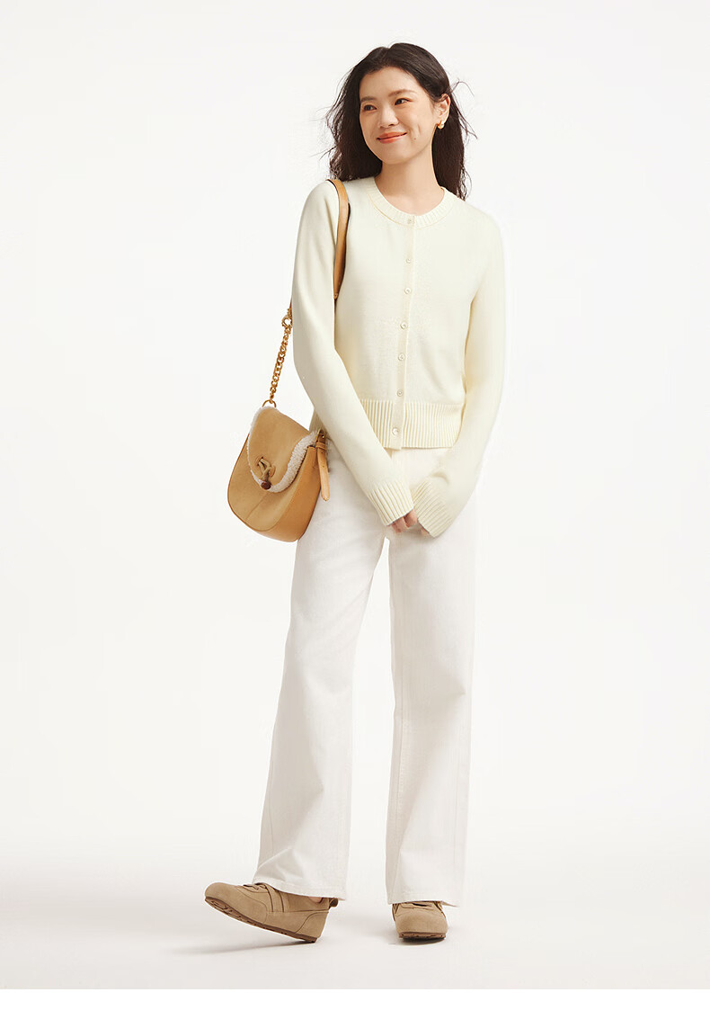 热风(Hotwind)女士圆领开衫针织衫上衣2025年冬季新款内搭打底衫毛衣外套 03米色 S