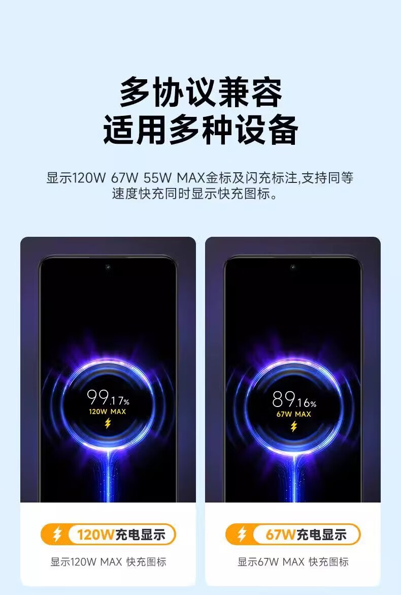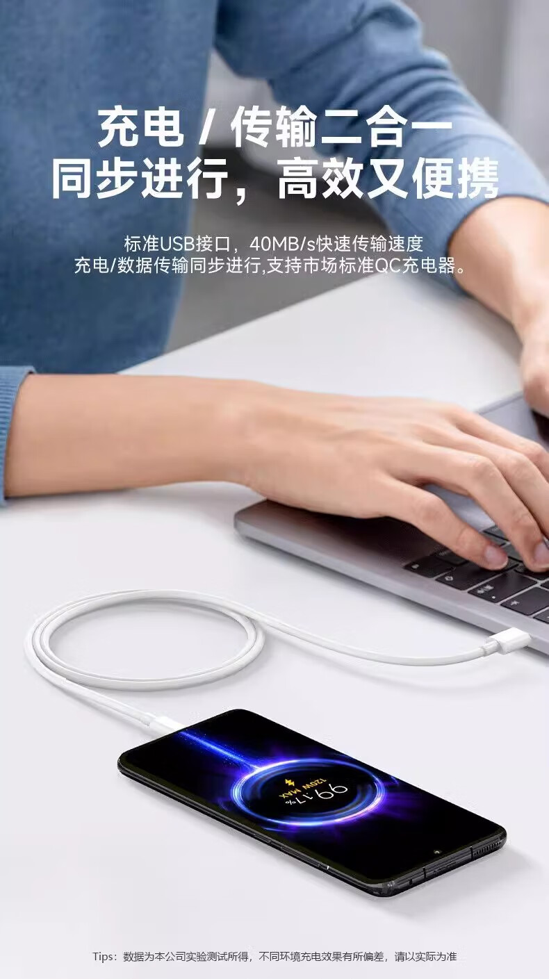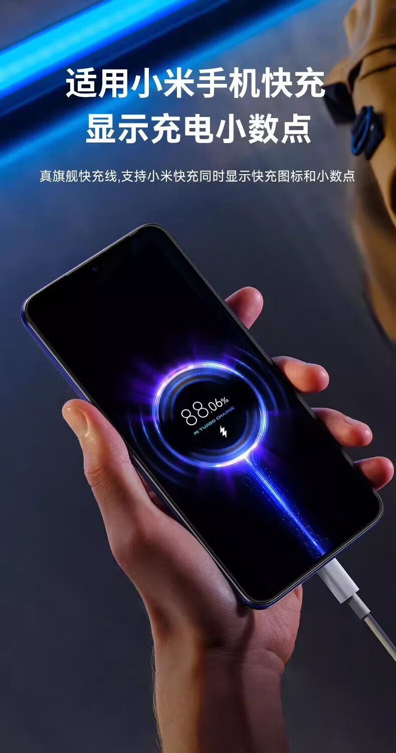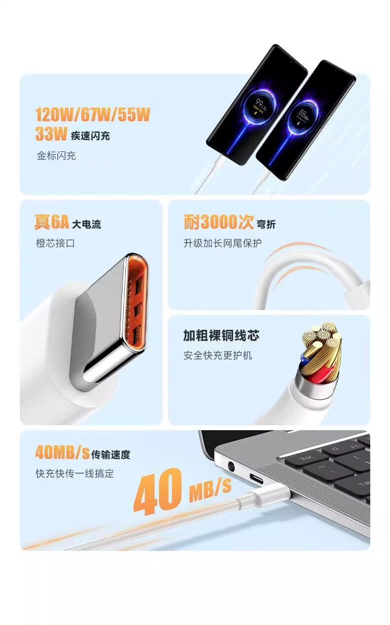 适用小米Typec数据线120w快充11/12/10/14/13红米30k40k50K60K70手机67W充电器线USB-tpyec 1.5米单线