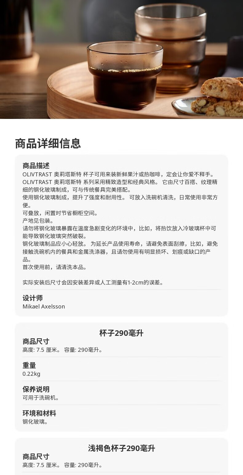 宜家(IKEA)OLIVTRAST奥莉塔斯特杯子水杯酒杯饮料杯家用 透明玻璃杯子290ml