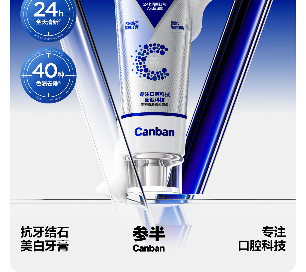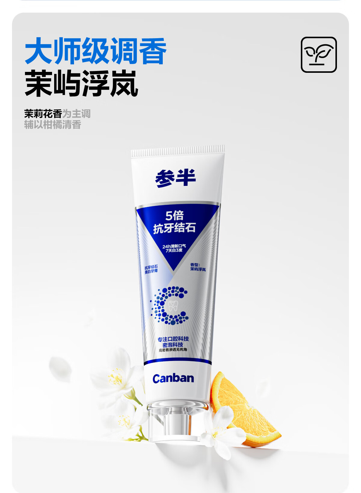 参半抗牙结石美白牙膏 专效抗牙垢结石亮白护龈去口臭去牙渍100g*2