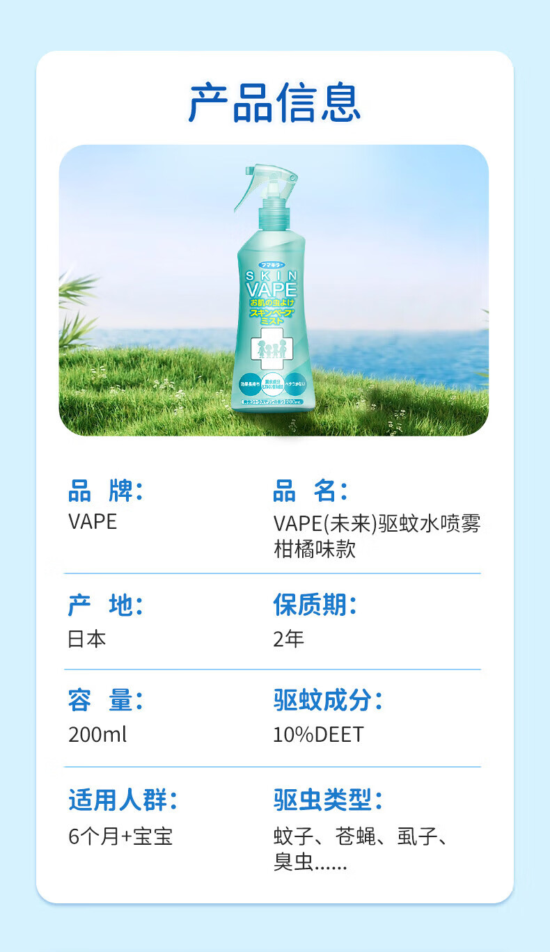 未来VAPE驱蚊液海蓝柑橘喷雾 200ml 三瓶装
