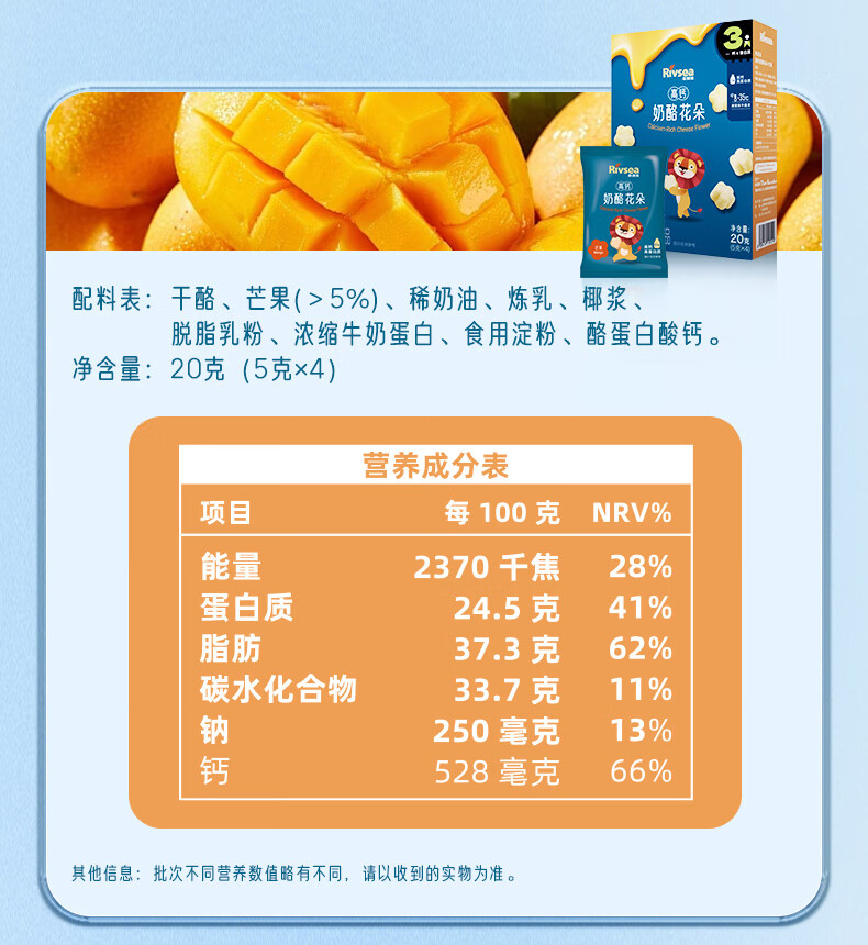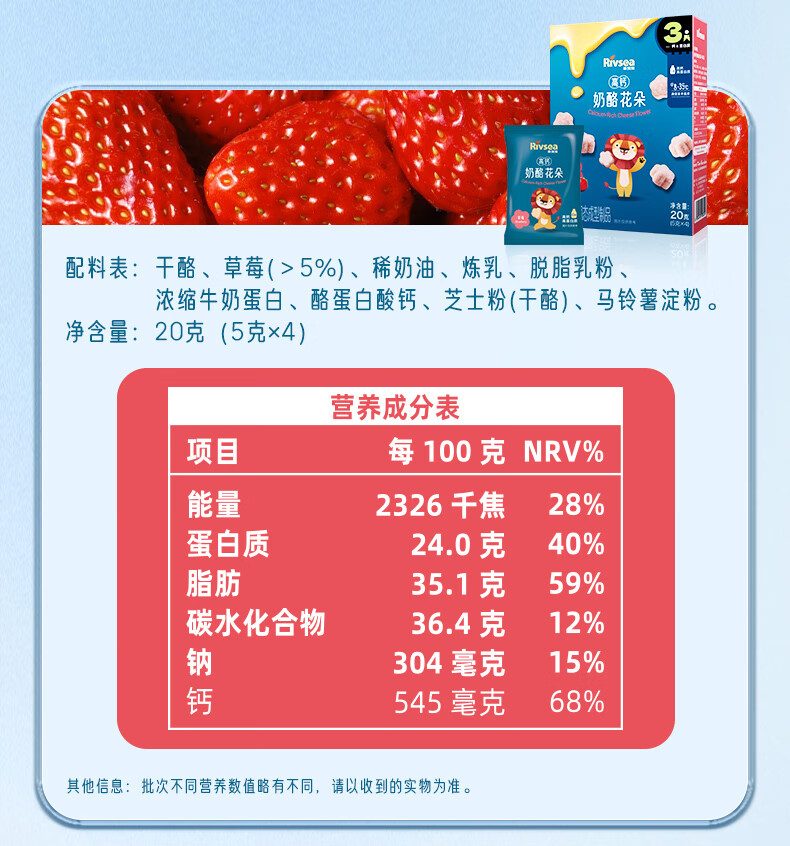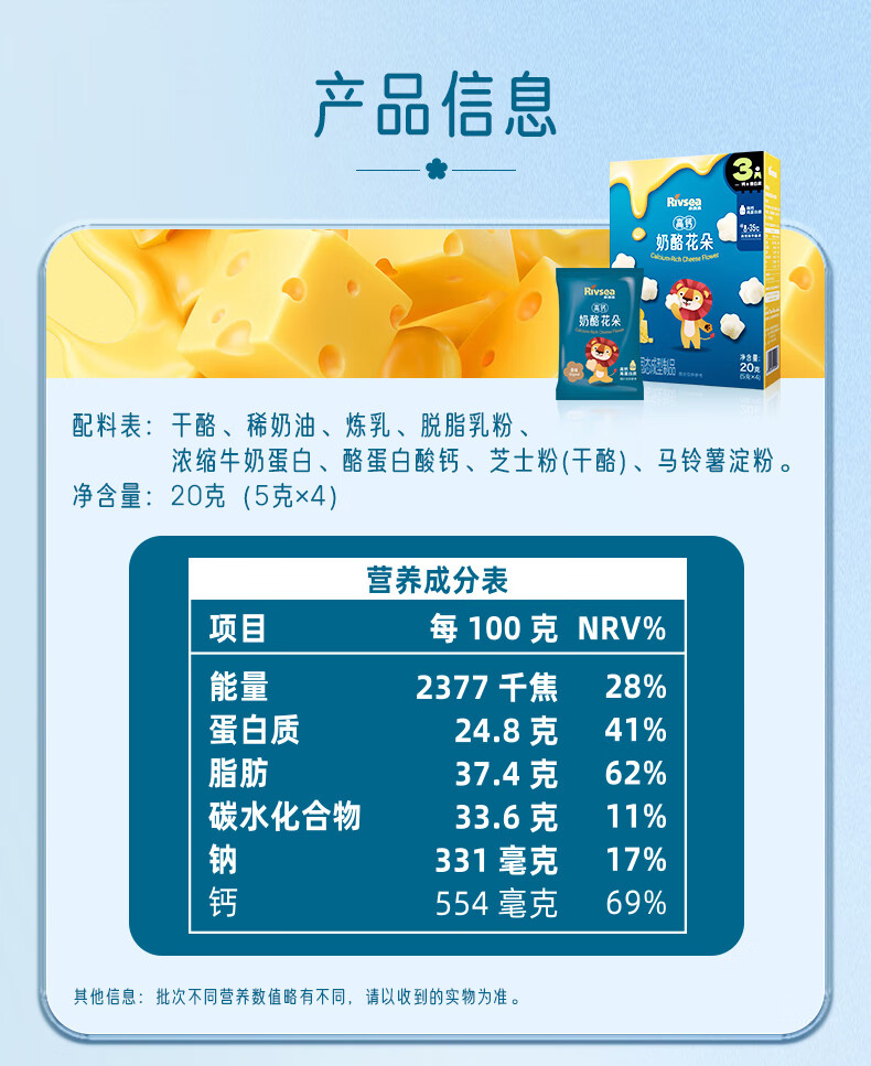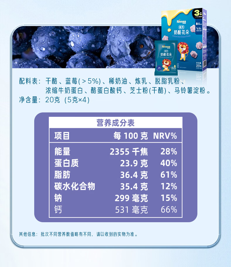 禾泱泱奶酪原块 奶酪花朵 高钙高蛋白奶酪营养冻干 儿童溶口零食 高钙奶酪花朵-蓝莓味/20g