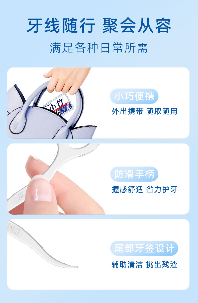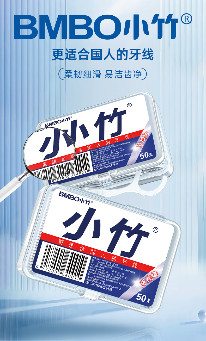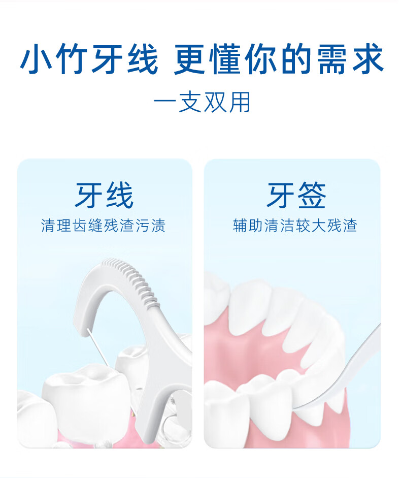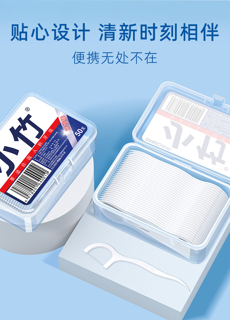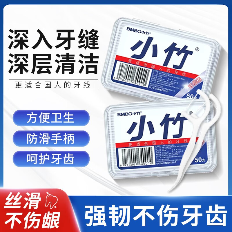小竹牙线家用超细盒装无菌成人儿童家庭装一次性剔牙神器牙签 C小竹牙线50支5盒