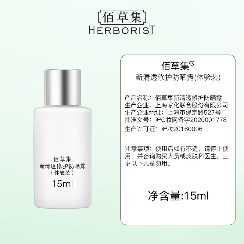 佰草集新清透修护防晒露SPF50+PA++++15ml(体验装)